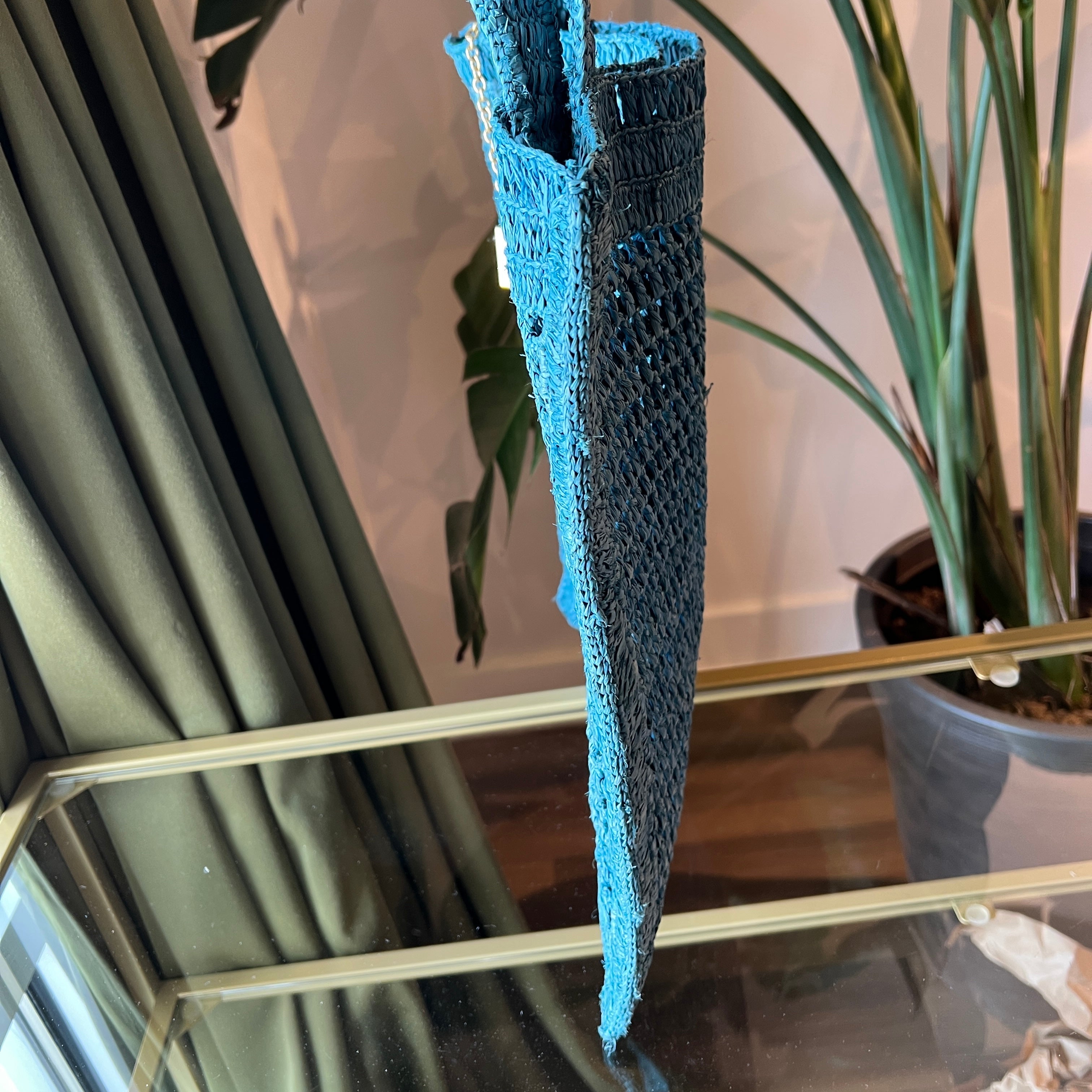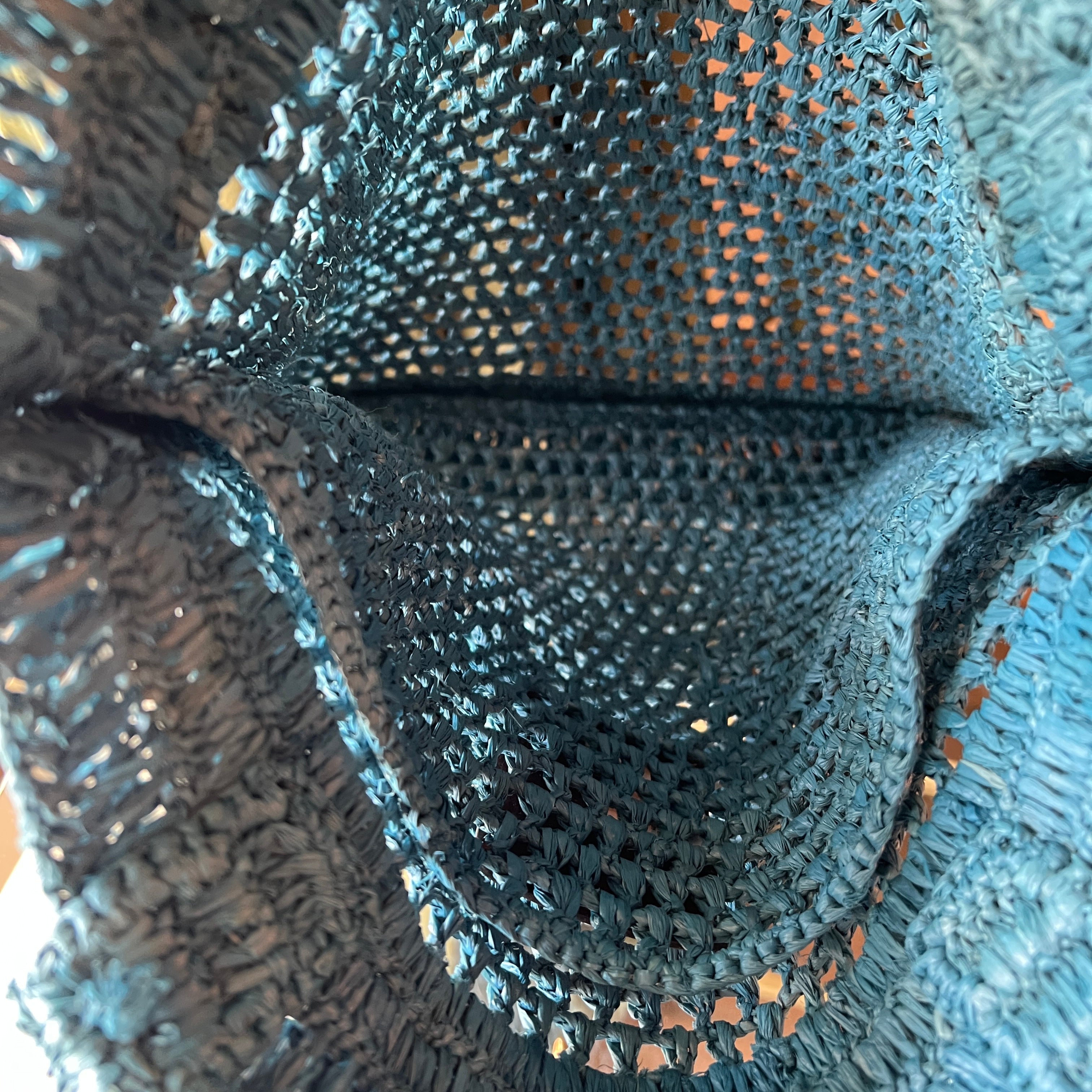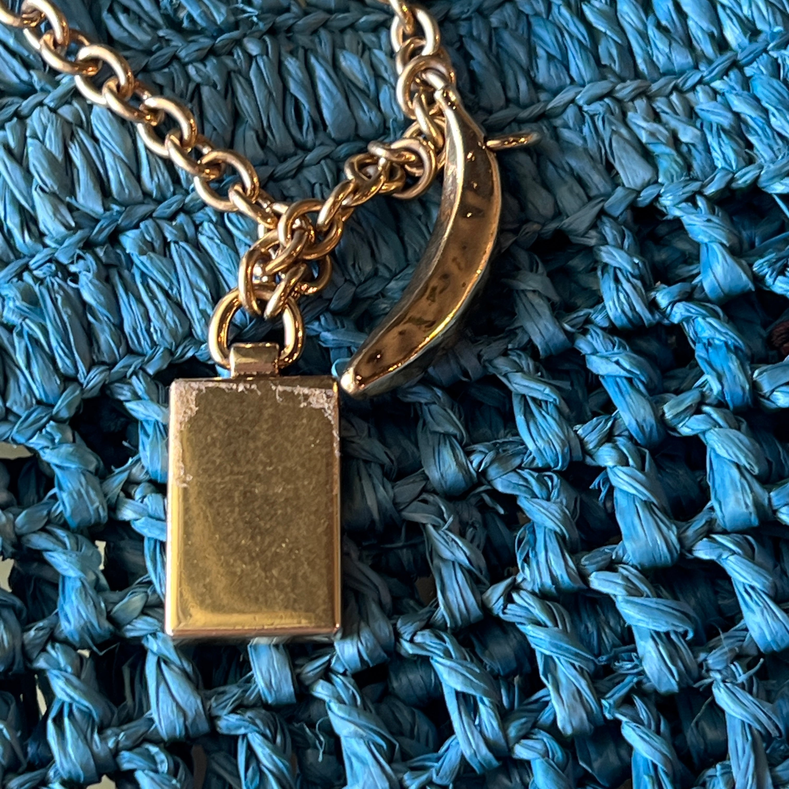 - Chloé's "Summer" tote bag, crafted from raffia-like crochet fabric, features a playful banana chain charm and tonal logo lettering