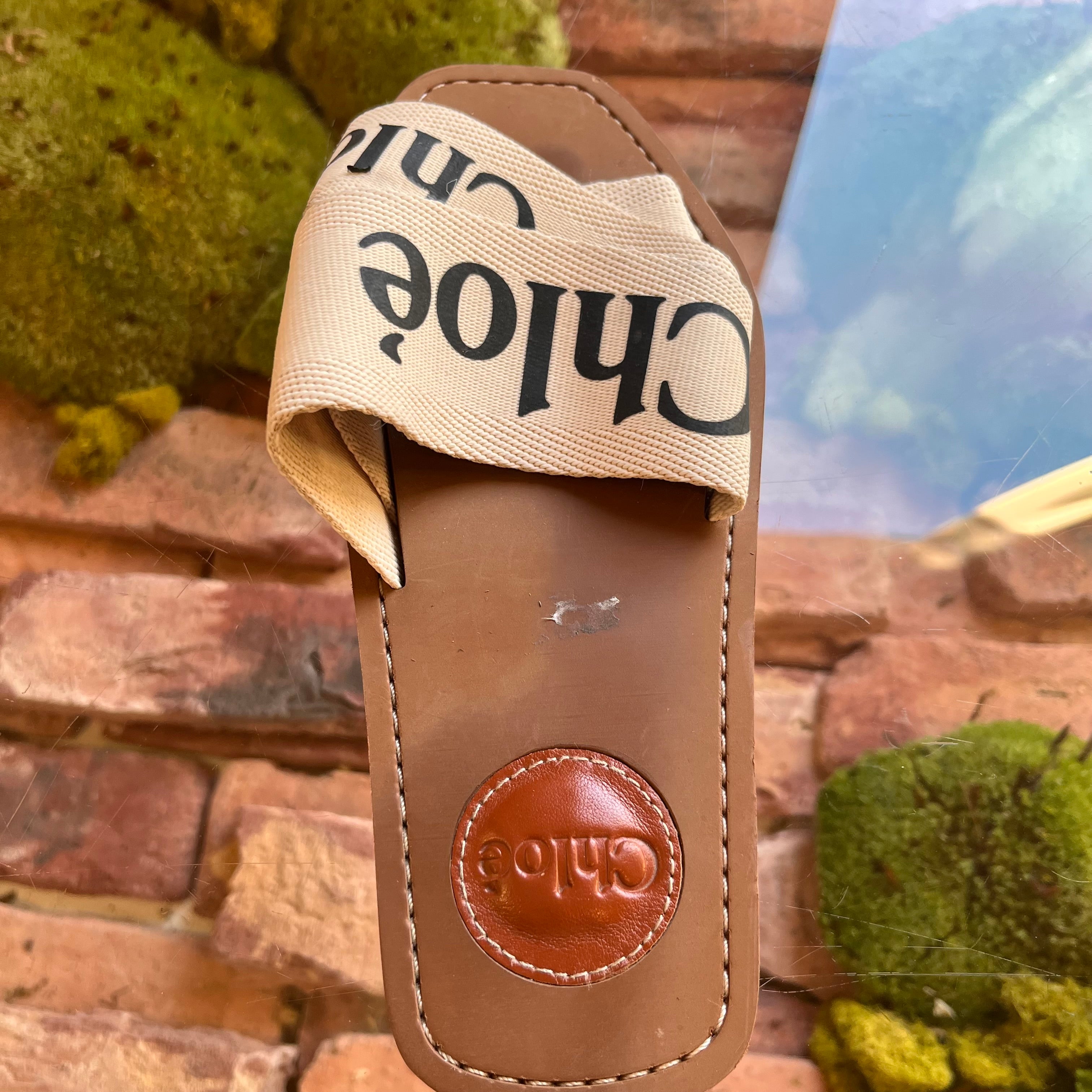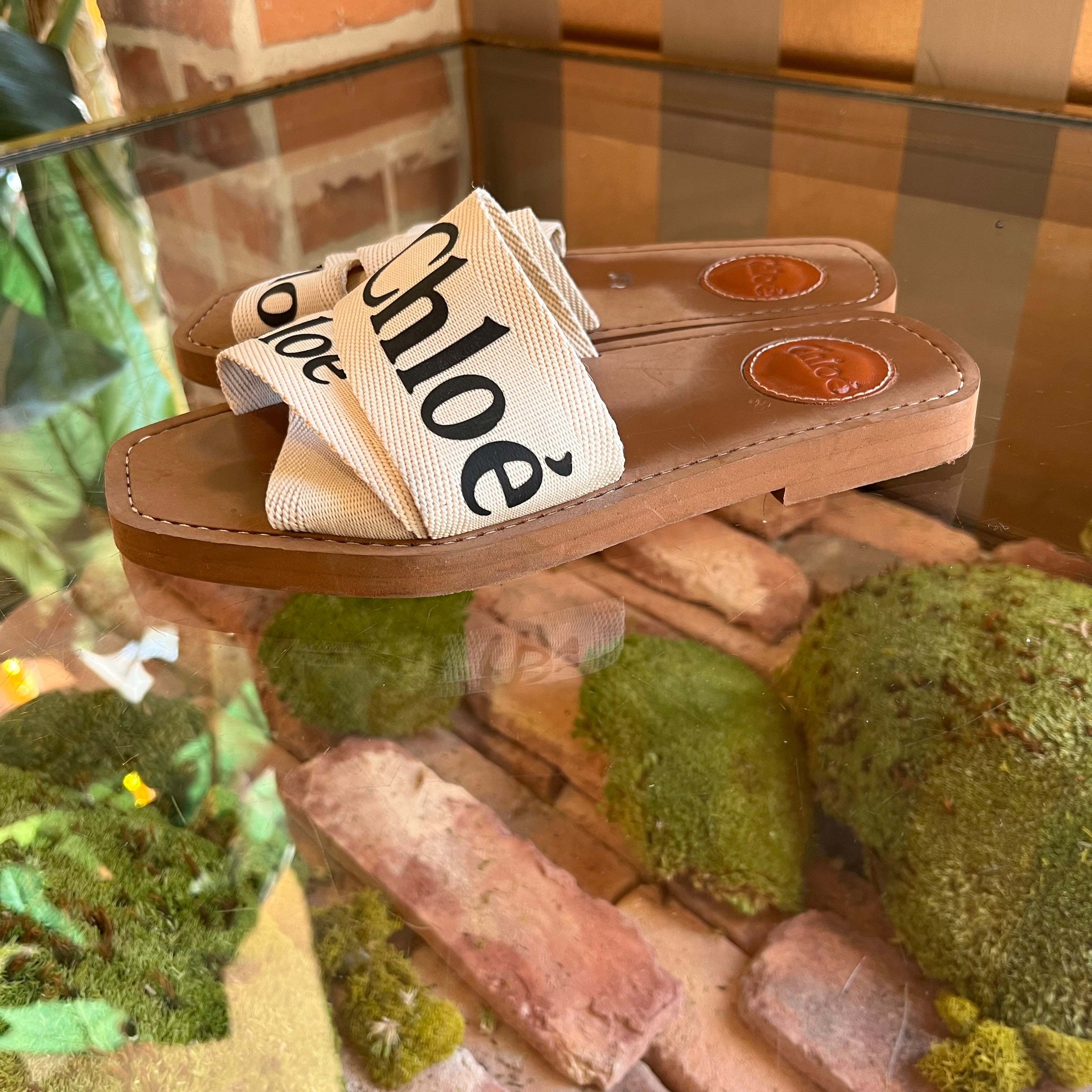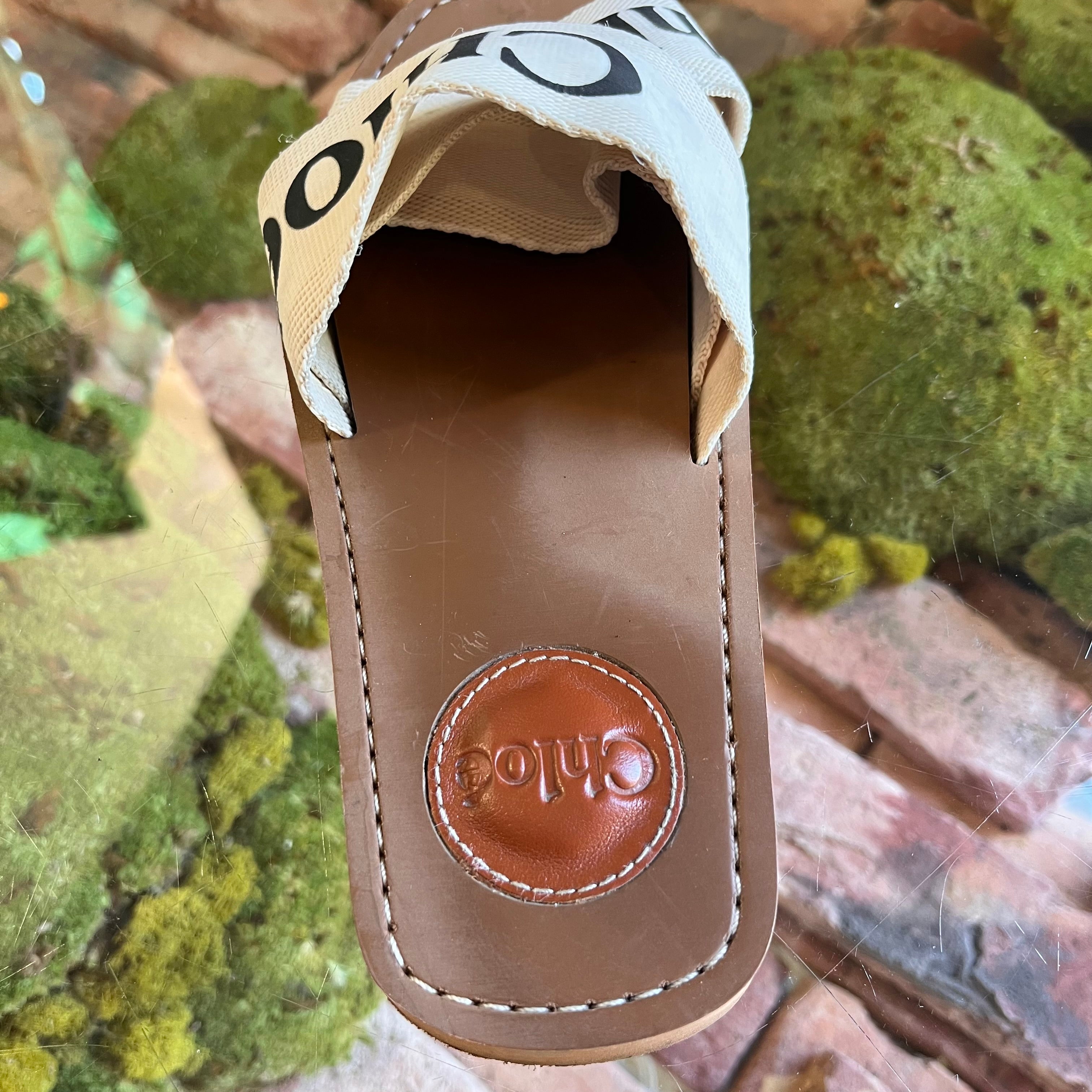 CHLOE Woody Flat Logo Ribbon Slide Sandals size 35 ( US 5)
