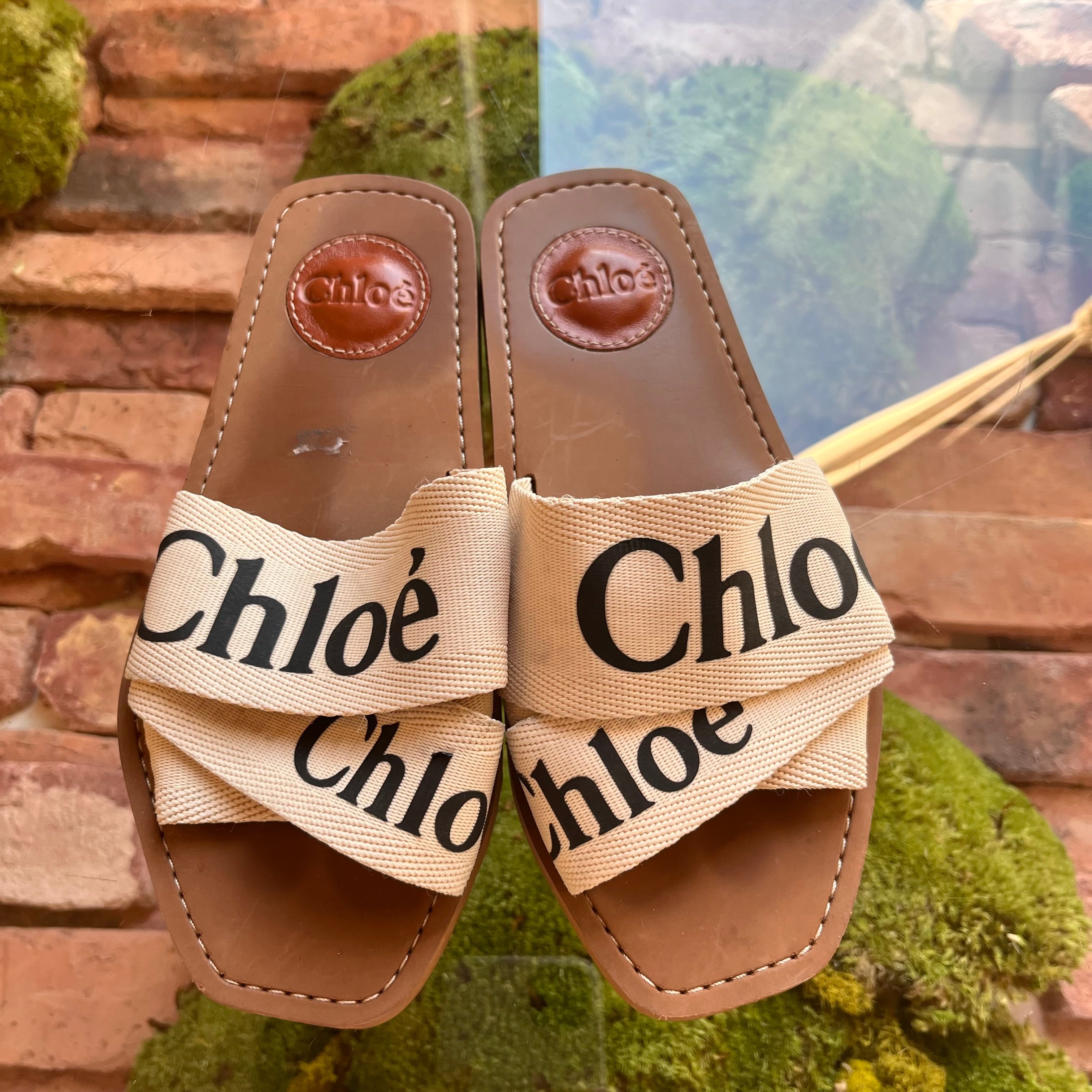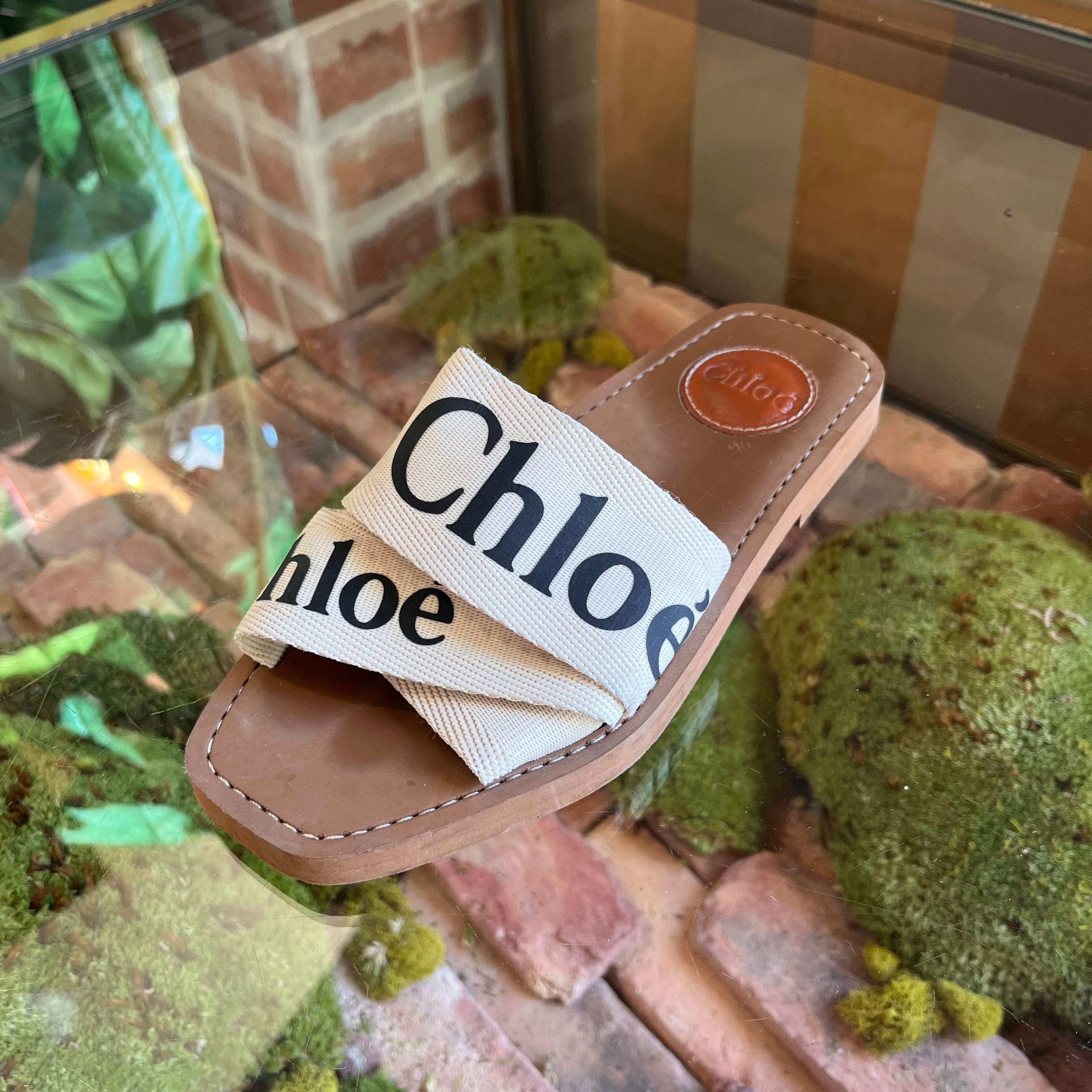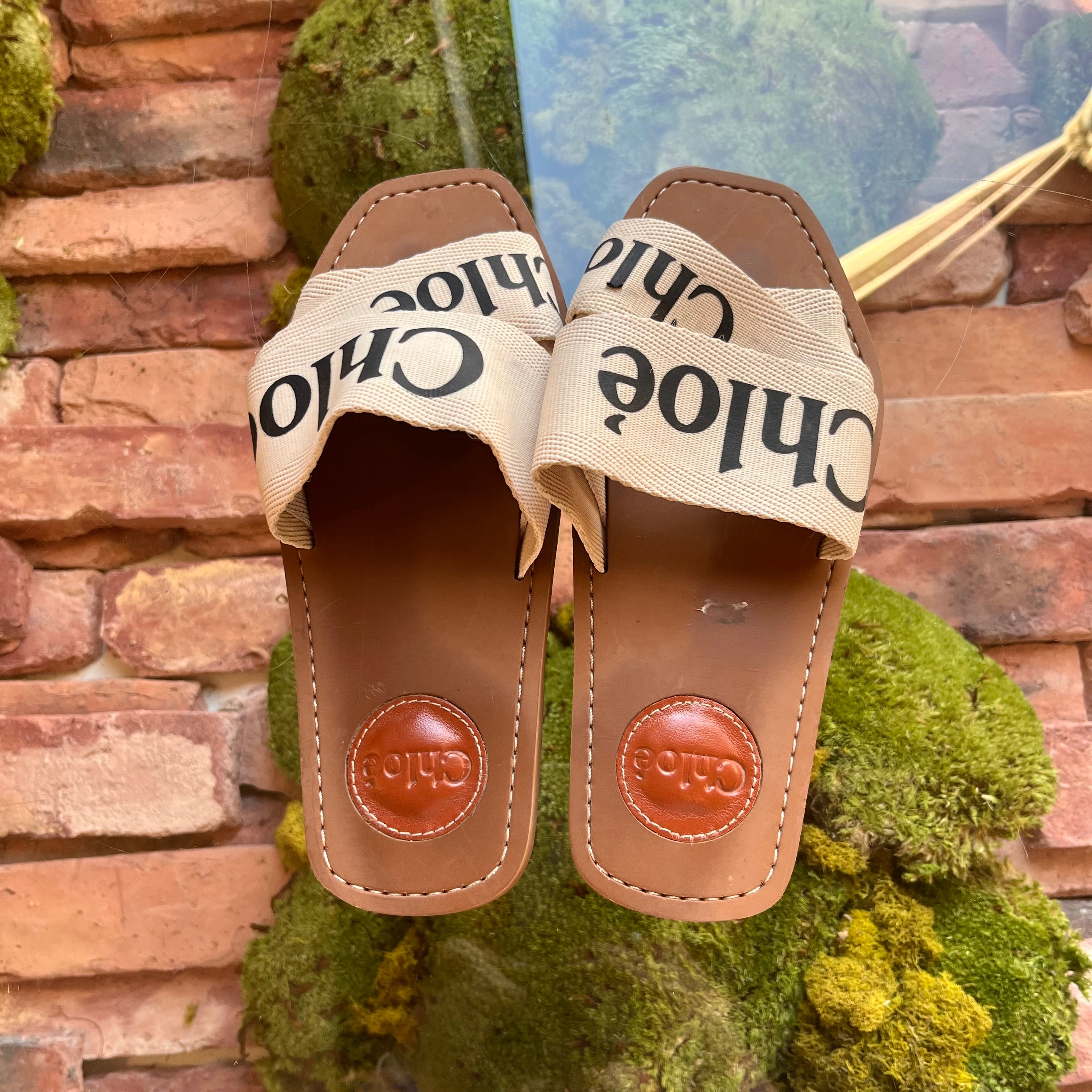 CHLOE Woody Flat Logo Ribbon Slide Sandals size 35 ( US 5)
