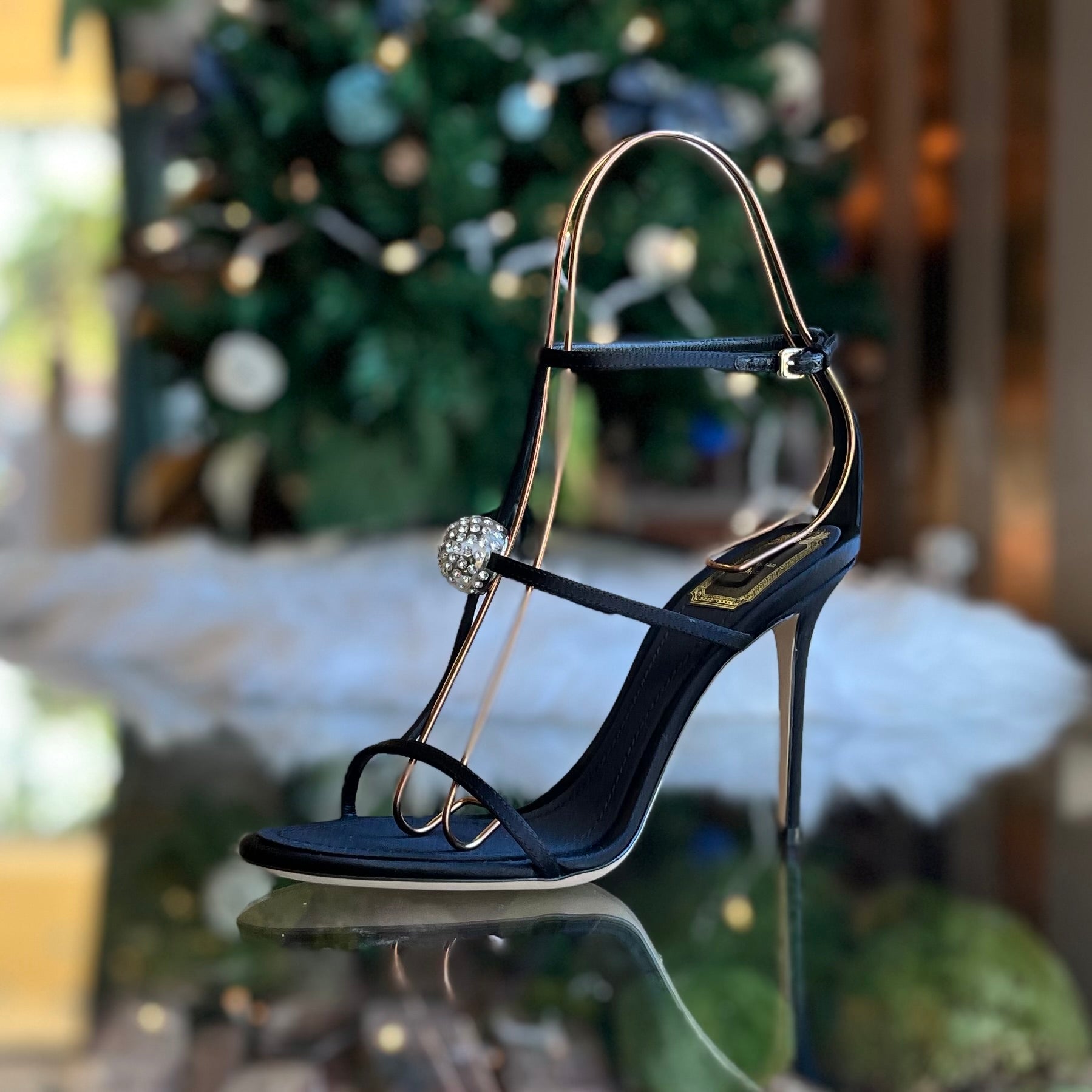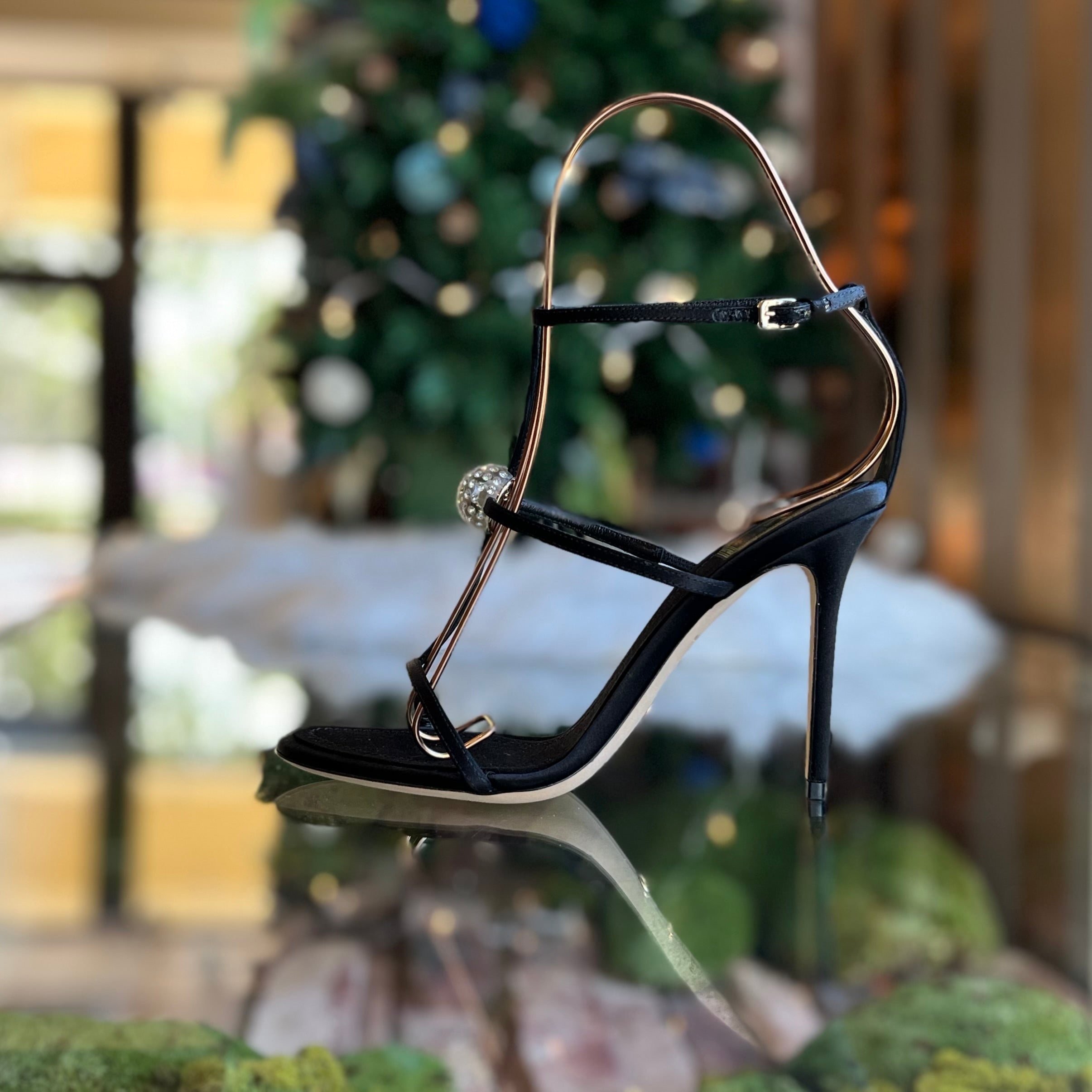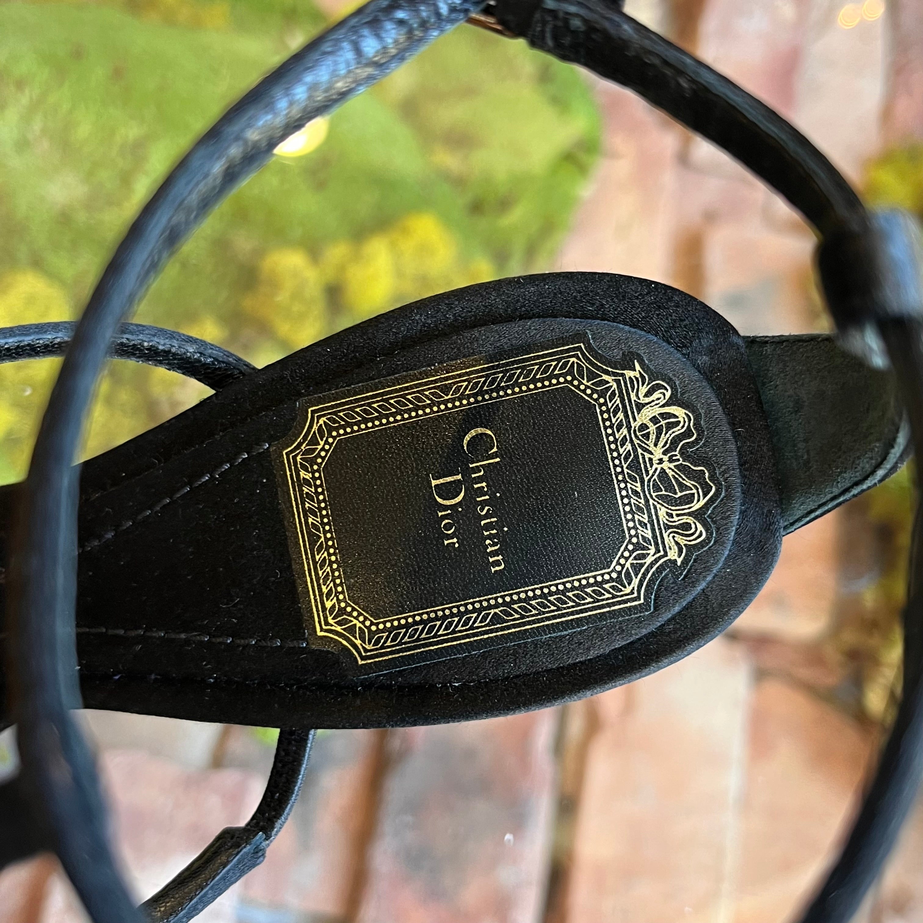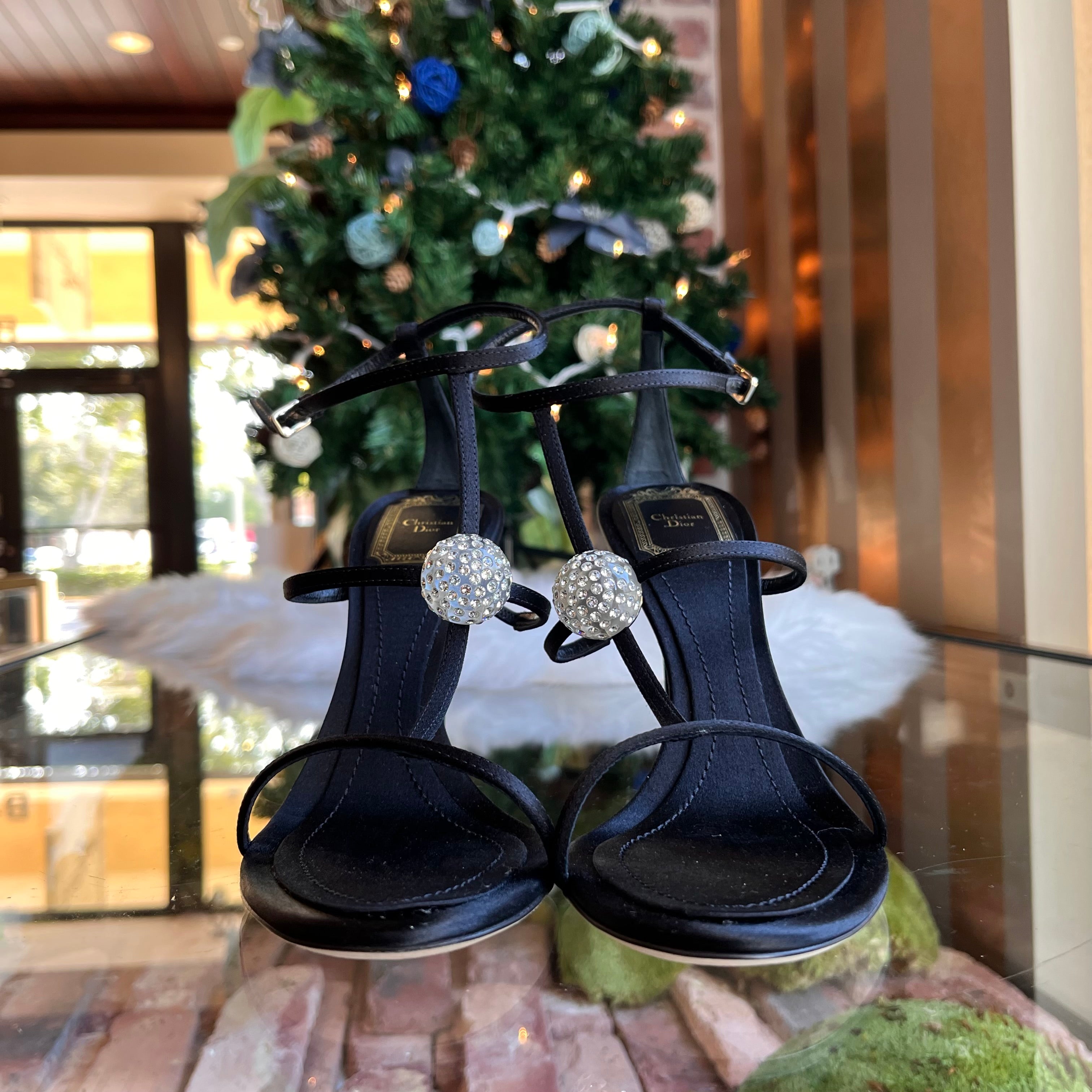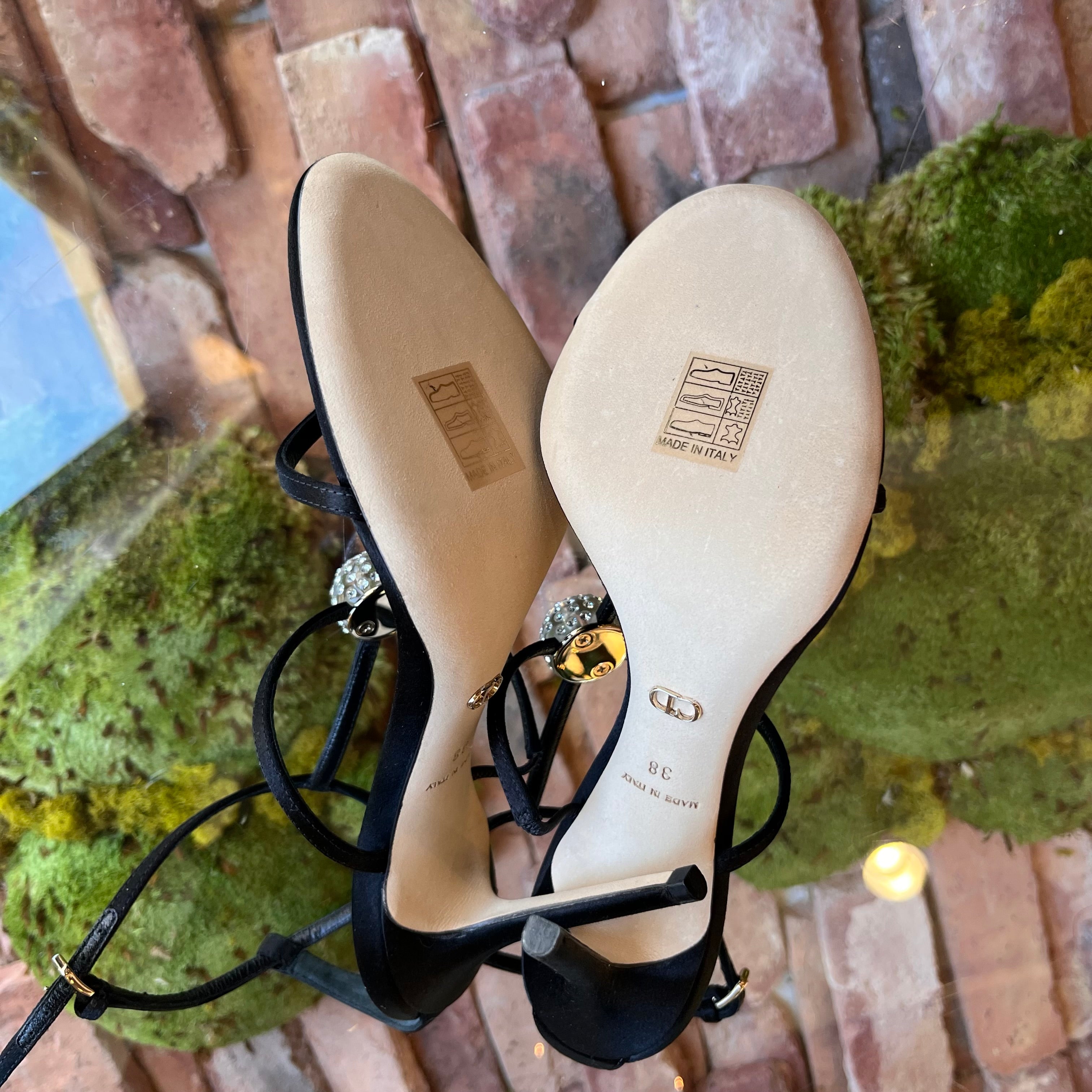 DIOR T Strap Black Satin Crystal Embellished Sandals SZ38(8US)
