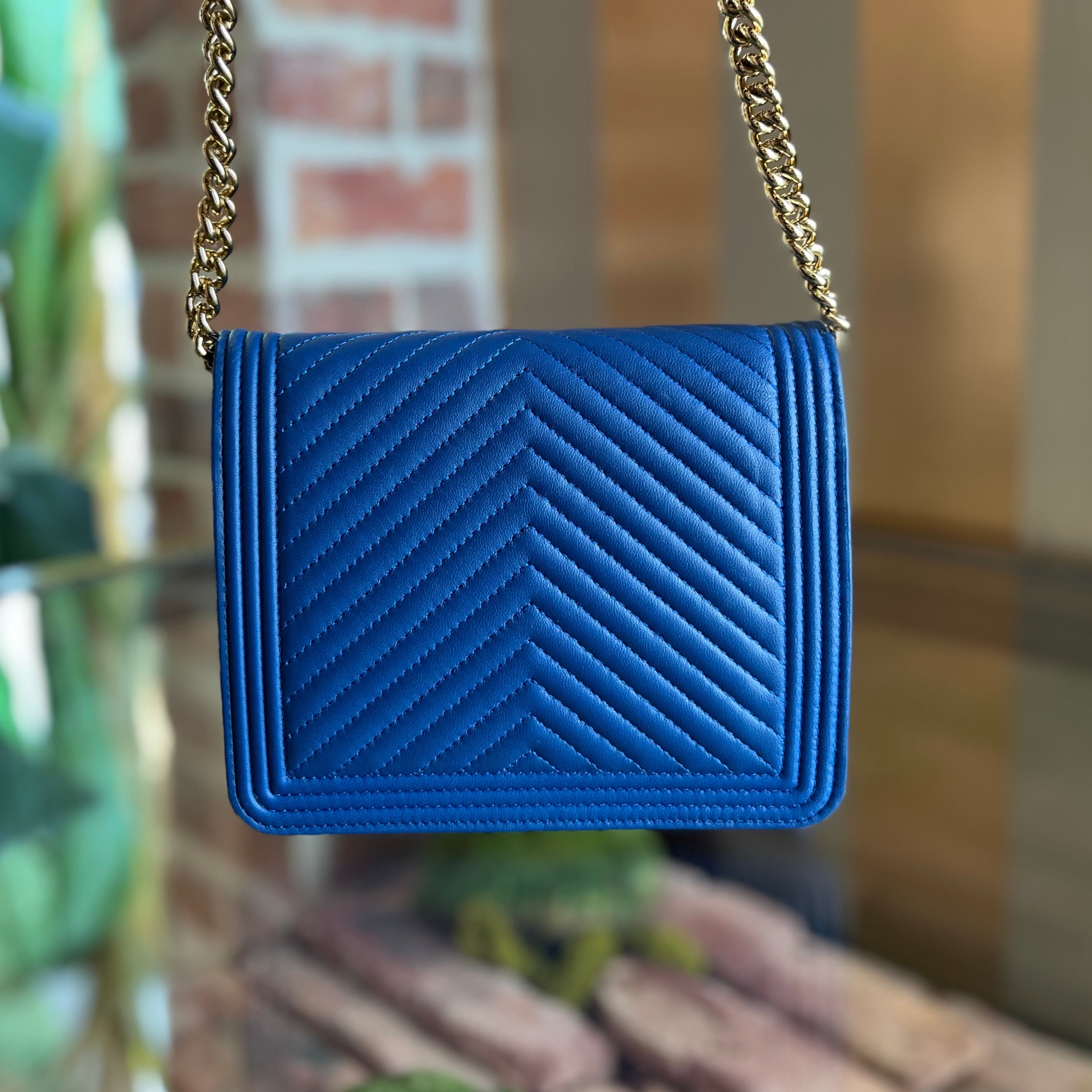CHANEL Boy Wallet on Chain Square Chevron Quilted Calfskin Crossbody