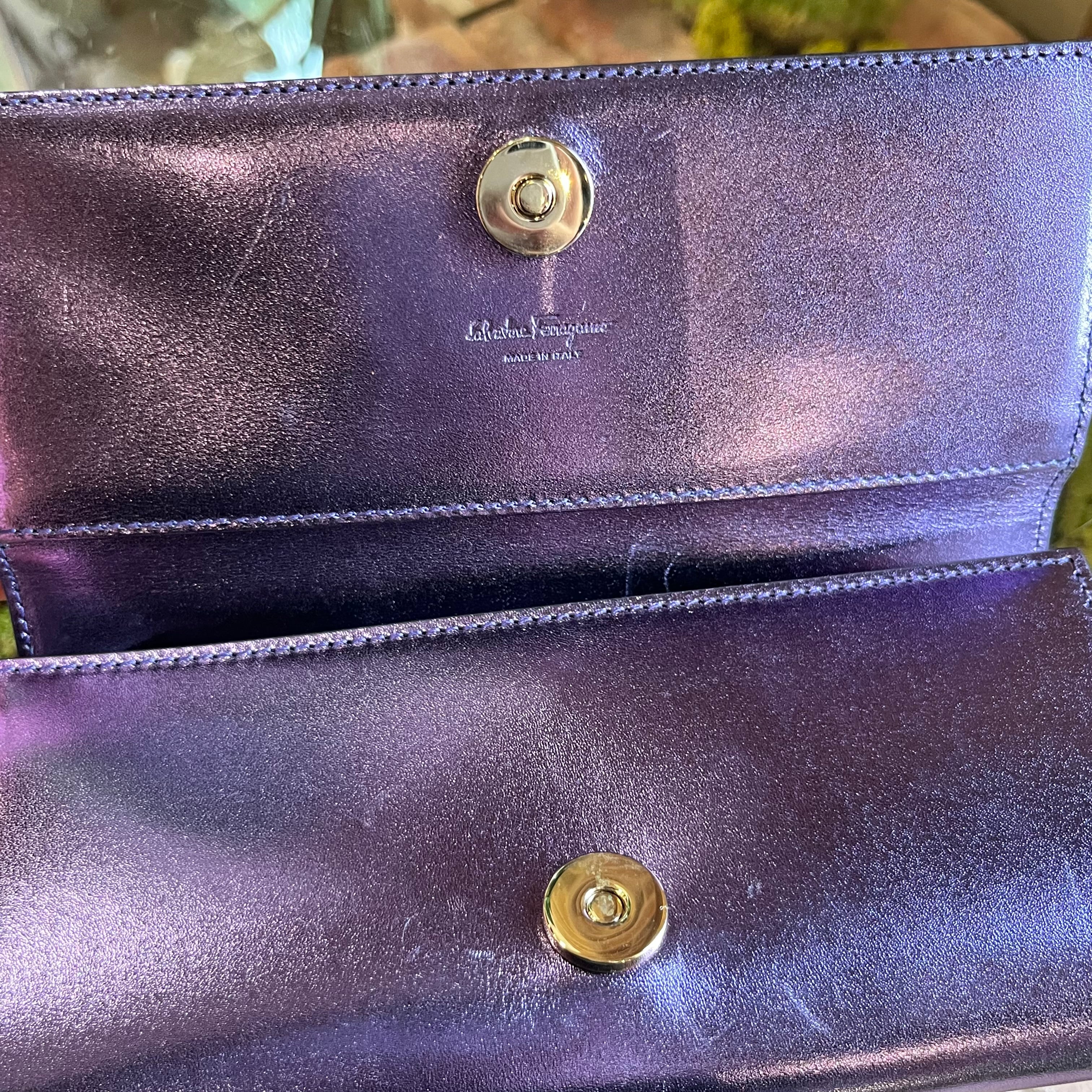 FERRAGAMO Purple Top Handle Wallet On Chain