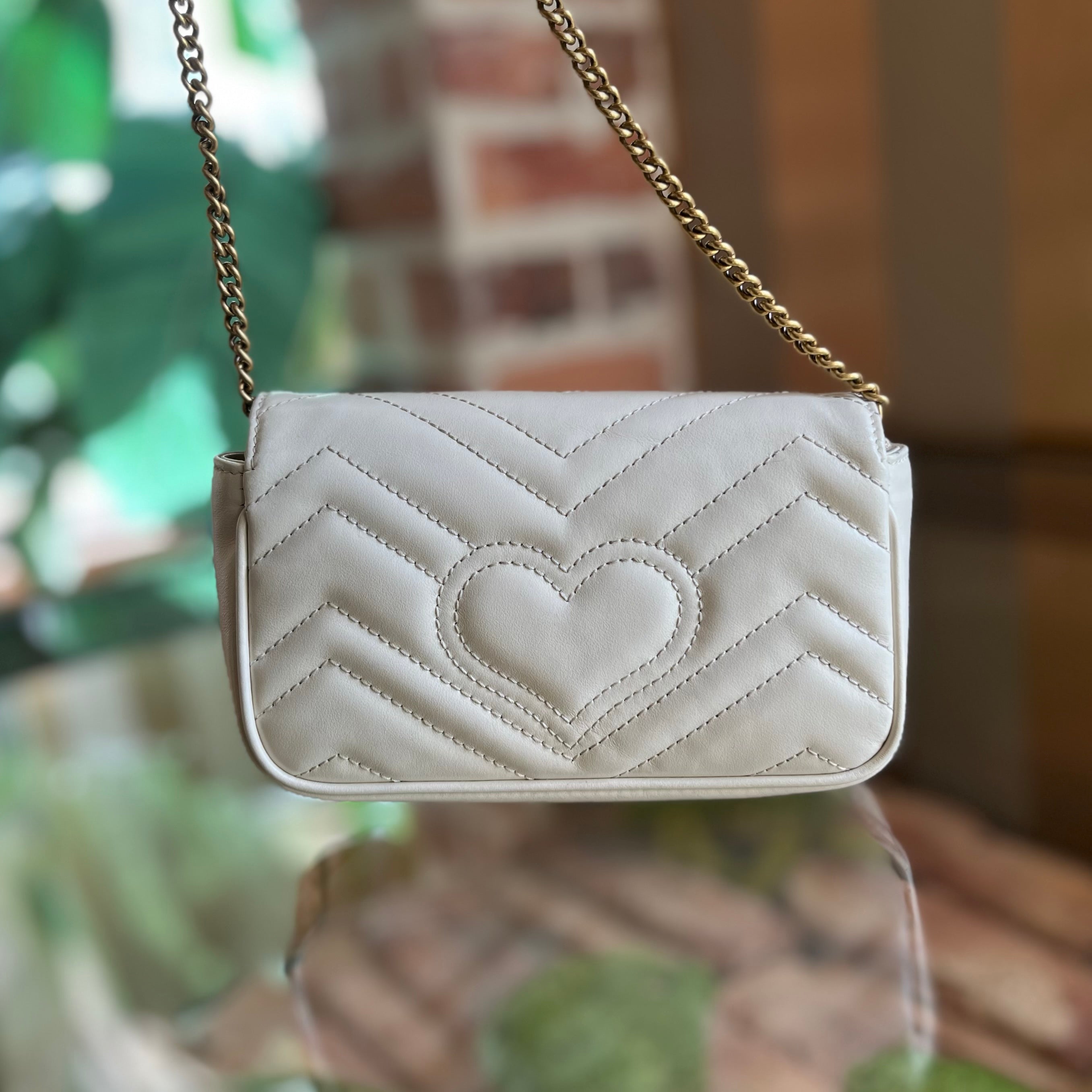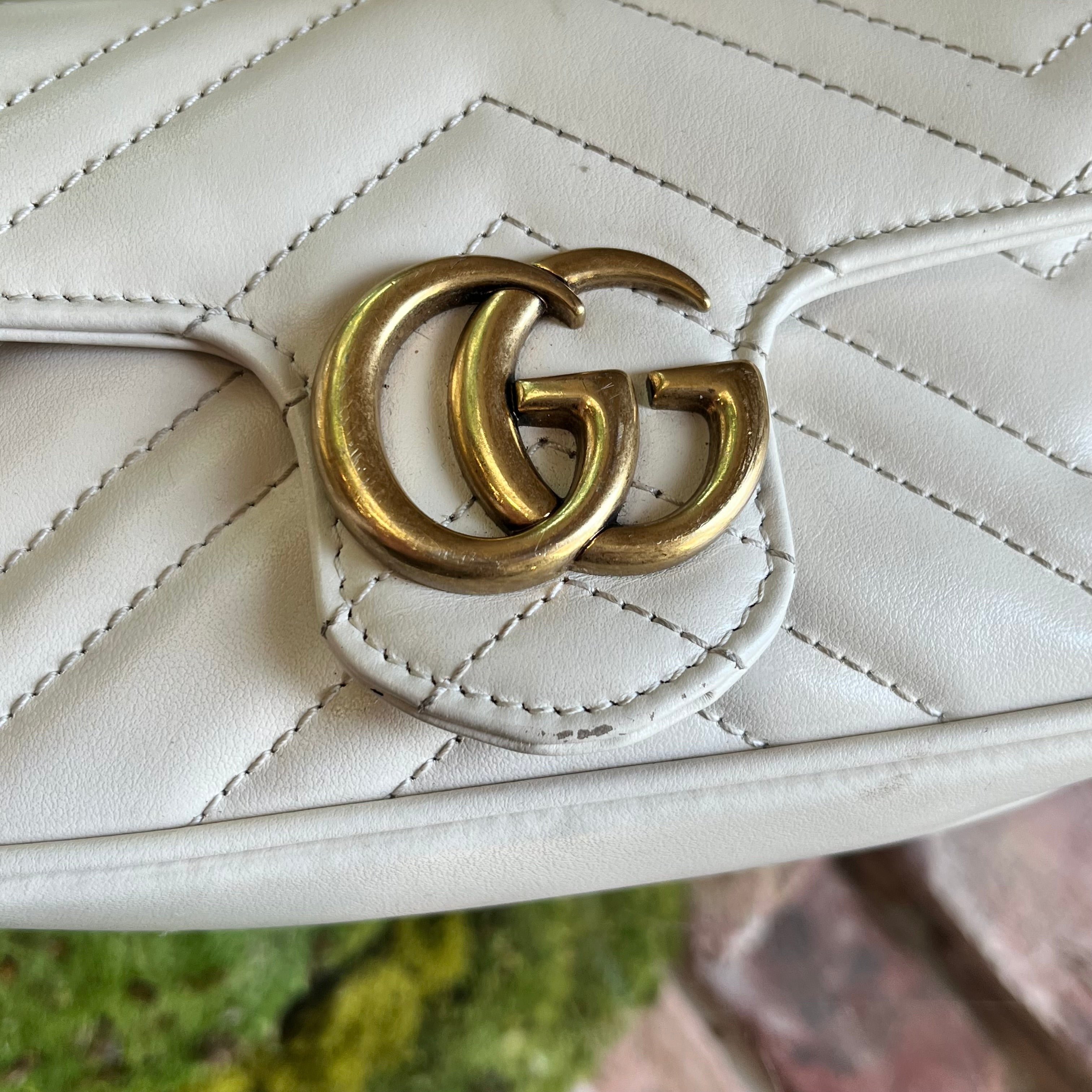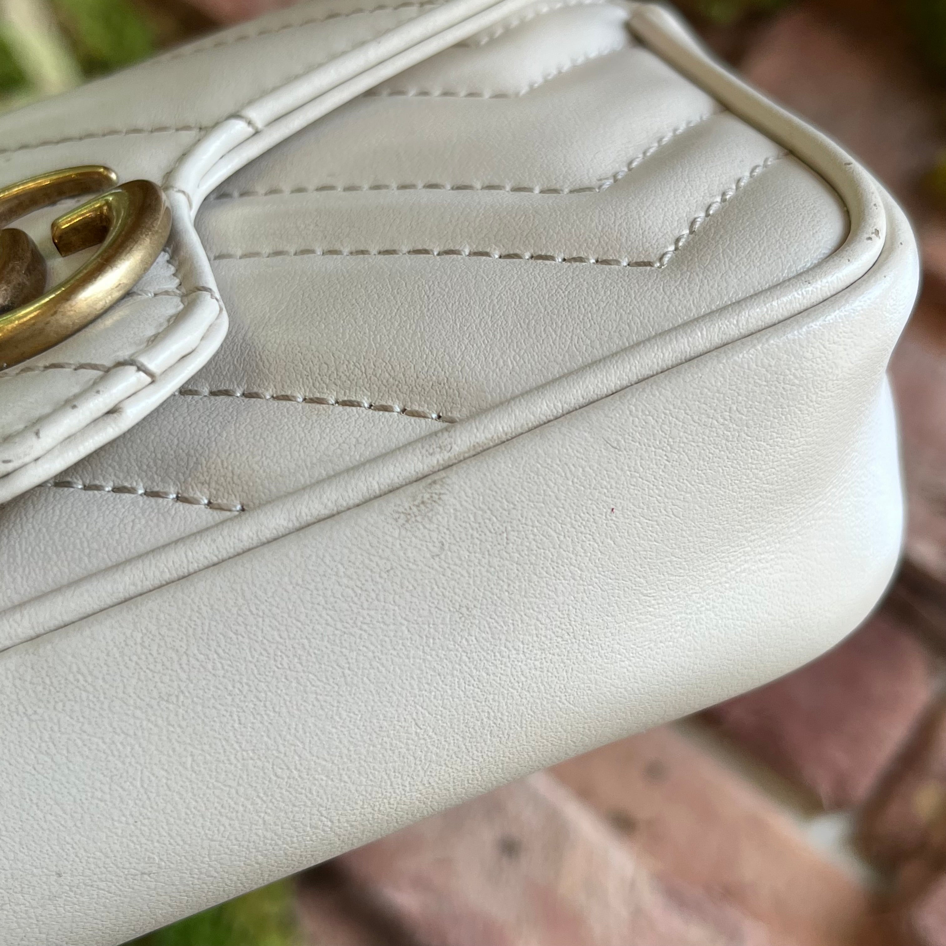 GUCCI GG Marmont White Matelassé Calfskin Crossbody Bag