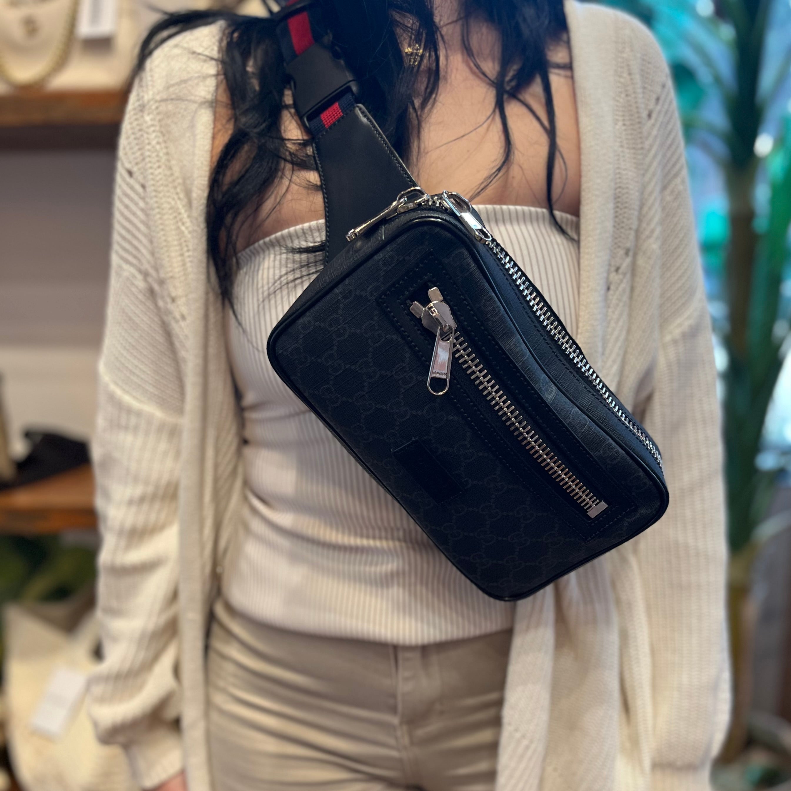 GUCCI Belt Bag Black Grey Soft GG Supreme Monogram Web Belt Bag