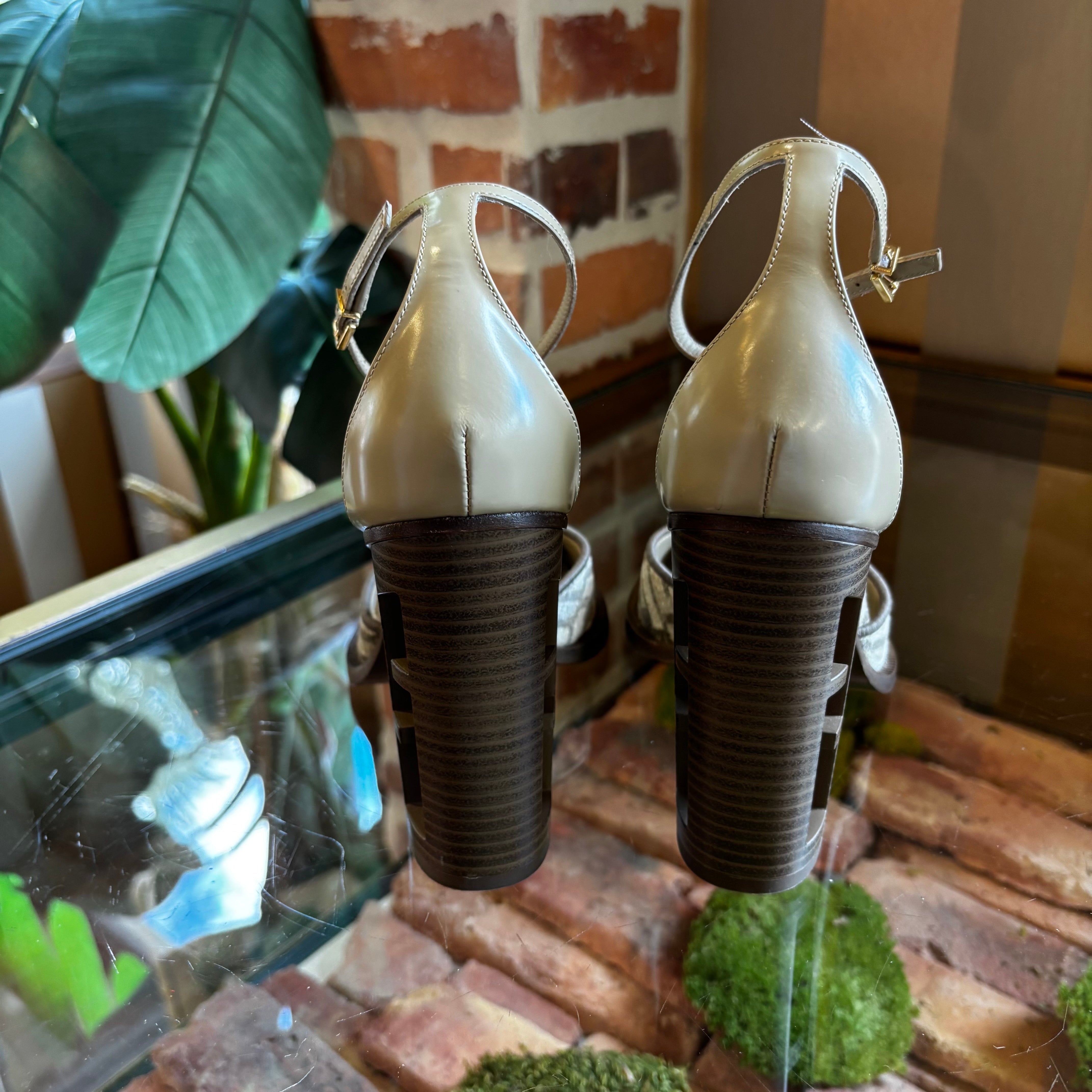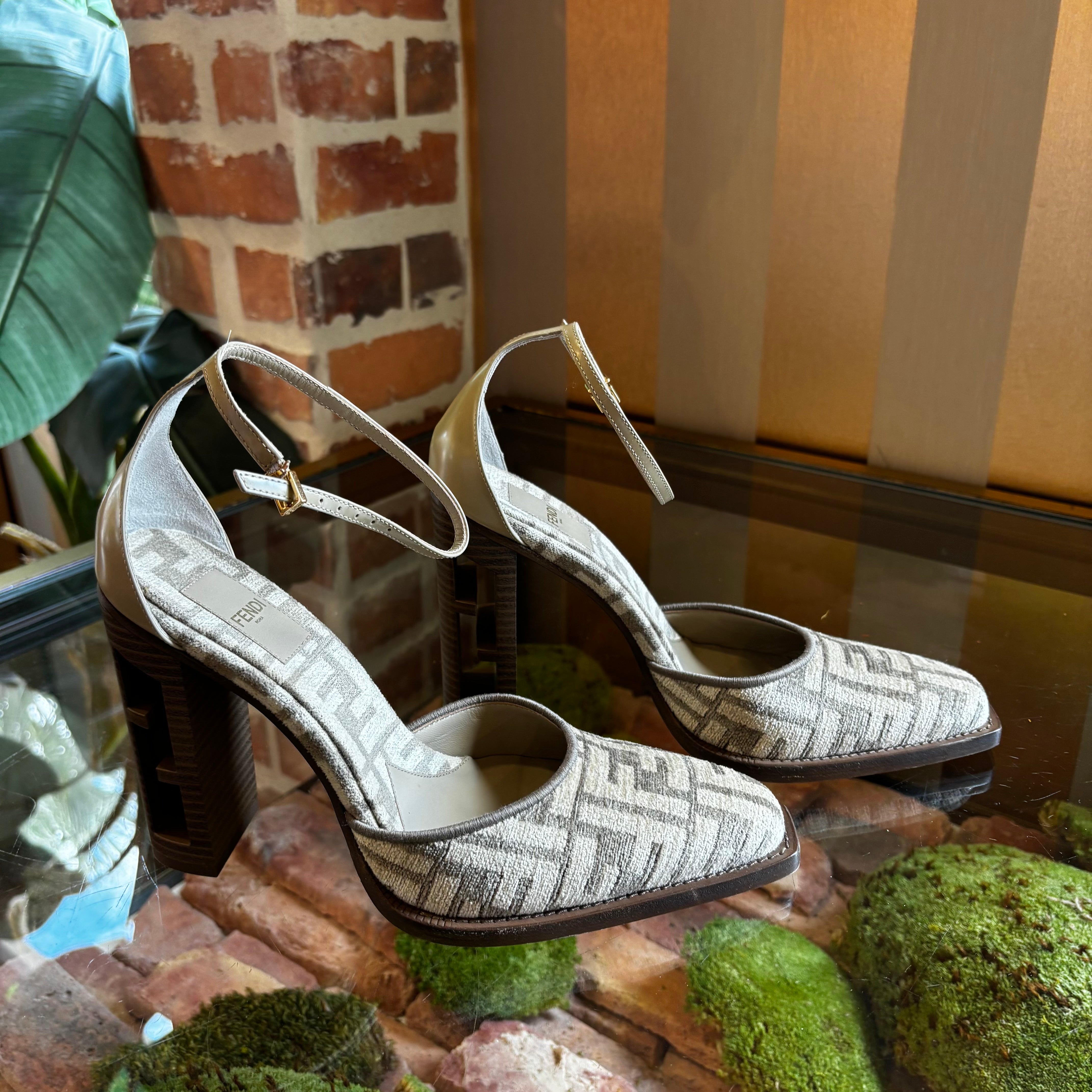 FENDI Zucca FF Logo D'Orsay Dove Grey Velvet Pumps SZ 39 (9 US)