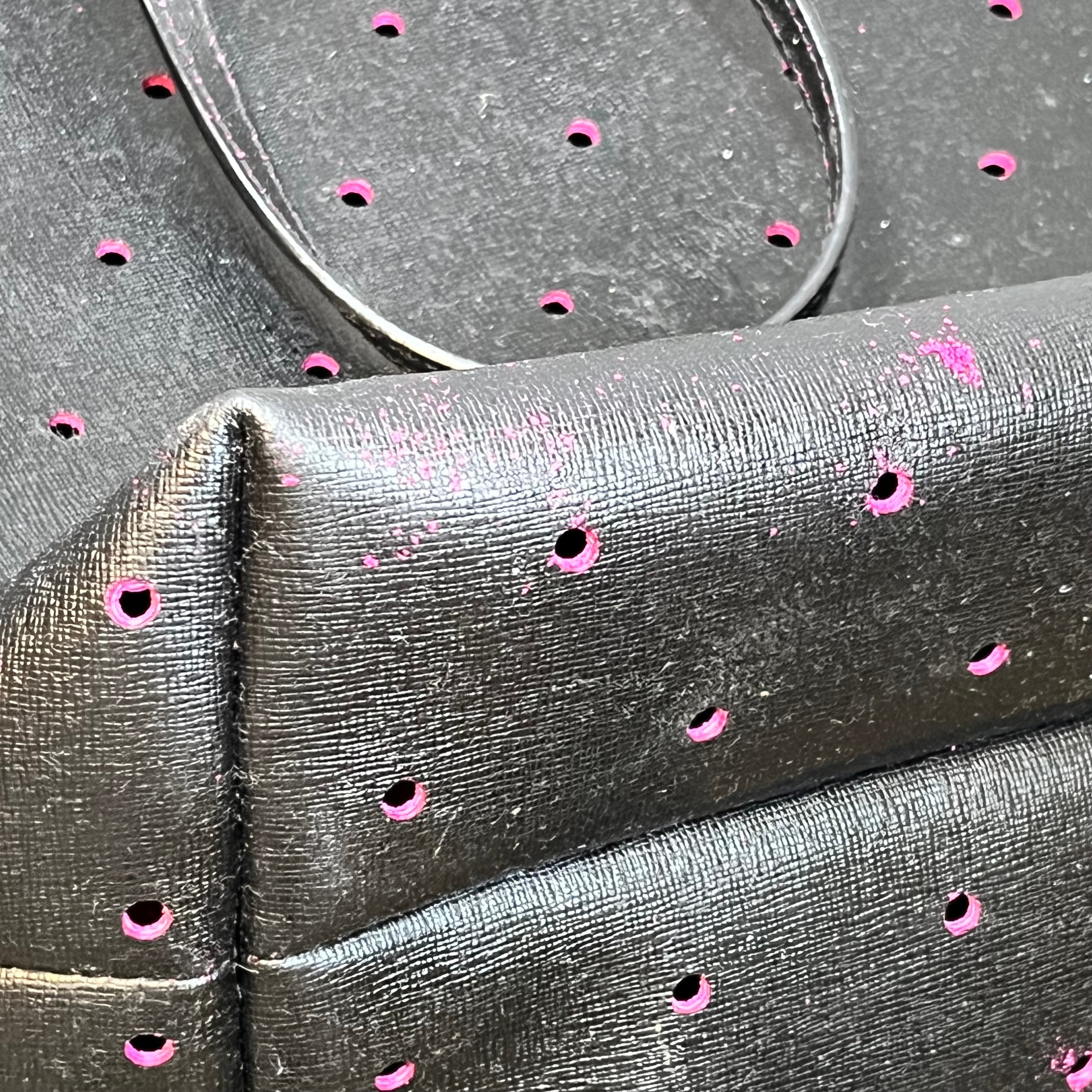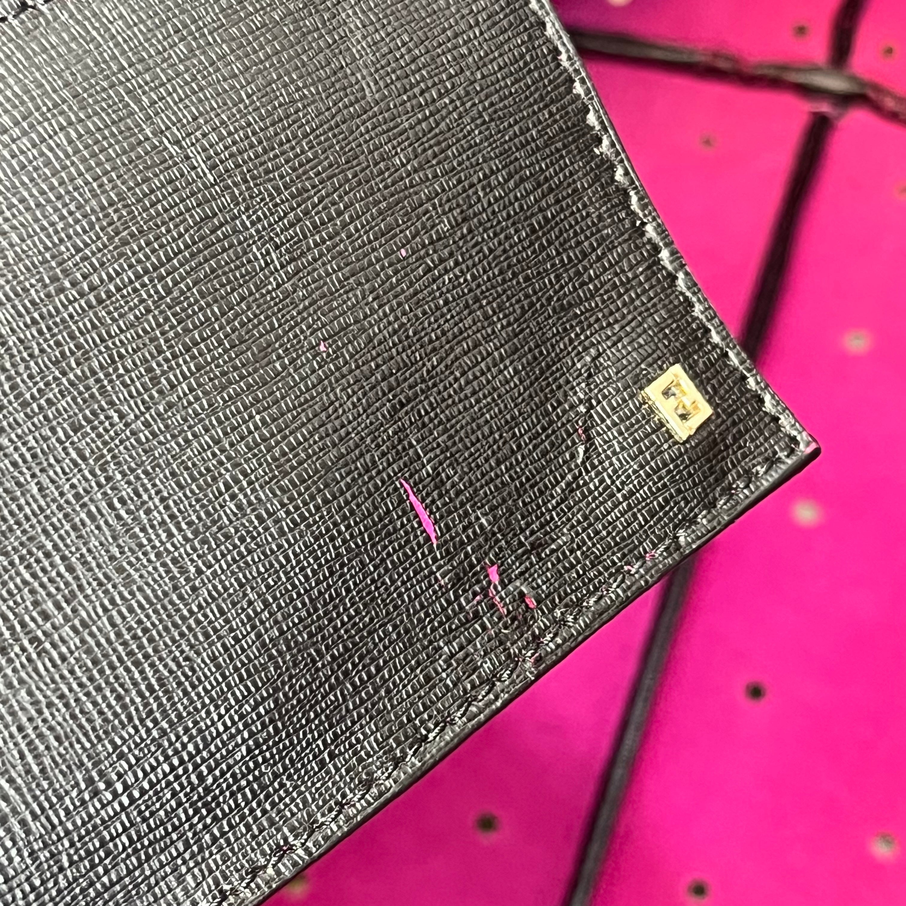 A modern twist on Italian craftsmanship, this tote features supple Vitello leather with bold perforated detailing for a breathable, textured look. The structured roll-top design and FF logo hardware strike the perfect balance between Fendi's playful spirit and timeless functionality. C+ Poor Condtion