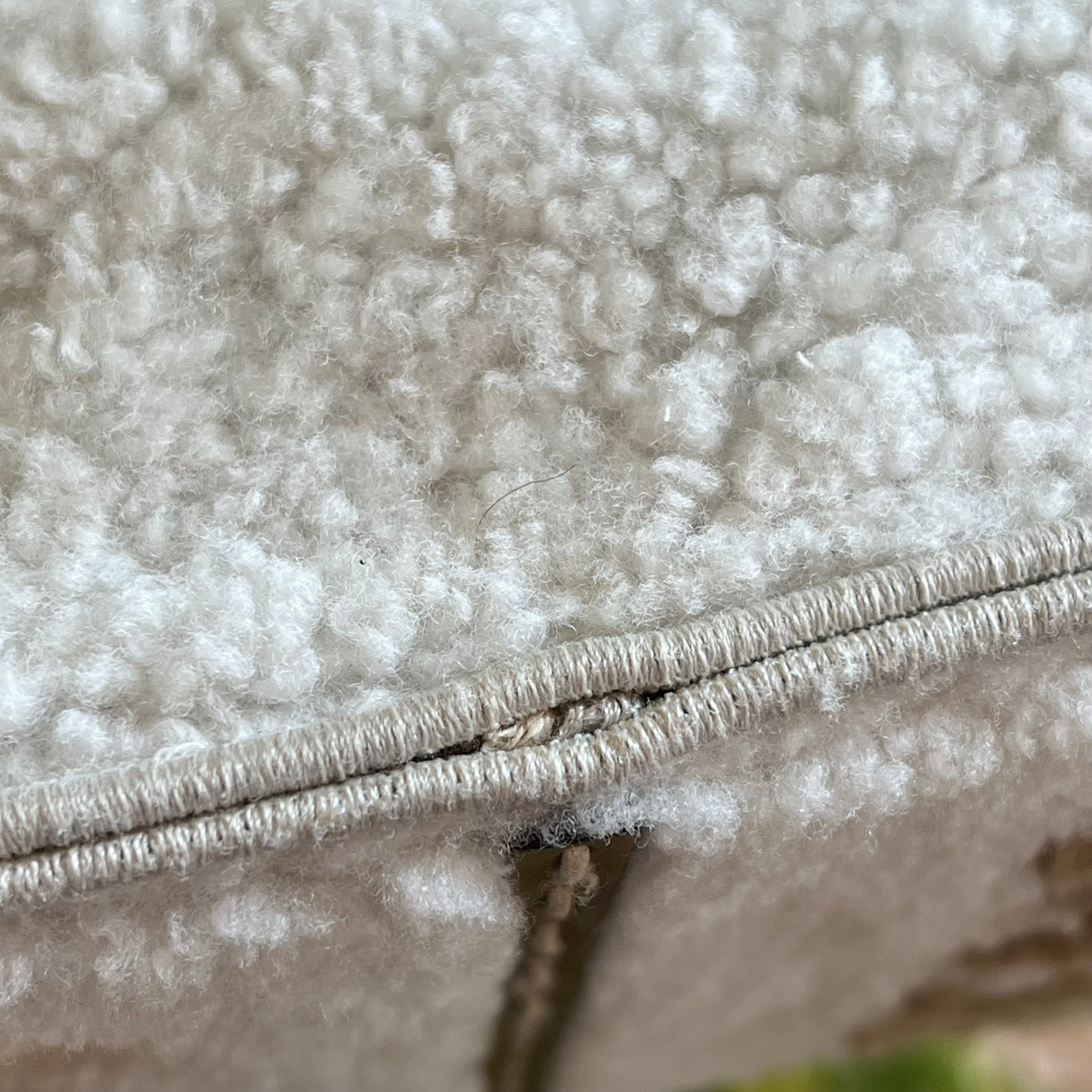 - Exterior: The exterior shearling is clean and vibrant, with a small glue mark and gentle pilling that don’t detract from its plush, luxurious texture. Overall, it’s in very good condition, offering both comfort and style.