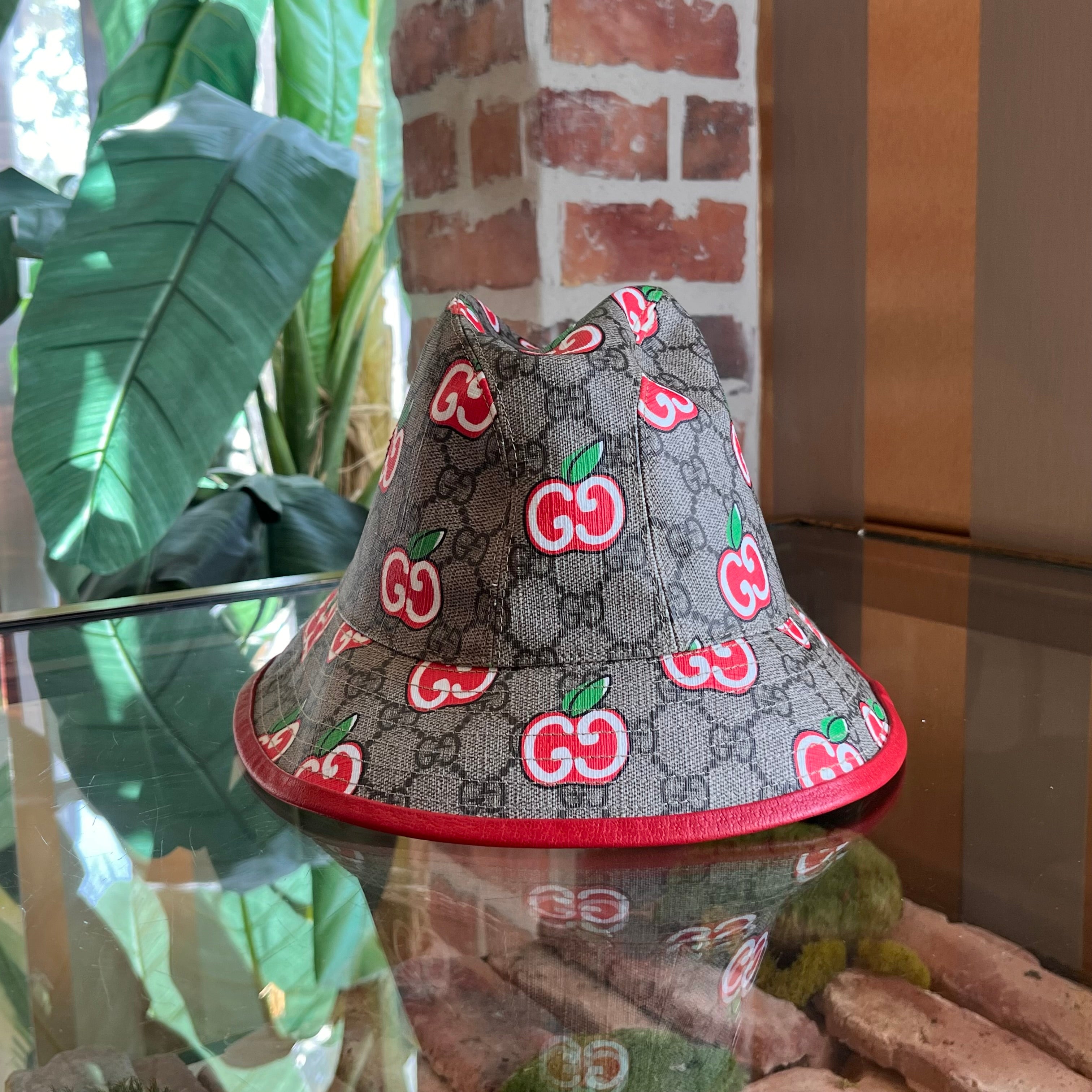 GUCCI GG Supreme Monogram Apple Textured Dollar Calfskin Retro Interlocking G Fedora SZ57(M)