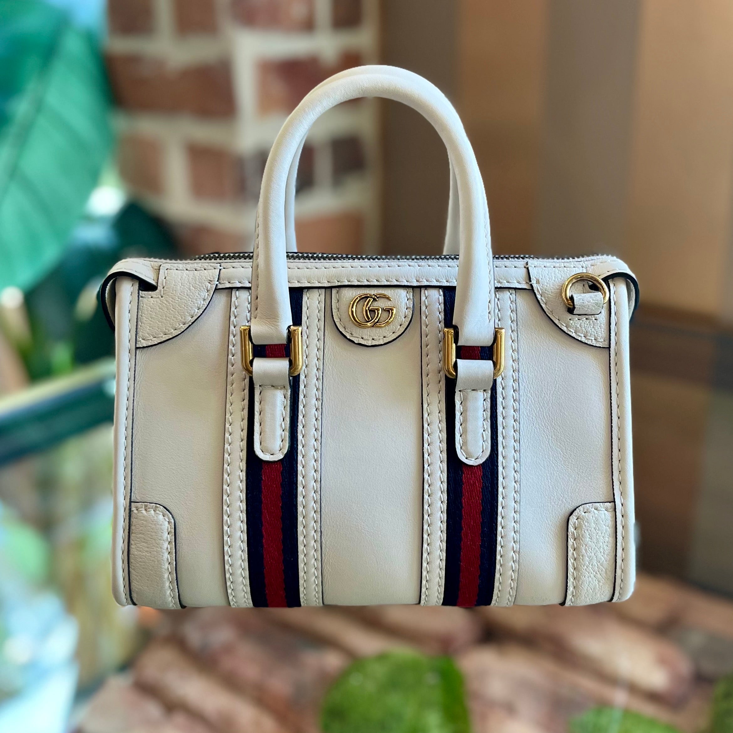 Elevate your ensemble with the GUCCI Koi Calfskin Small Bauletto Duffle Top Handle Bag. Crafted from supple calfskin, this elegantly structured bag features the signature bauletto shape and refined top handle, blending timeless design with contemporary flair. Its compact size offers versatile carry options, making it an exquisite choice for both day and evening occasions. Very good condition.