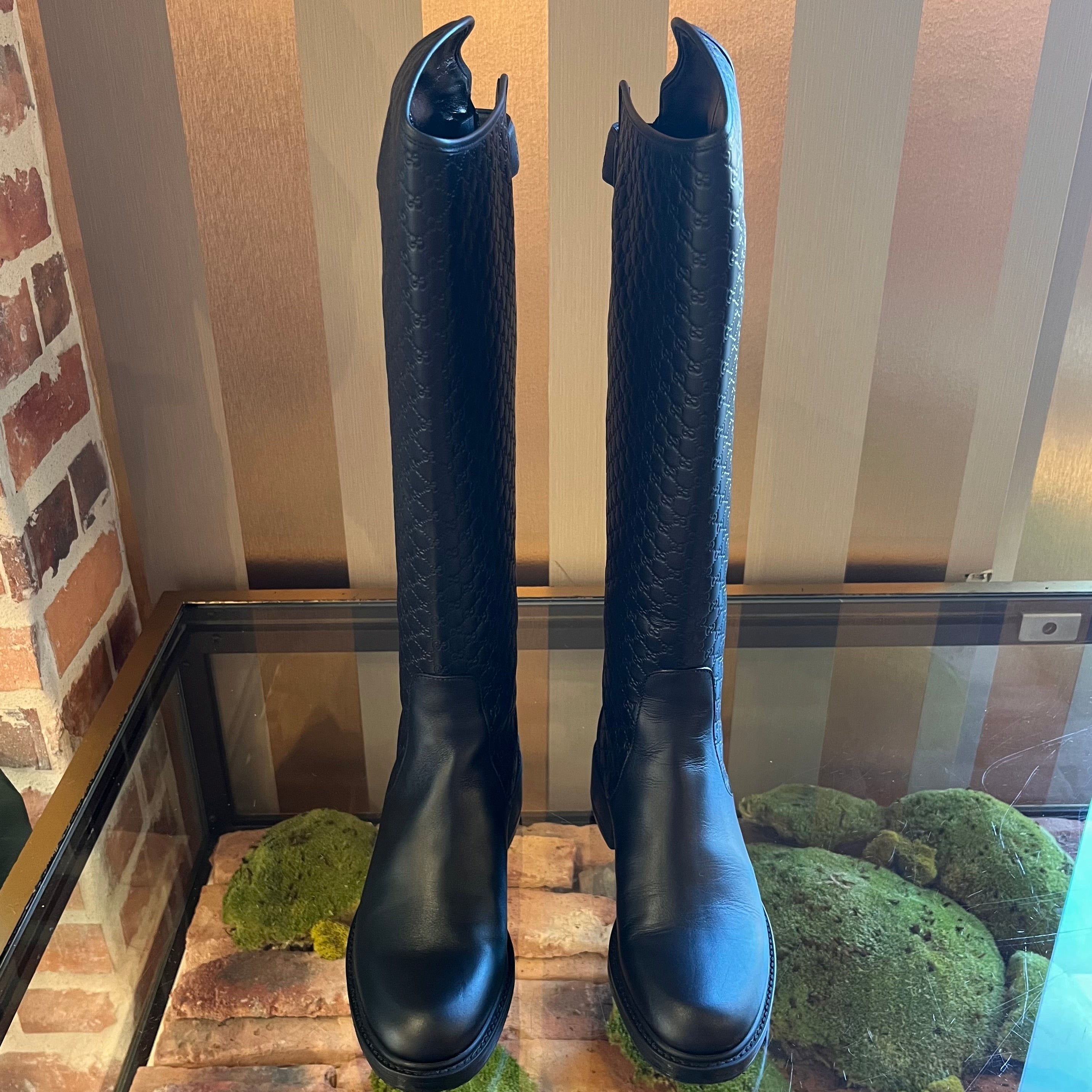 GUCCI Knee High Microguccissima Black Leather Riding Boots 36.5 (6.5 US)