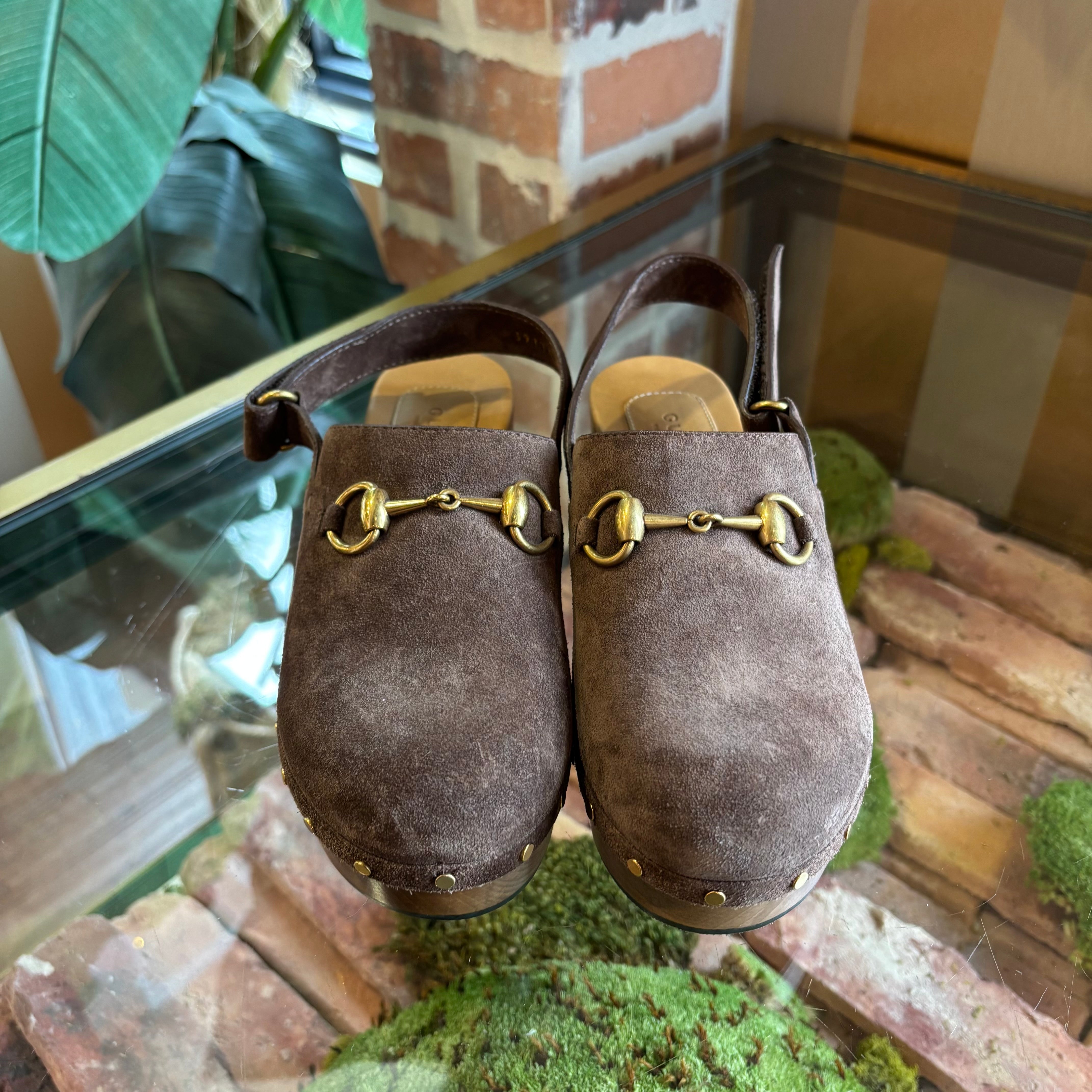 GUCCI Horsebit Accent Suede Slingback Pumps 36