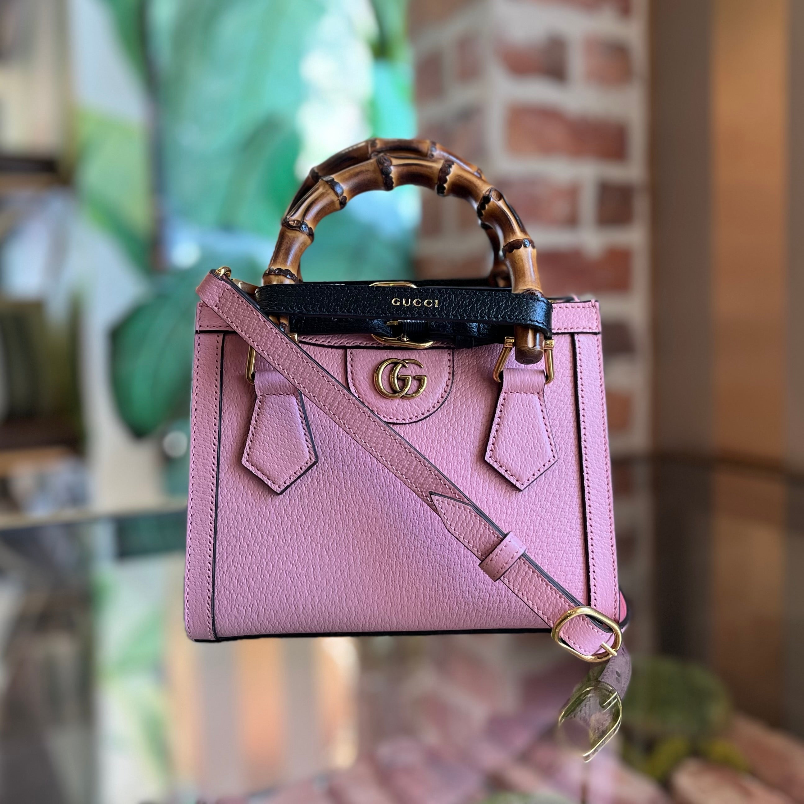 GUCCI Diana Small Textured Dollar Calfskin Web Tote Bag