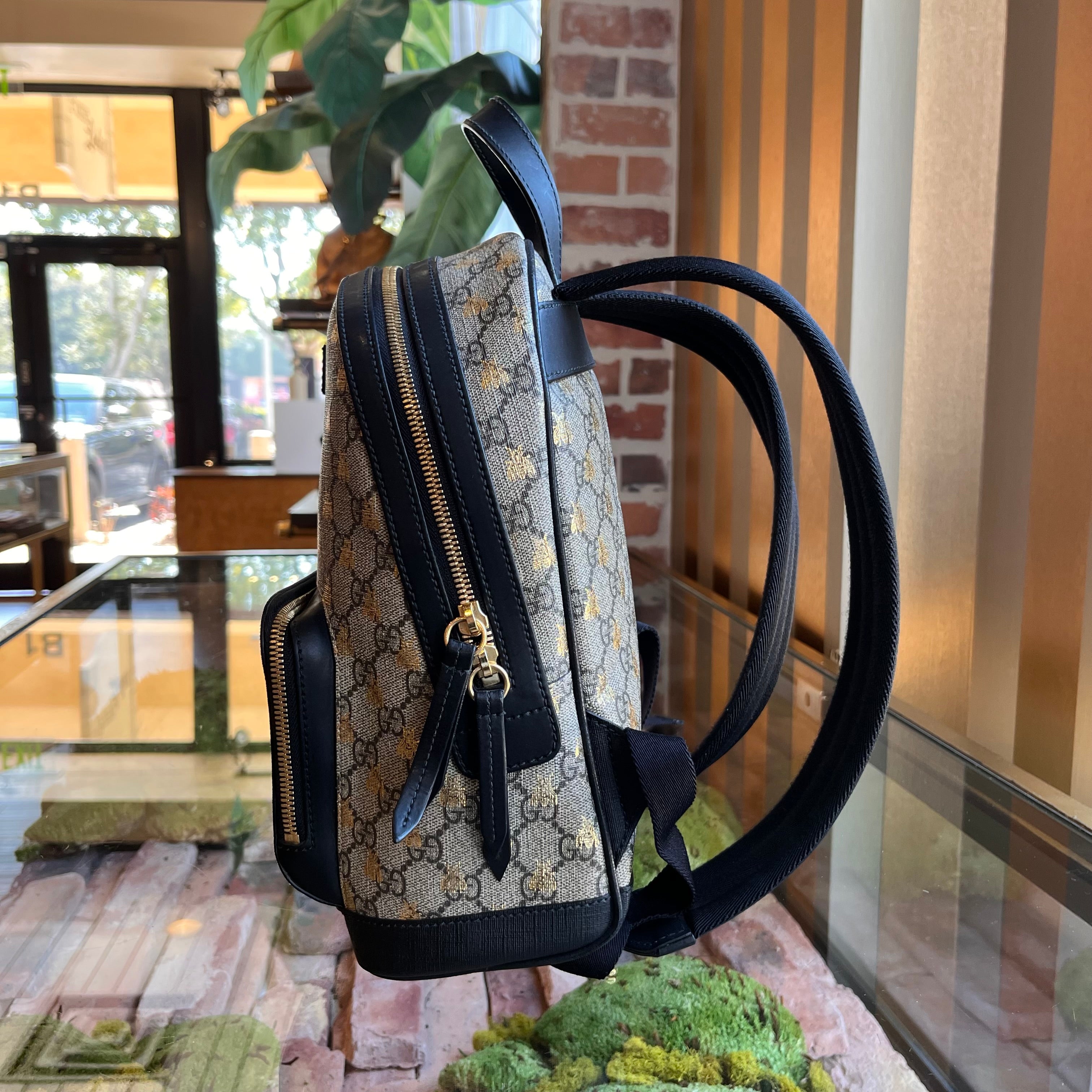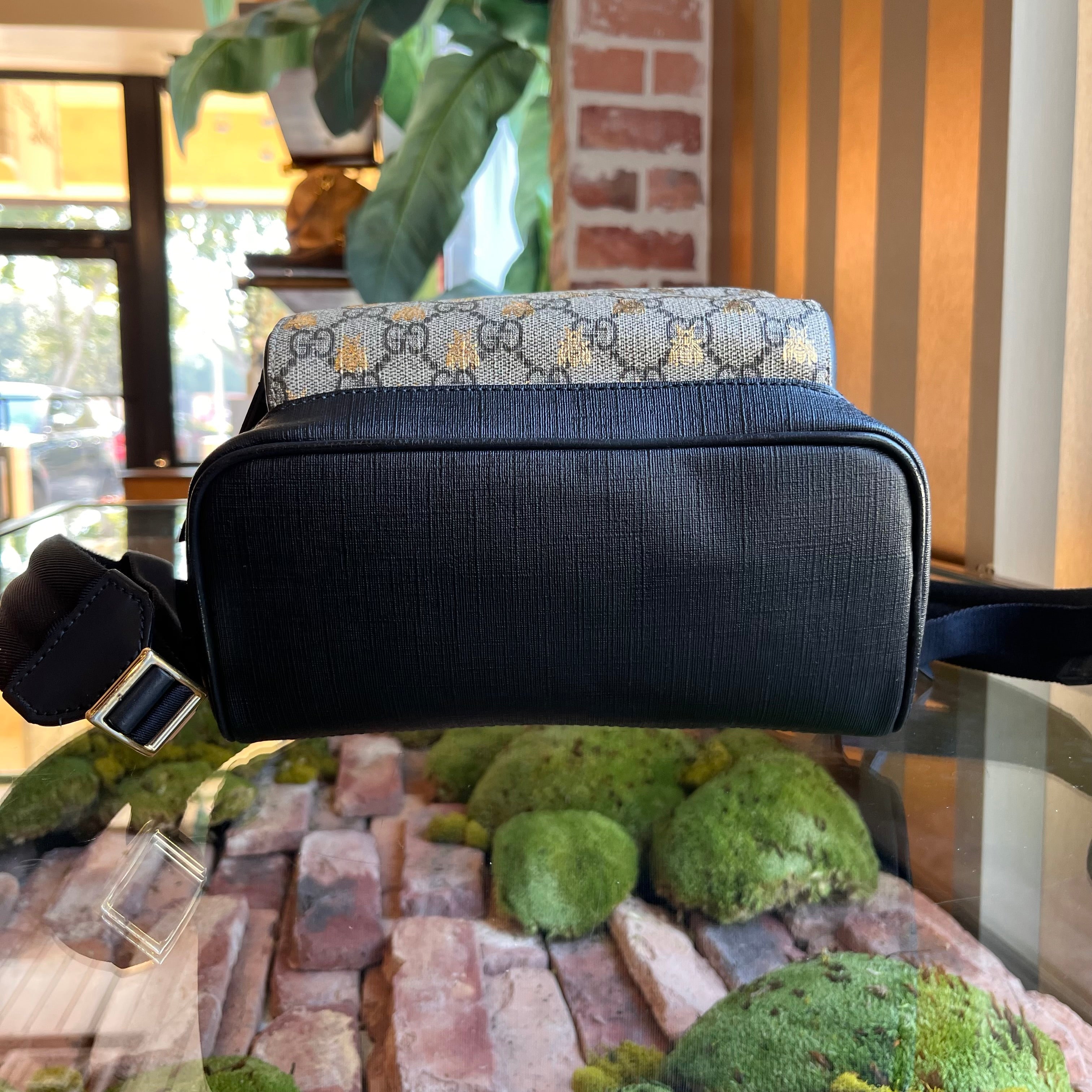 GUCCI Day Small GG Supreme Monogram Bees Print Backpack