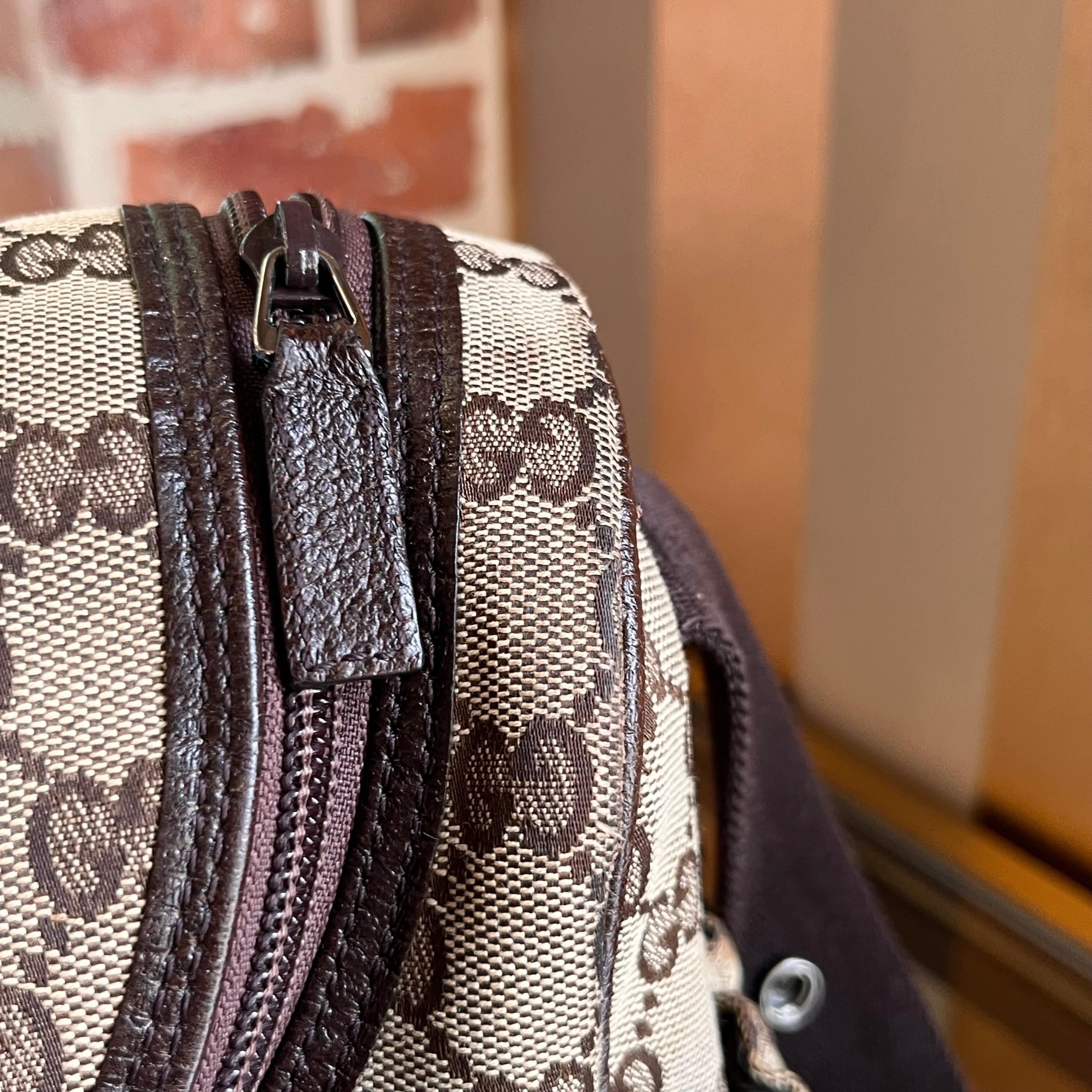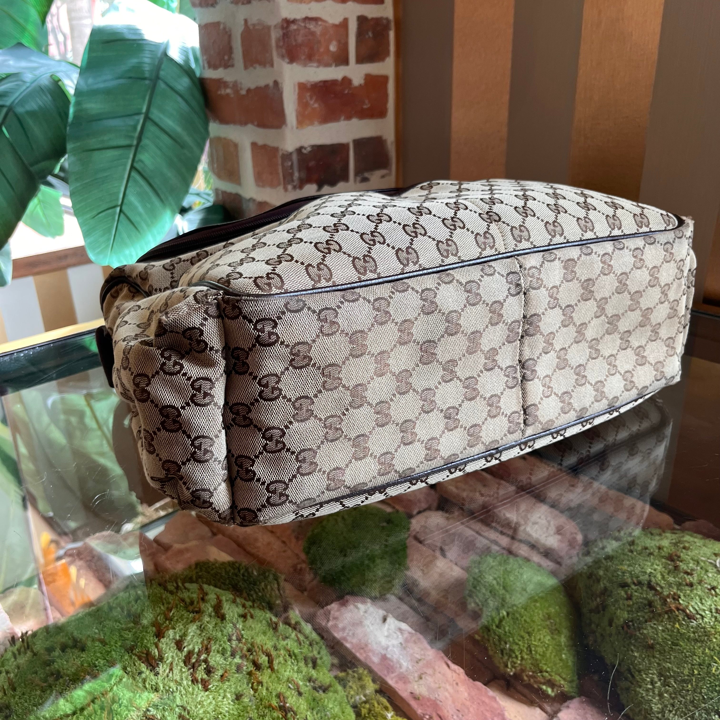 GUCCI Beige Brown GG Canvas Diaper Crossbody Bag