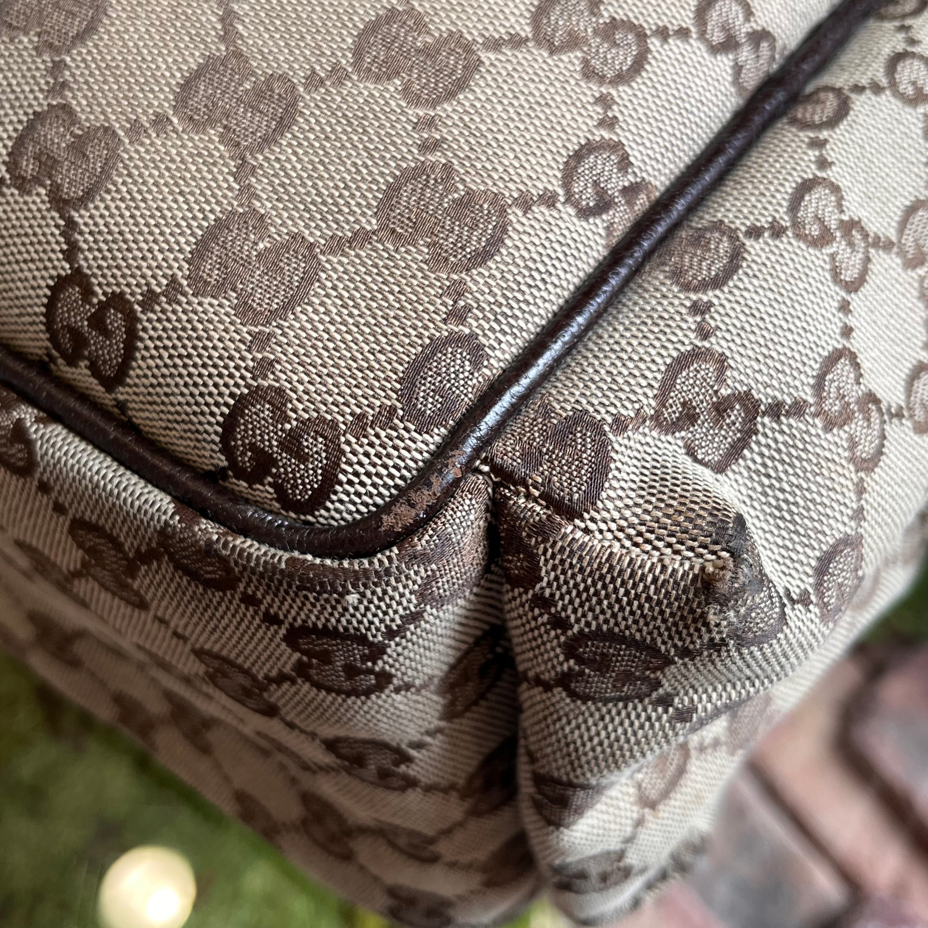 - Exterior: The exterior is gorgeous and supple with heavy scuffing, darkening, fraying, heavy rubbing and marks. Overall it's in very good condition.