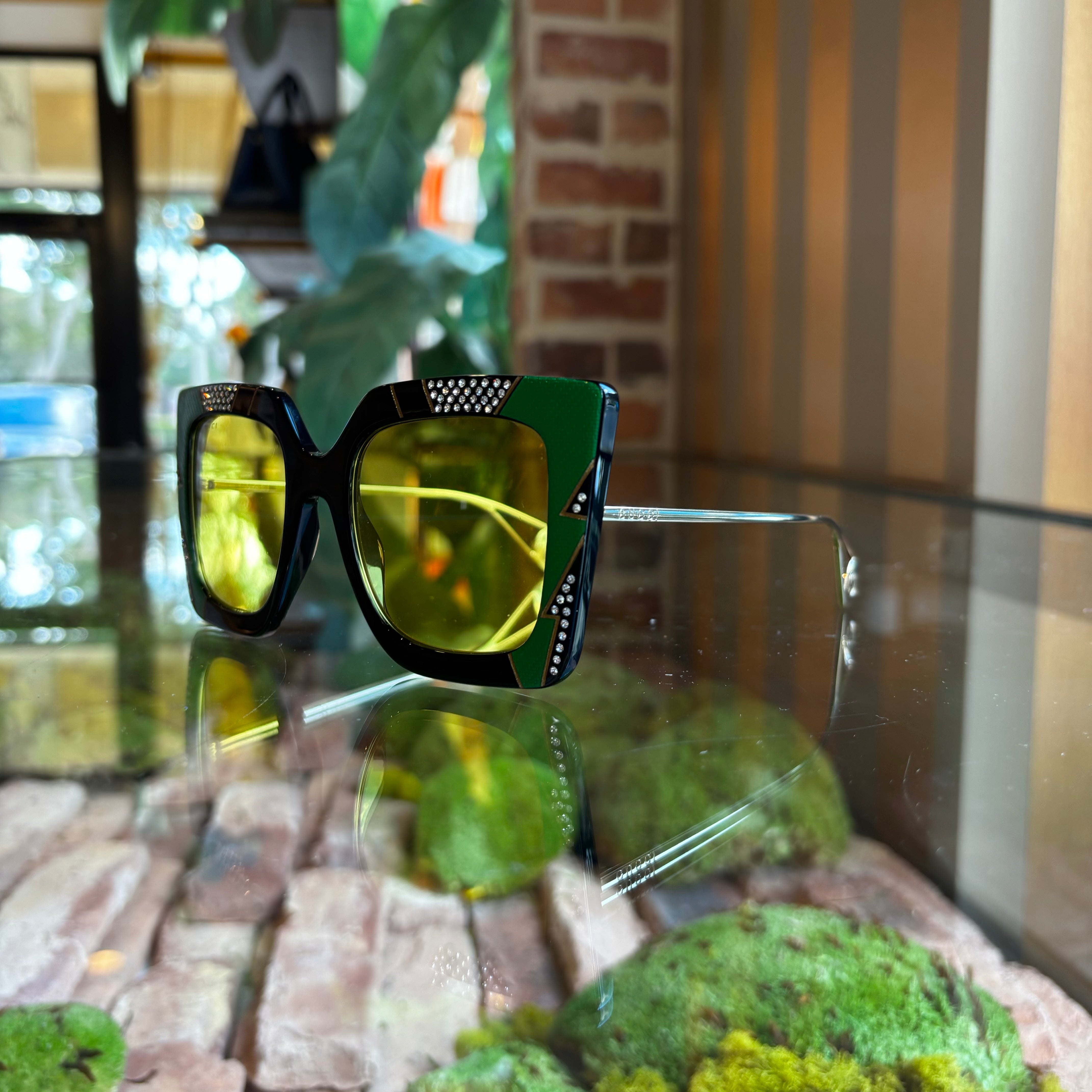 GUCCI GG0435/S Black Crystal Embellished Green Snake Skin Acetate Squa
