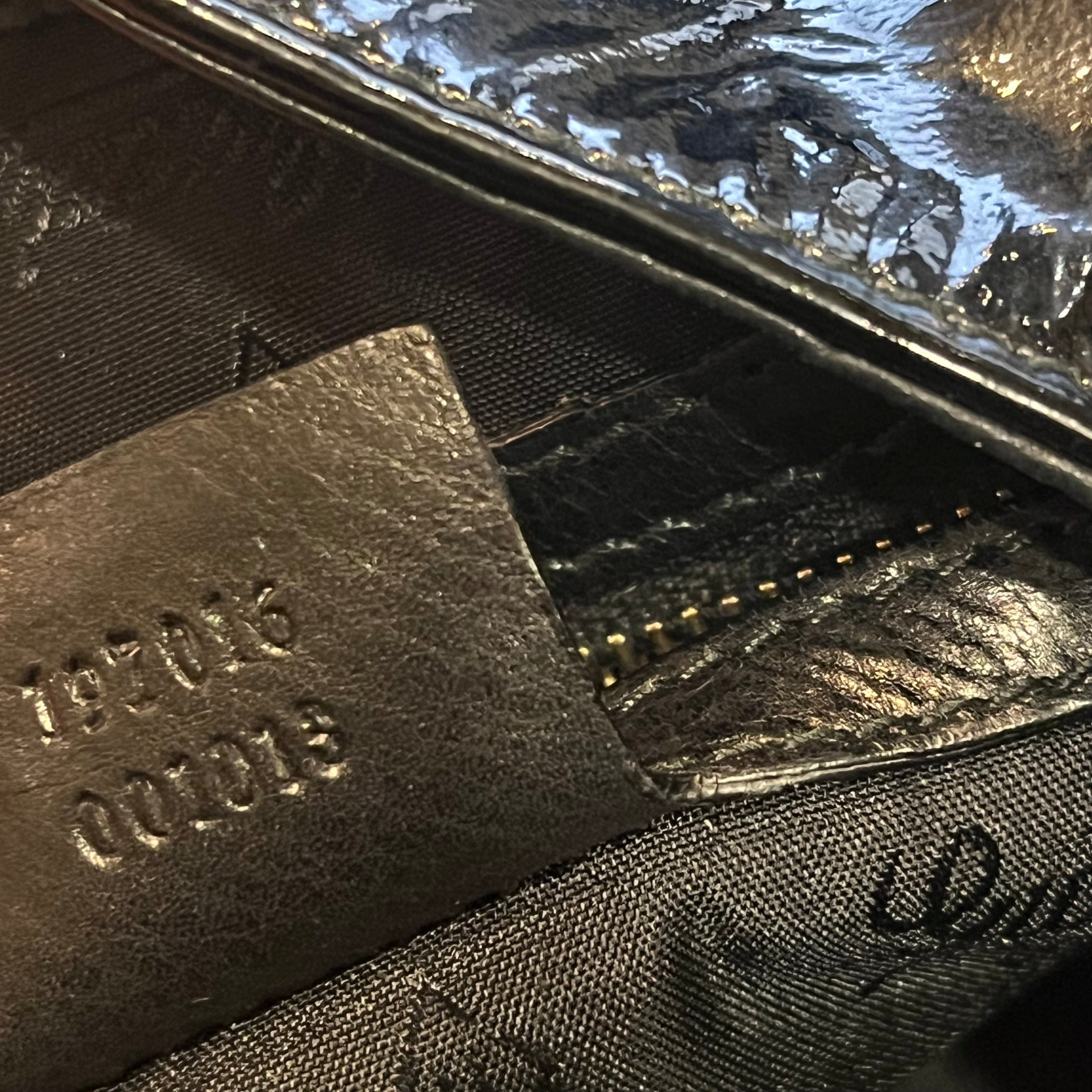 • Handle: The patent leather is rich and shiny. There are variations in sheen, rubbing, scratches and small marks. The handle and strap remain functional and well-maintained