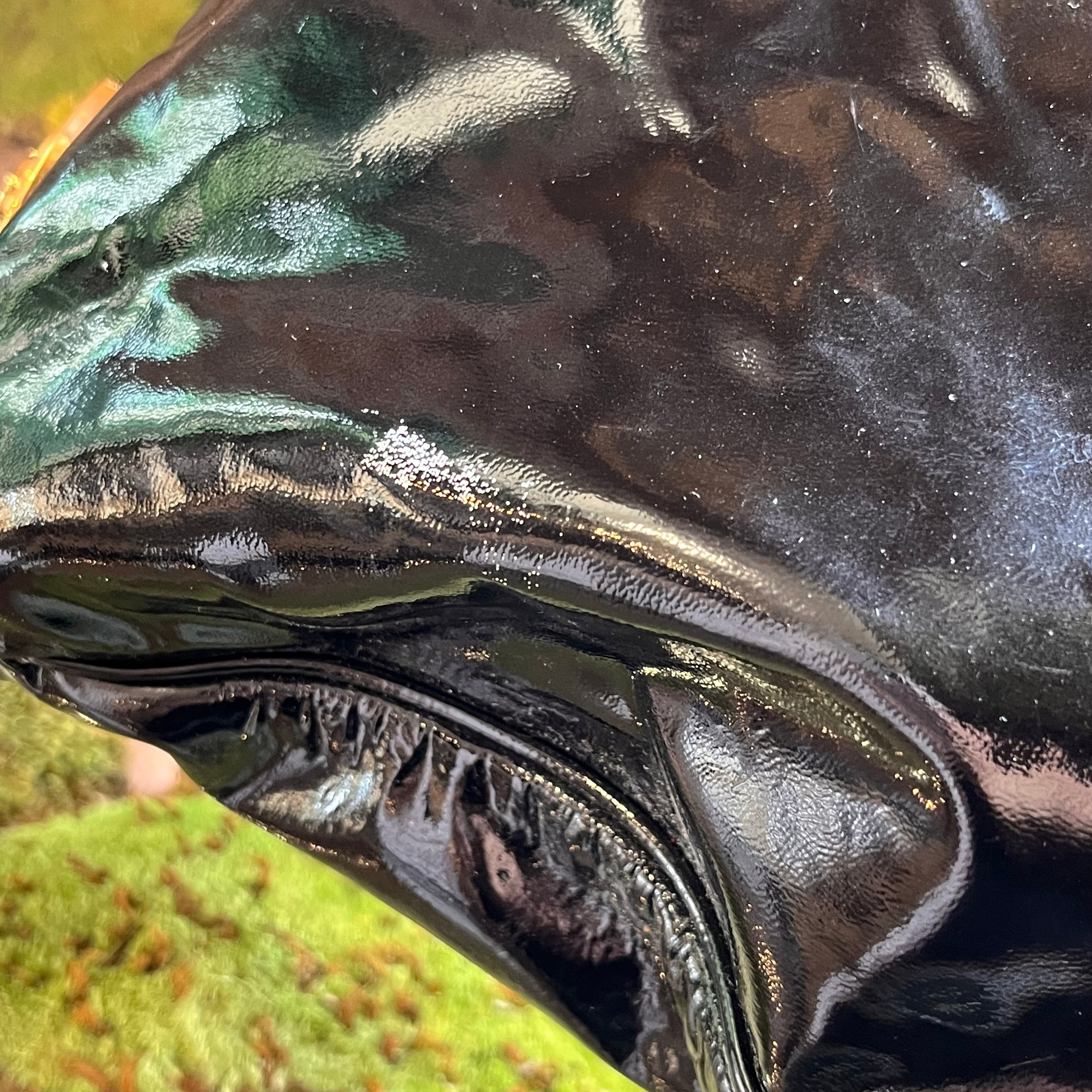 • Exterior: The patent leather is rich and shiny. There are variations in sheen, rubbing, scratches and marks. Overall it's in very good condition.