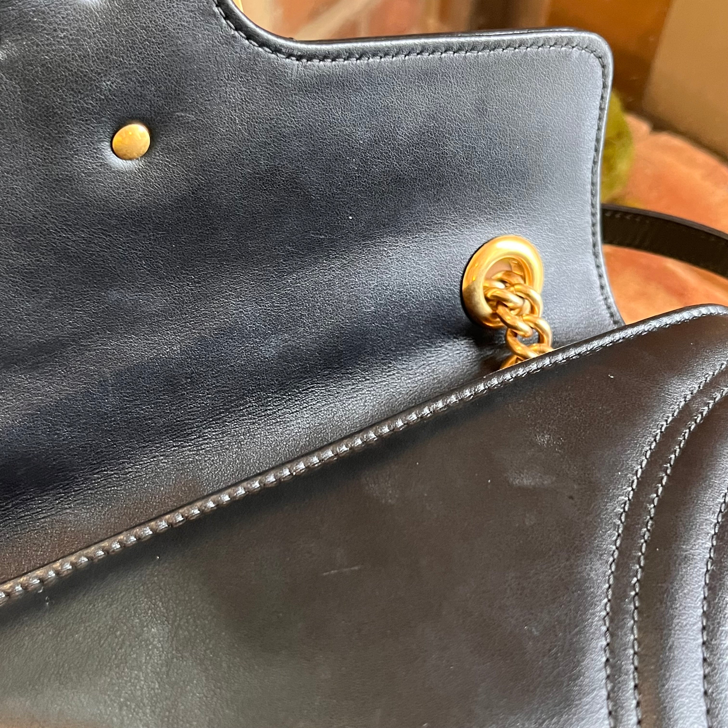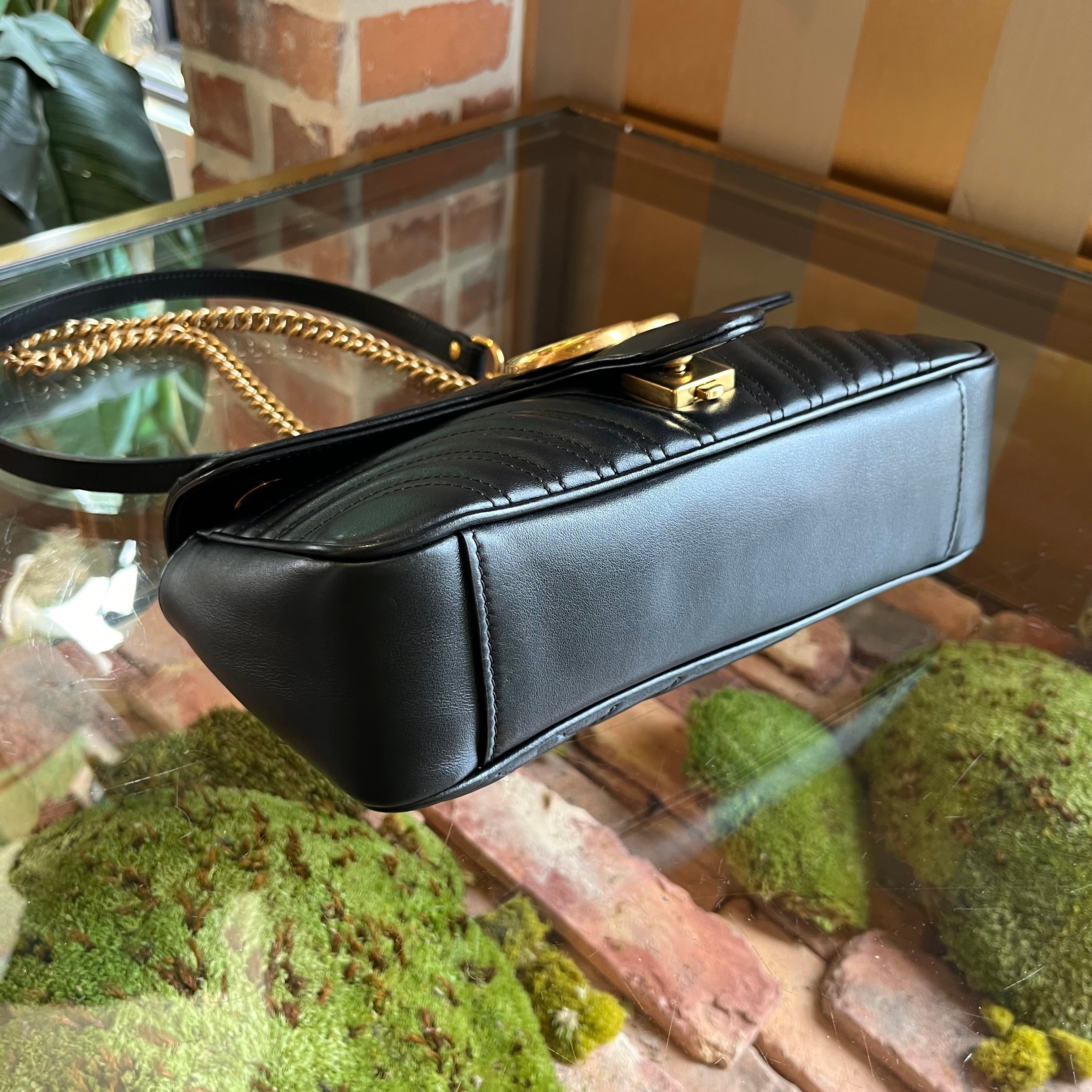 GUCCI GG Marmont Small Black Calfskin Matelassé Shoulder Bag