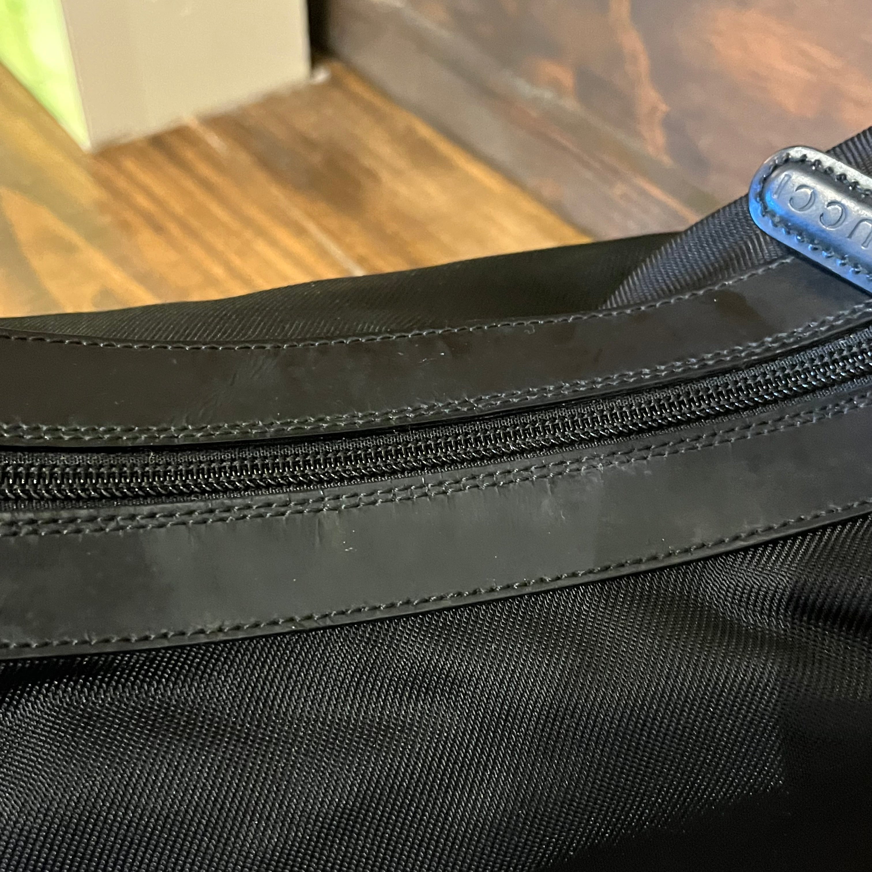 • Exterior: The nylon is vibrant and unfaded. The leather trim displays variations to the sheen with scratches, transfer wear, rubbing, creasing and cloudiness. Overall it remains in very good condition.