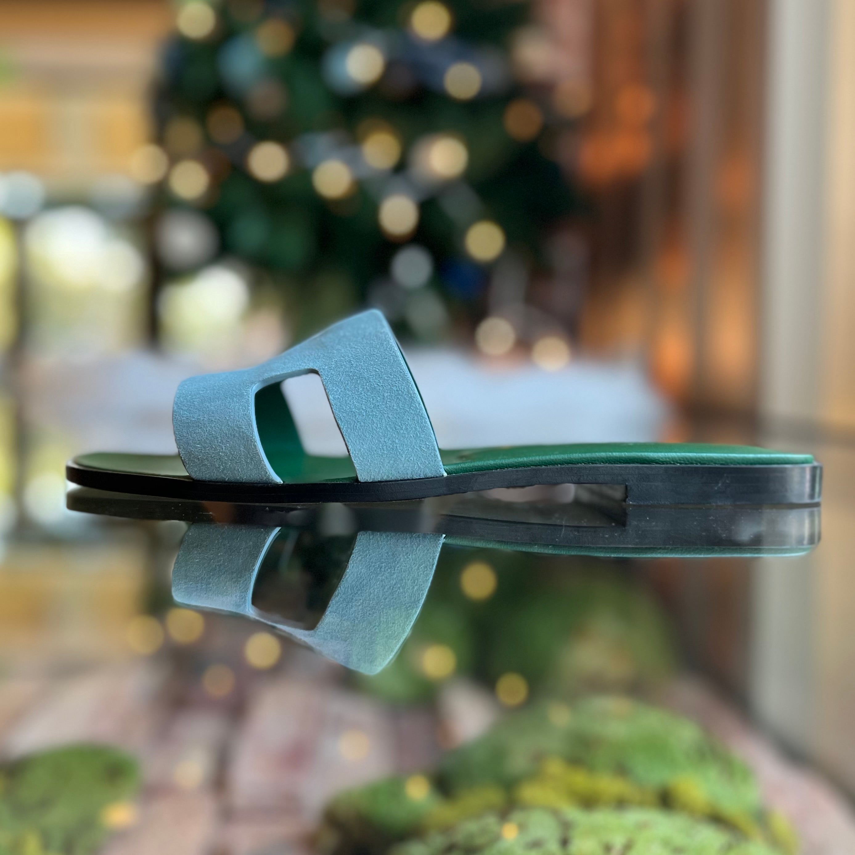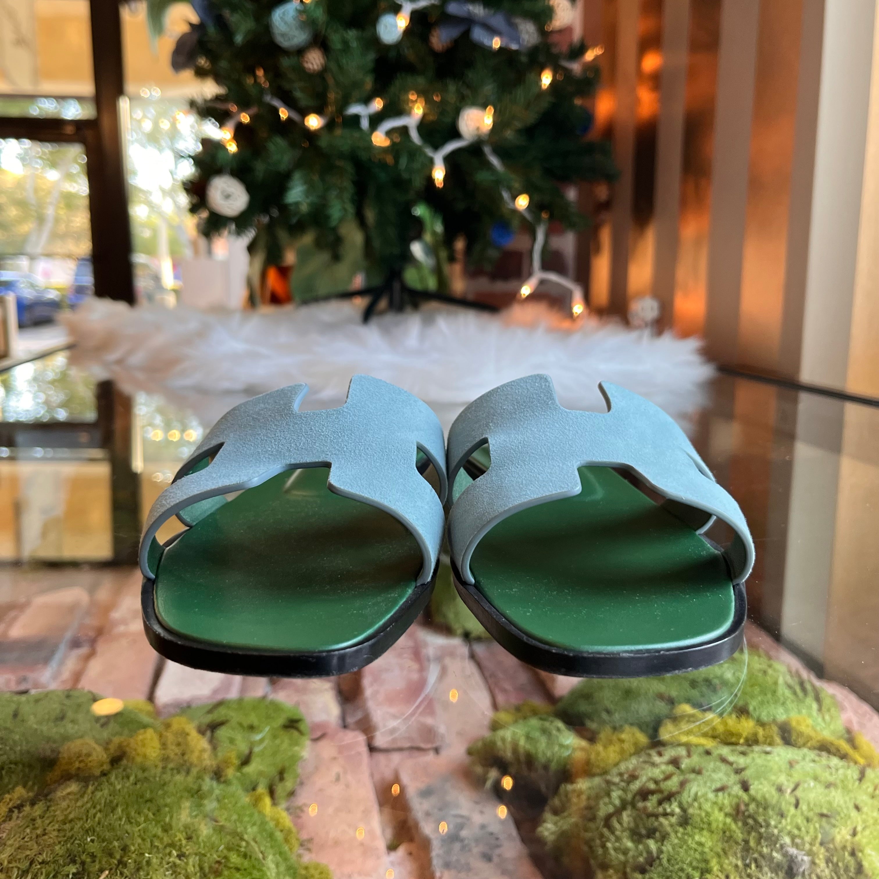 HERMES Oran Blue Suede Bicolor Bleu Minéral Sandals SZ39.5(9.5US)