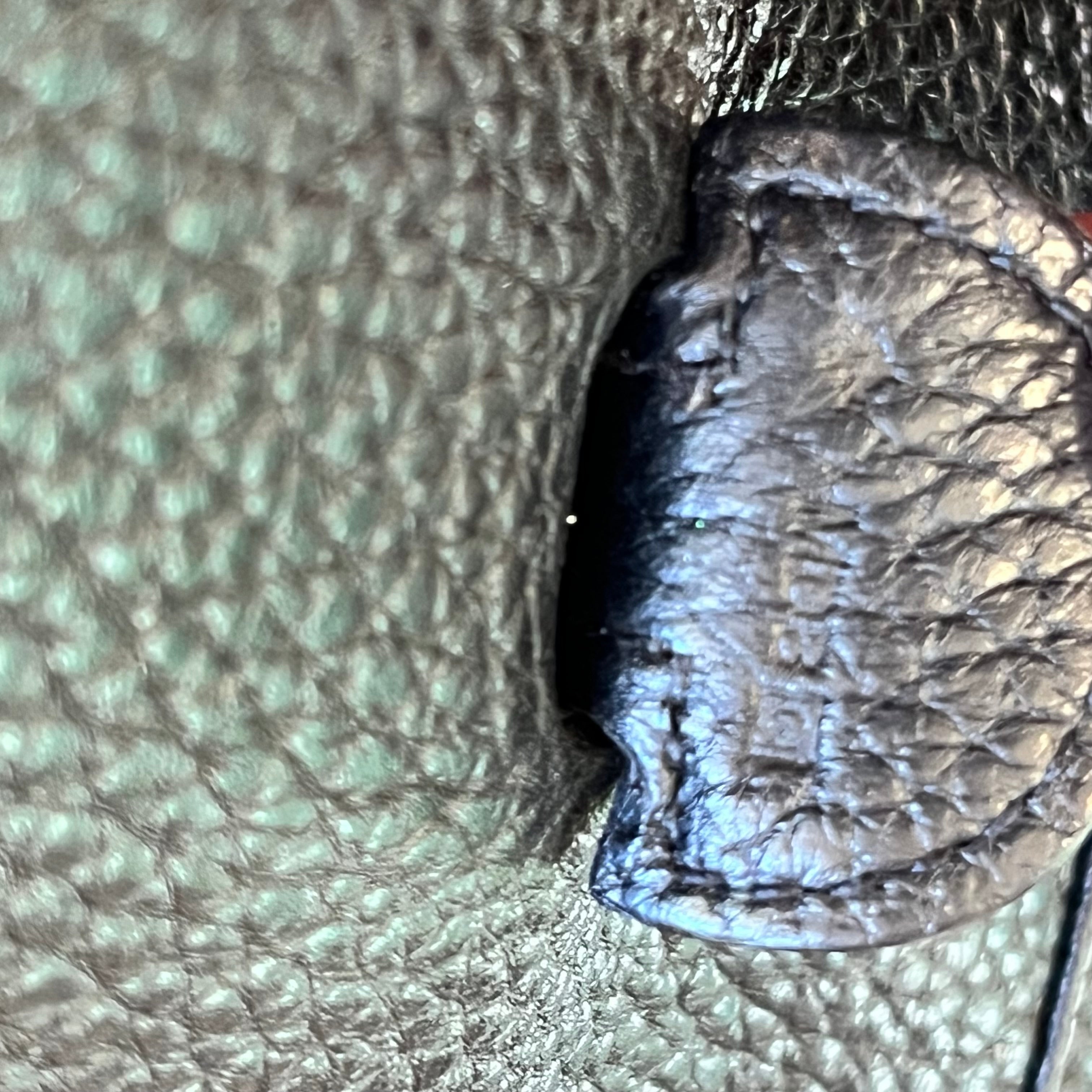 - Exterior: The leather is gorgeous and supple. There is heavy rubbing at the top corners, wear along the edges, indentations and scuffing. Overall, it's in very good condition.