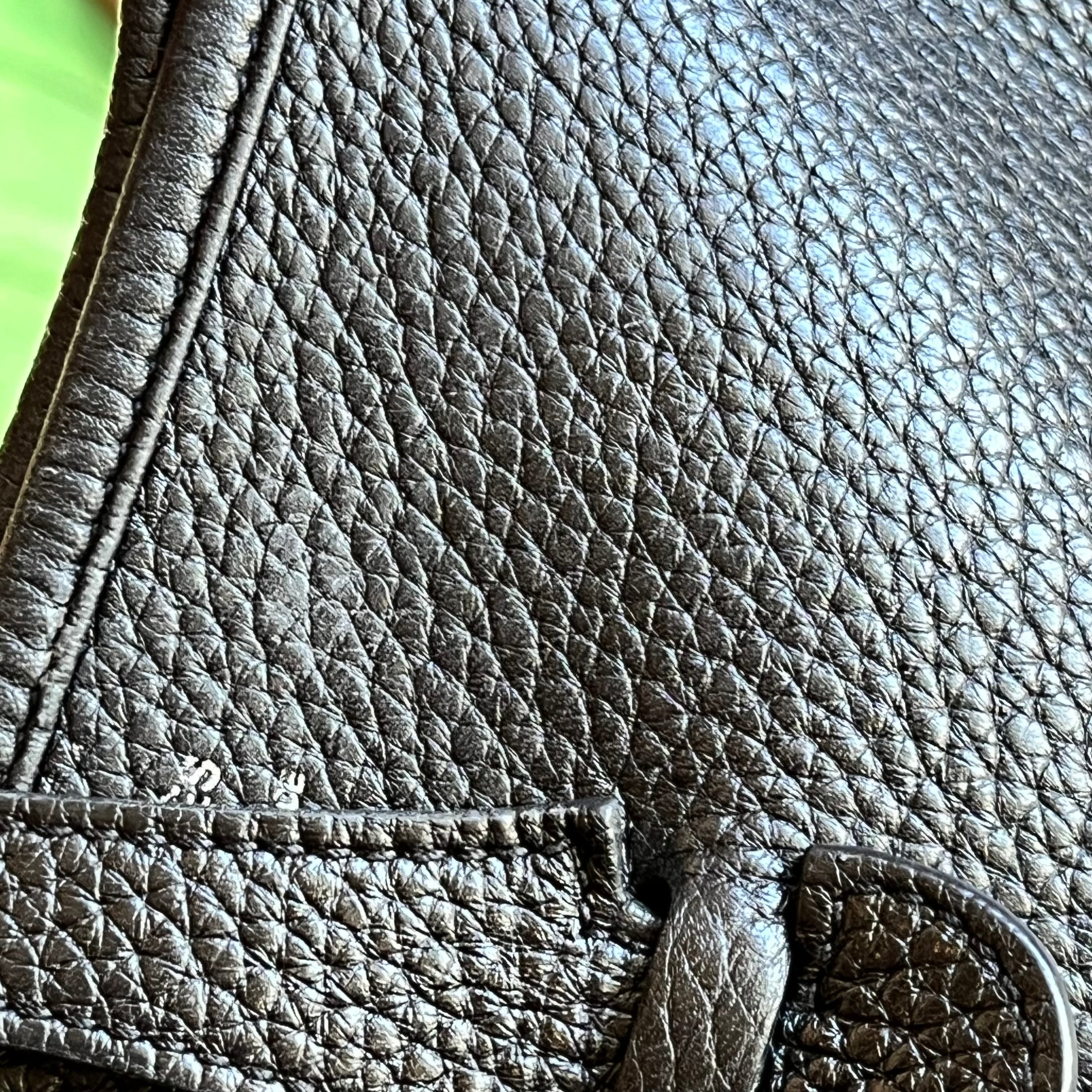 Elegantly crafted from smooth Taurillon Clemence leather, the HERMES Evelyne PM Crossbody blends refined style with practicality. Its compact design offers a chic silhouette perfect for any occasion, while the adjustable strap ensures comfortable wear throughout the day. Signature perforated “H” detailing adds a subtle yet distinctive hallmark of craftsmanship. This timeless accessory complements a sophisticated wardrobe with effortless grace. B+ Very Good Condition