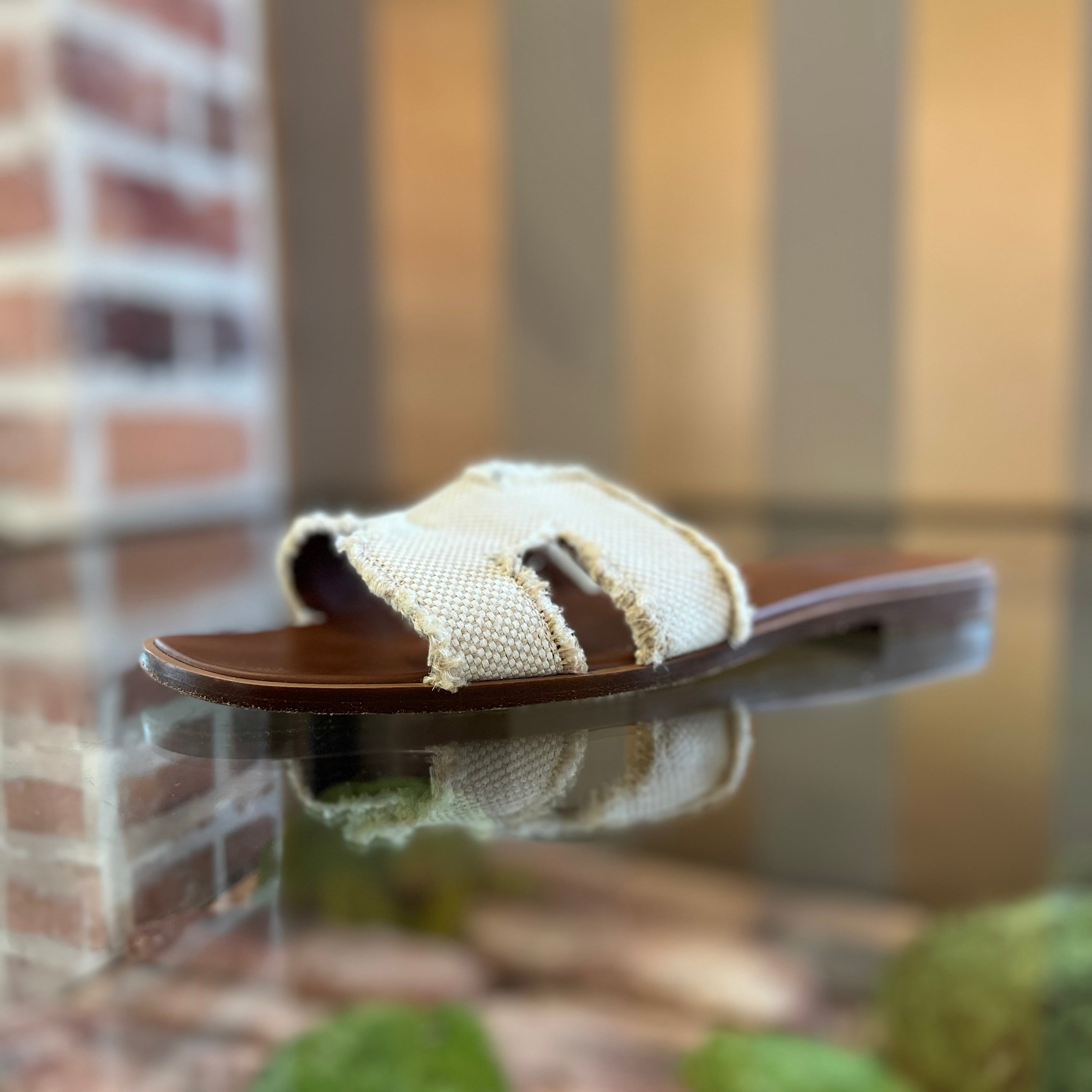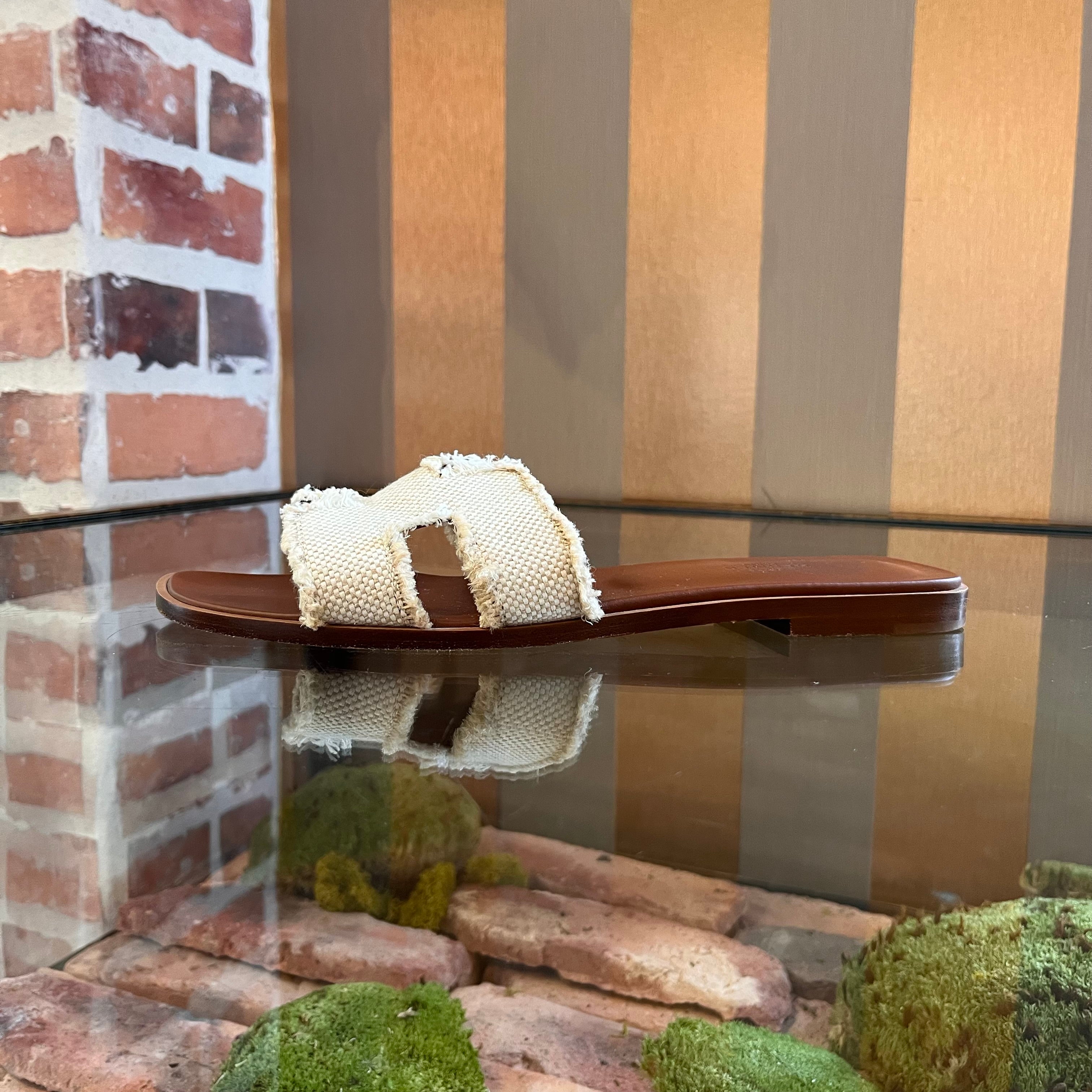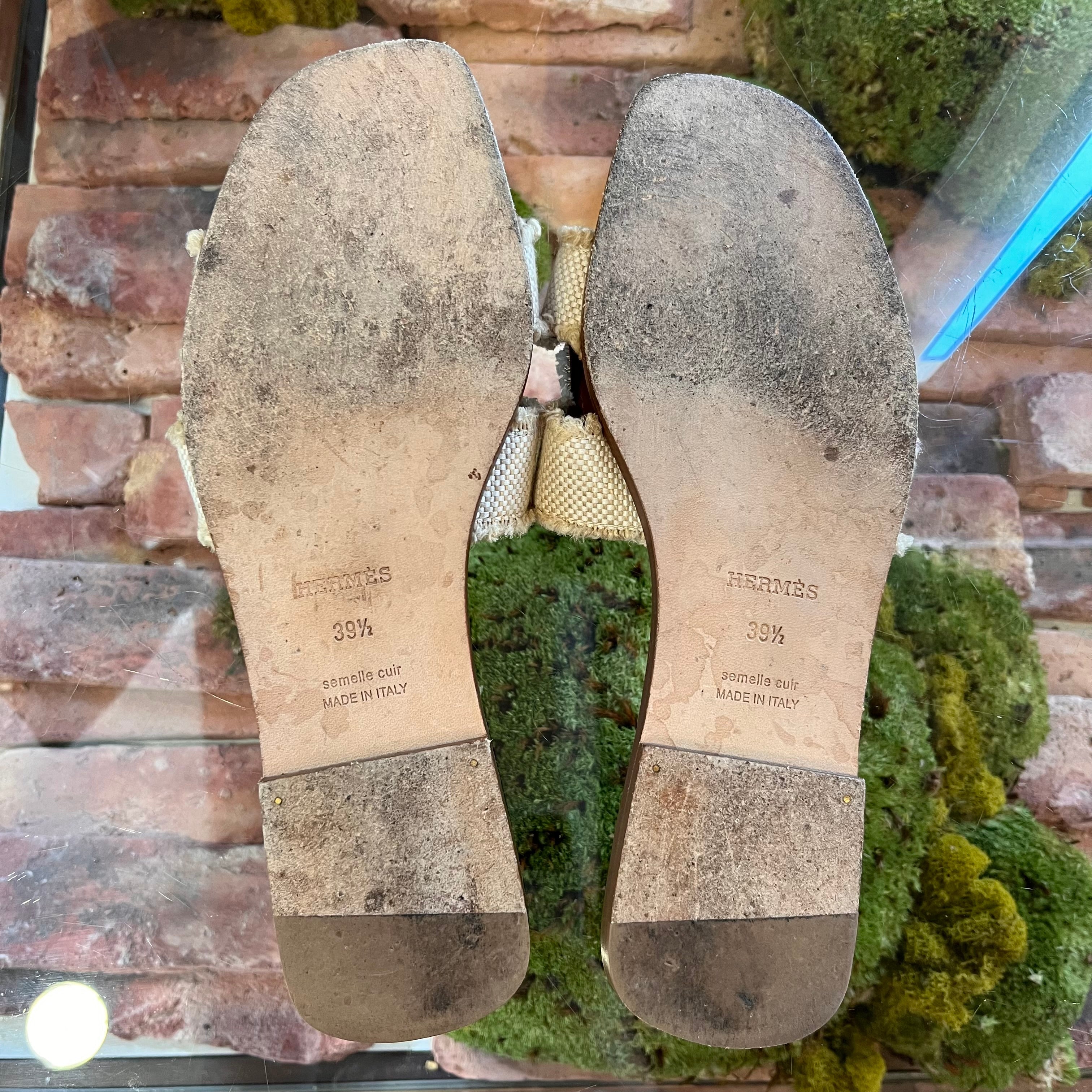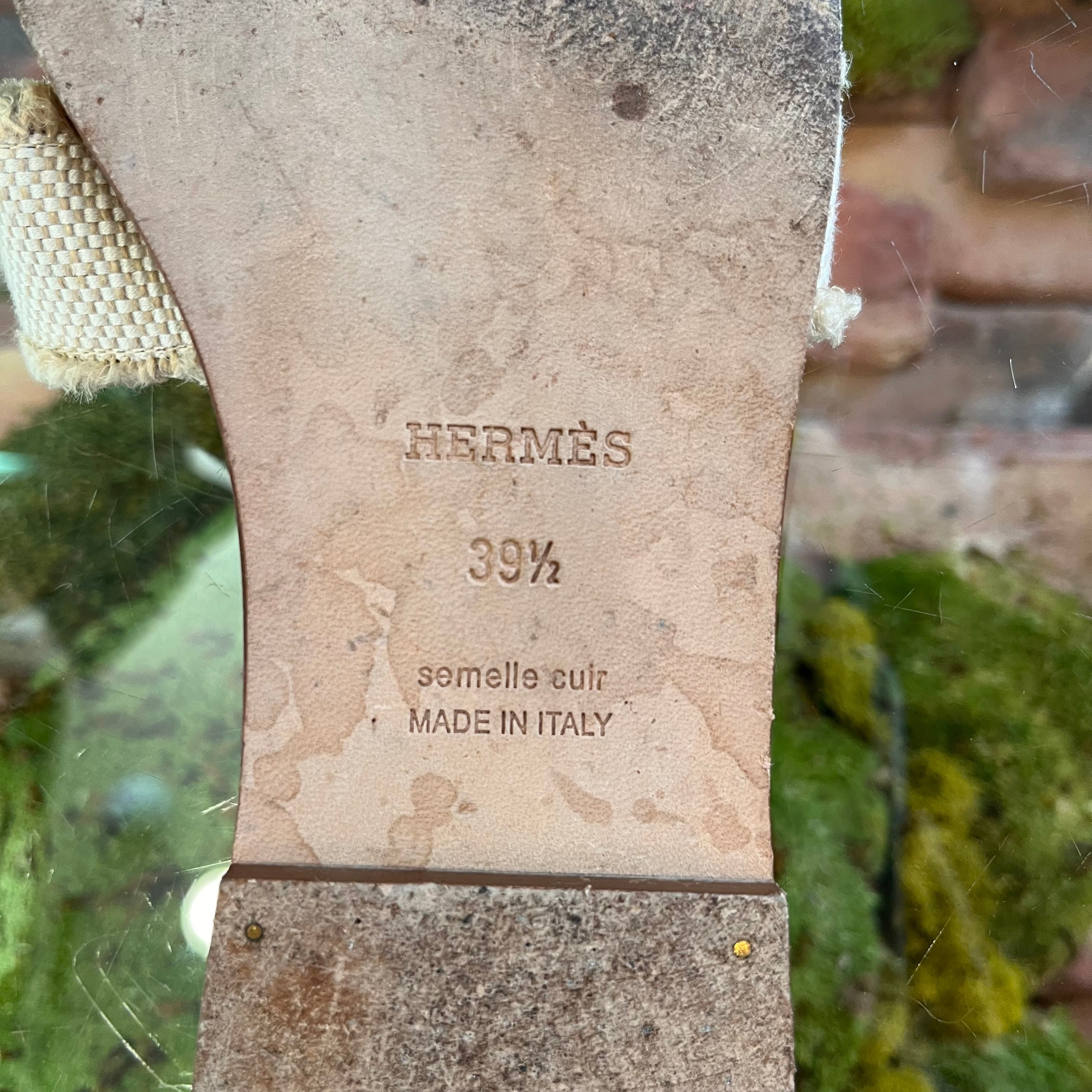 HERMES Beige Linen Canvas Oran Sandals SZ 39.5 (US 9.5)