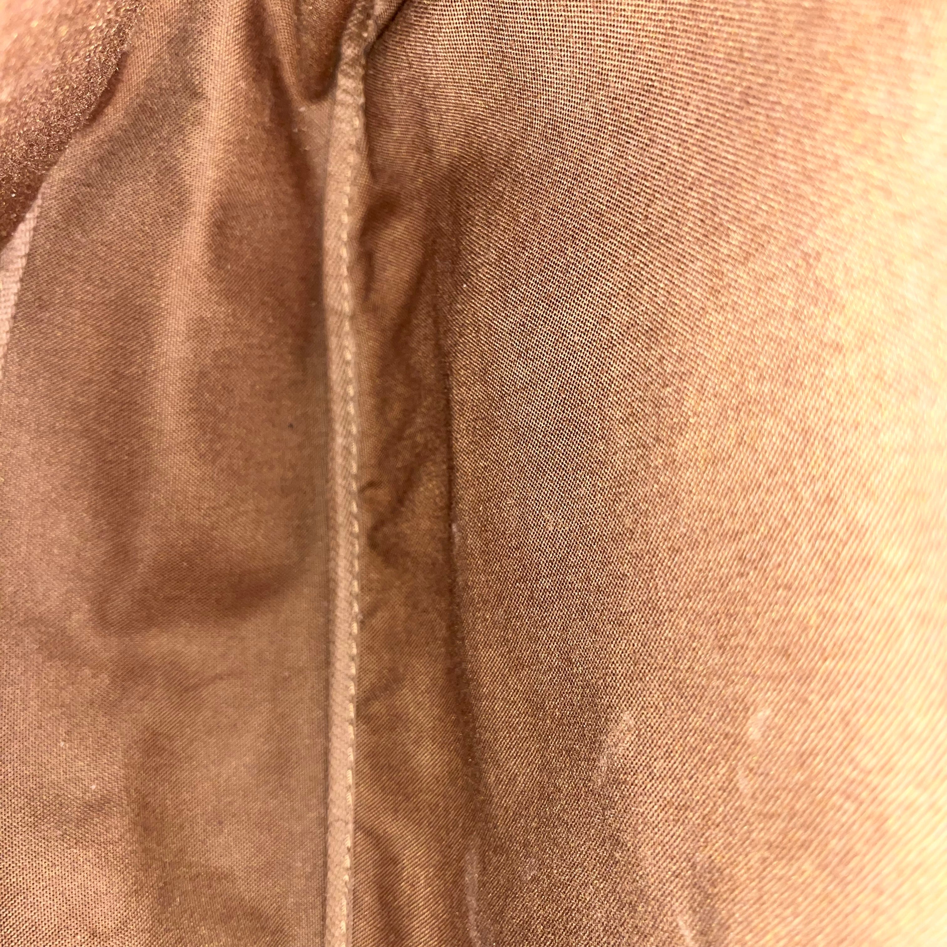 - Exterior: The coated canvas is vibrant and unfaded displaying rubbing, creasing, white scuffs with scratches. Overall it's in very good condition.