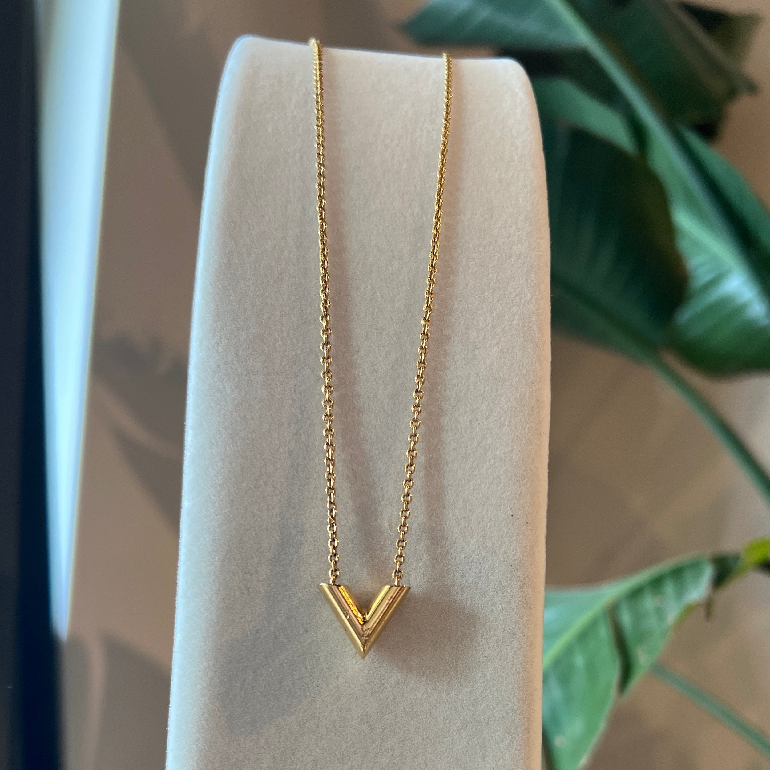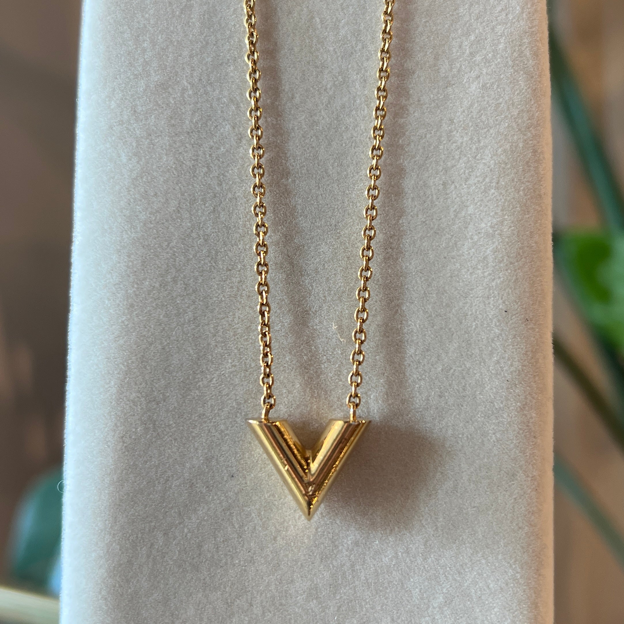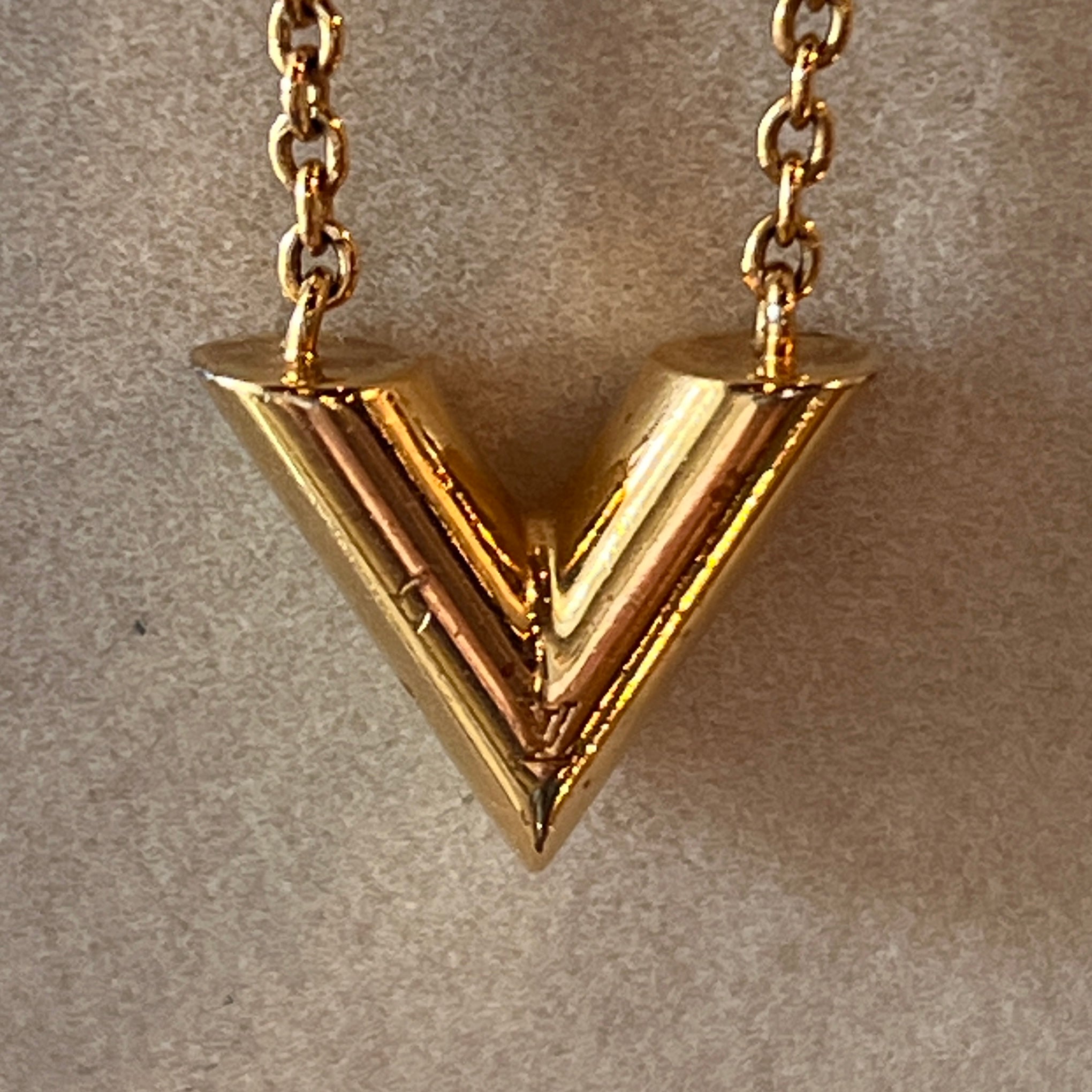 - Design: Minimalist “V” pendant symbolizing Vuitton and victory