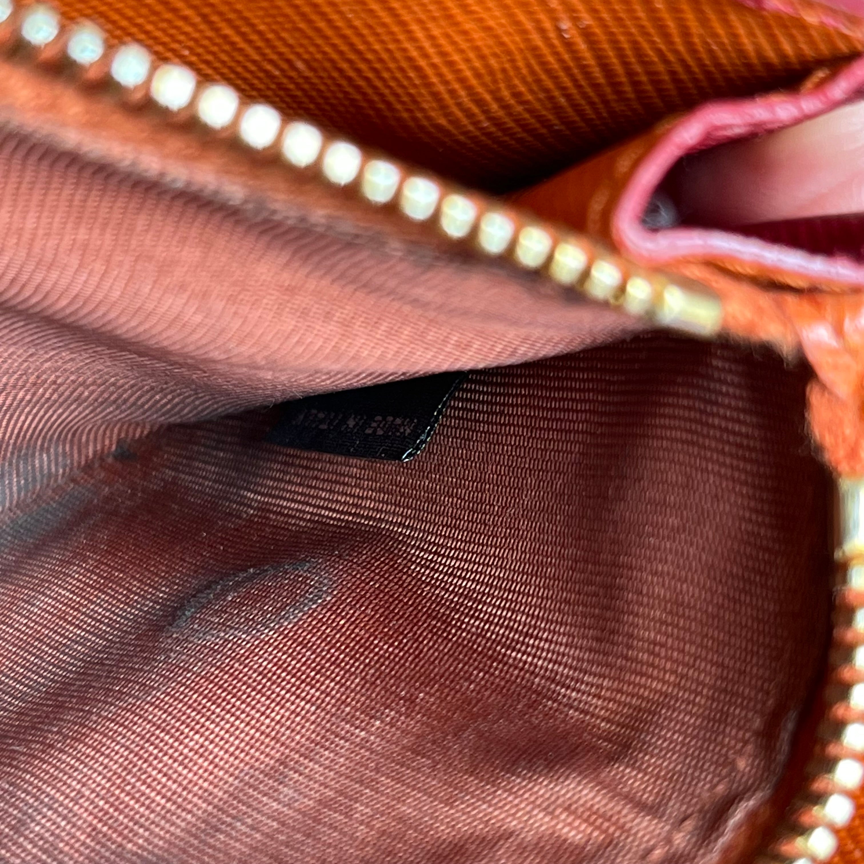 • Exterior: The leather is rich and supple with rubbing, fading, scratches, indentations and gentle hardware marks.