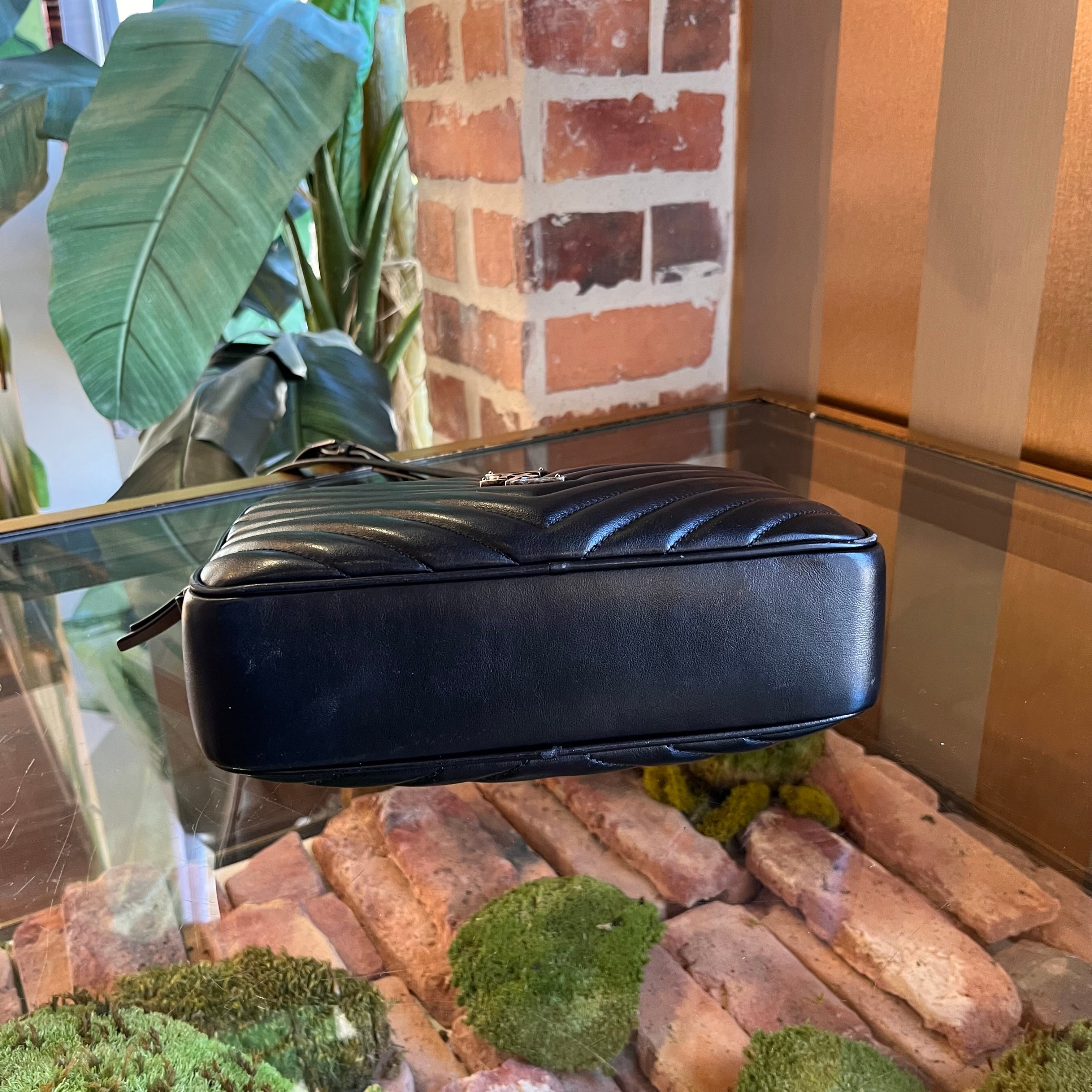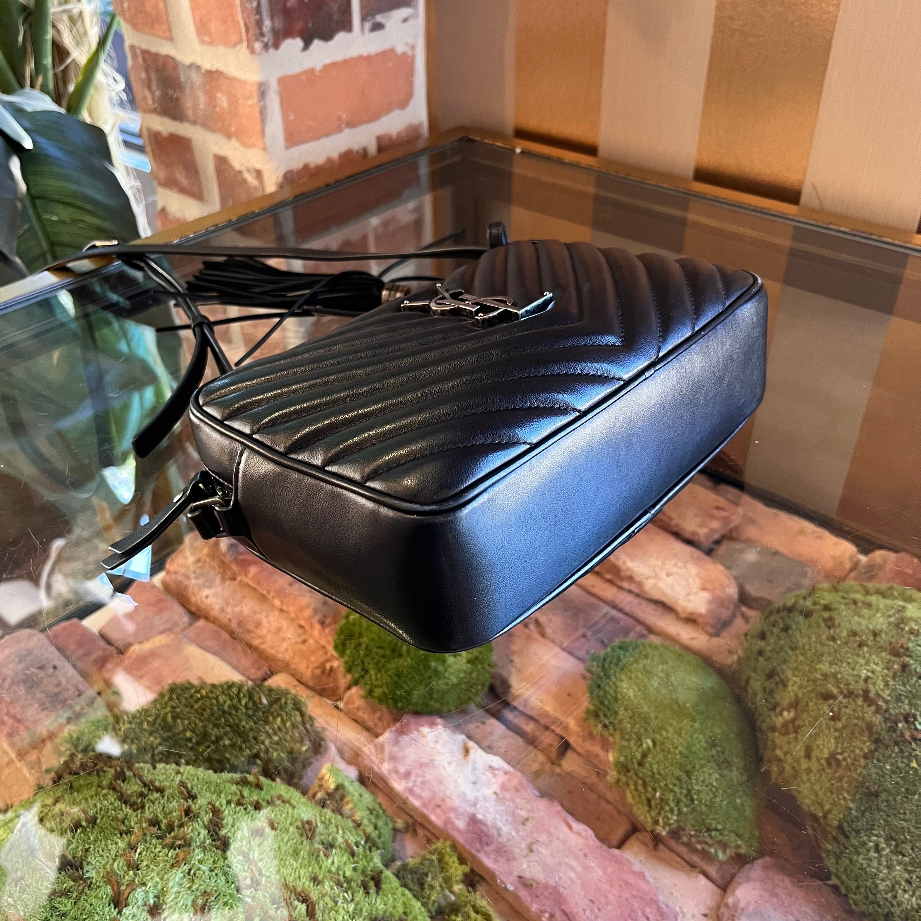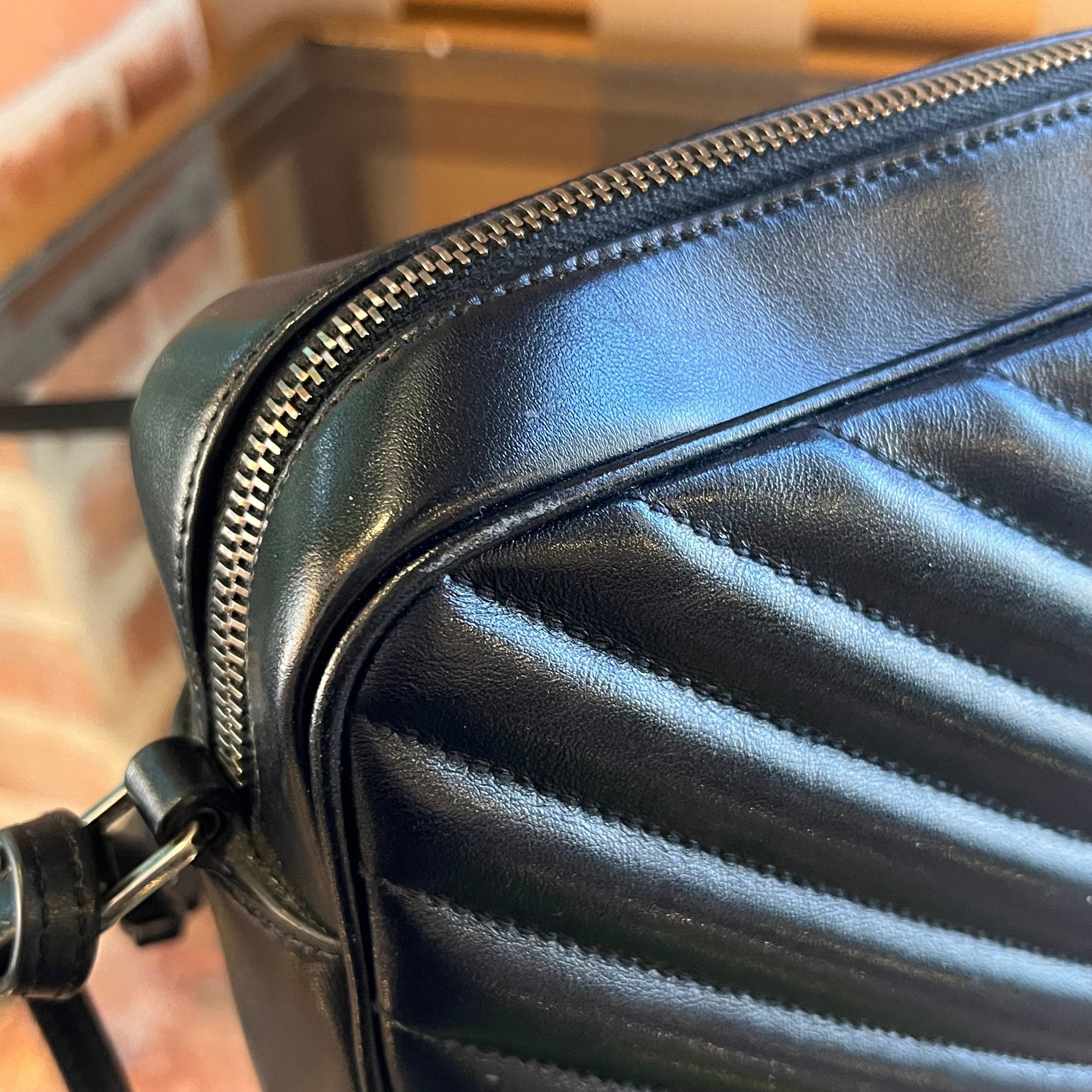 SAINT LAURENT Lou Camera Black Calfskin Matelassé Monogram Crossbody Bag