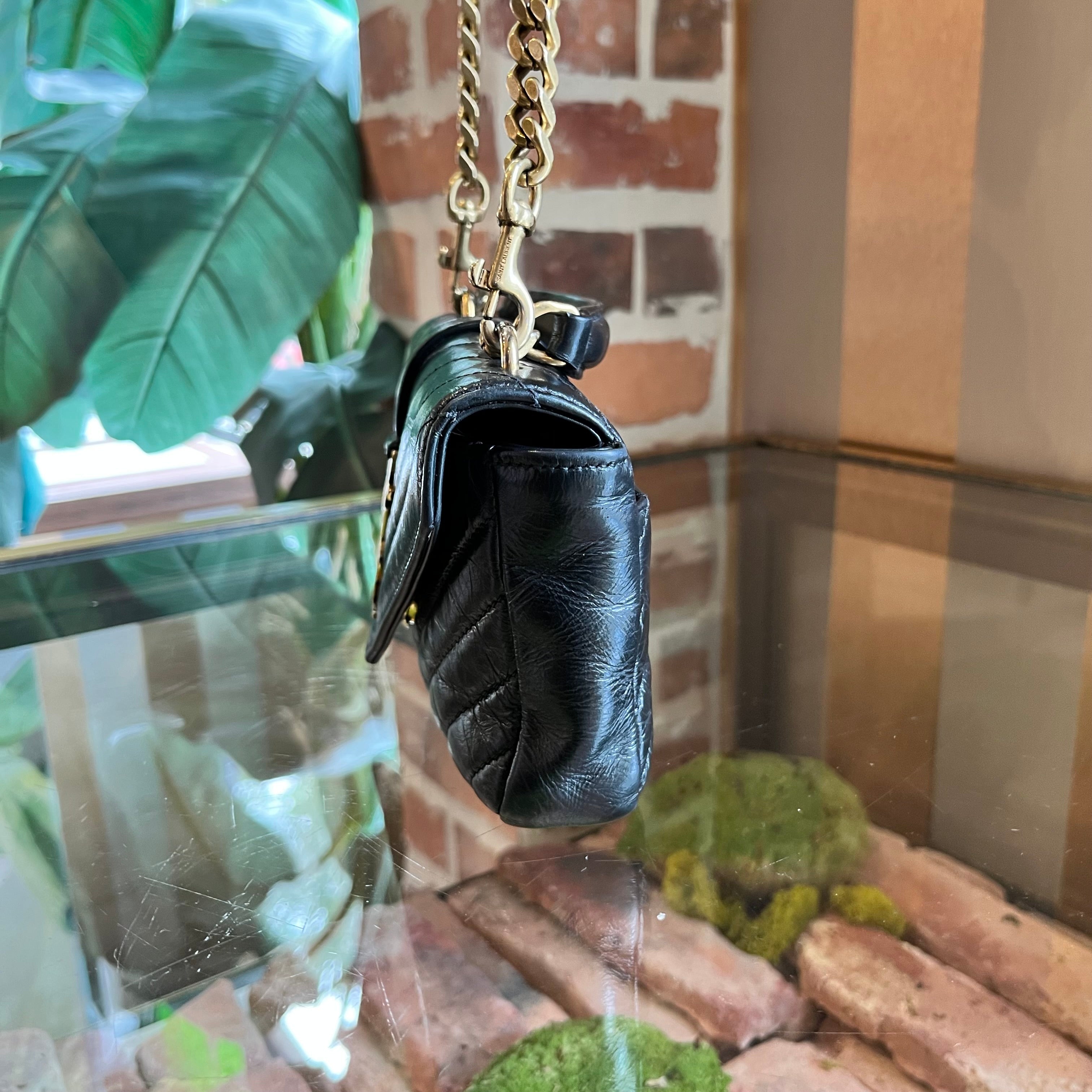 SAINT LAURENT Mini College Shiny Crackled Leather Shoulder Bag