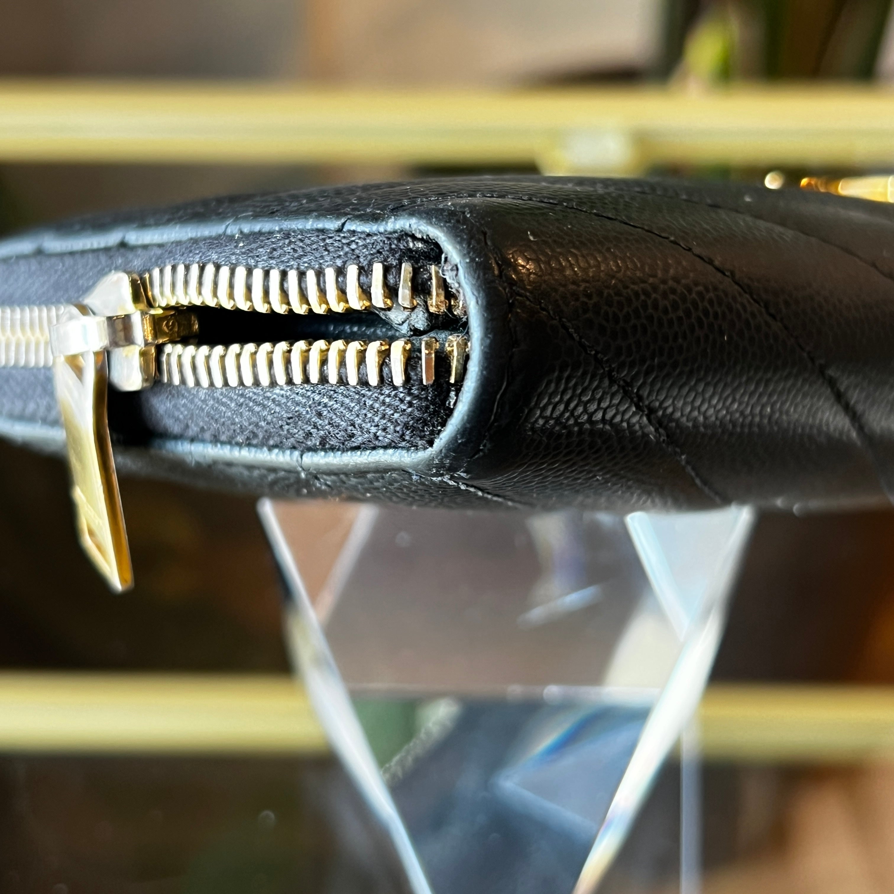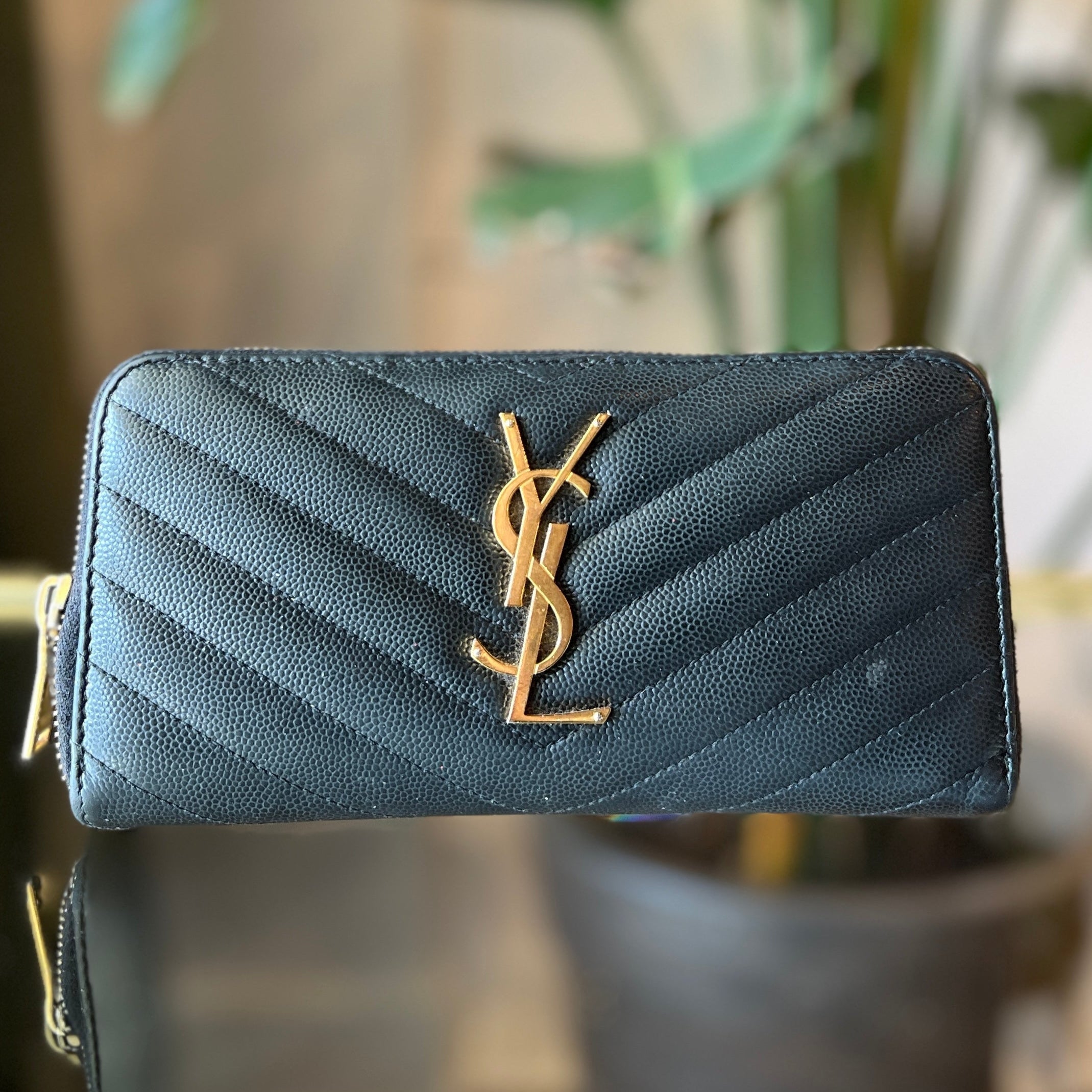 Indulge in luxury and elevate your style with the SAINT LAURENT Monogram Quilted Long Wallet. The iconic monogram design and immaculate quilted stitching exude exclusivity and sophistication. With ample storage and a timeless design, this wallet effortlessly combines fashion and functionality.
