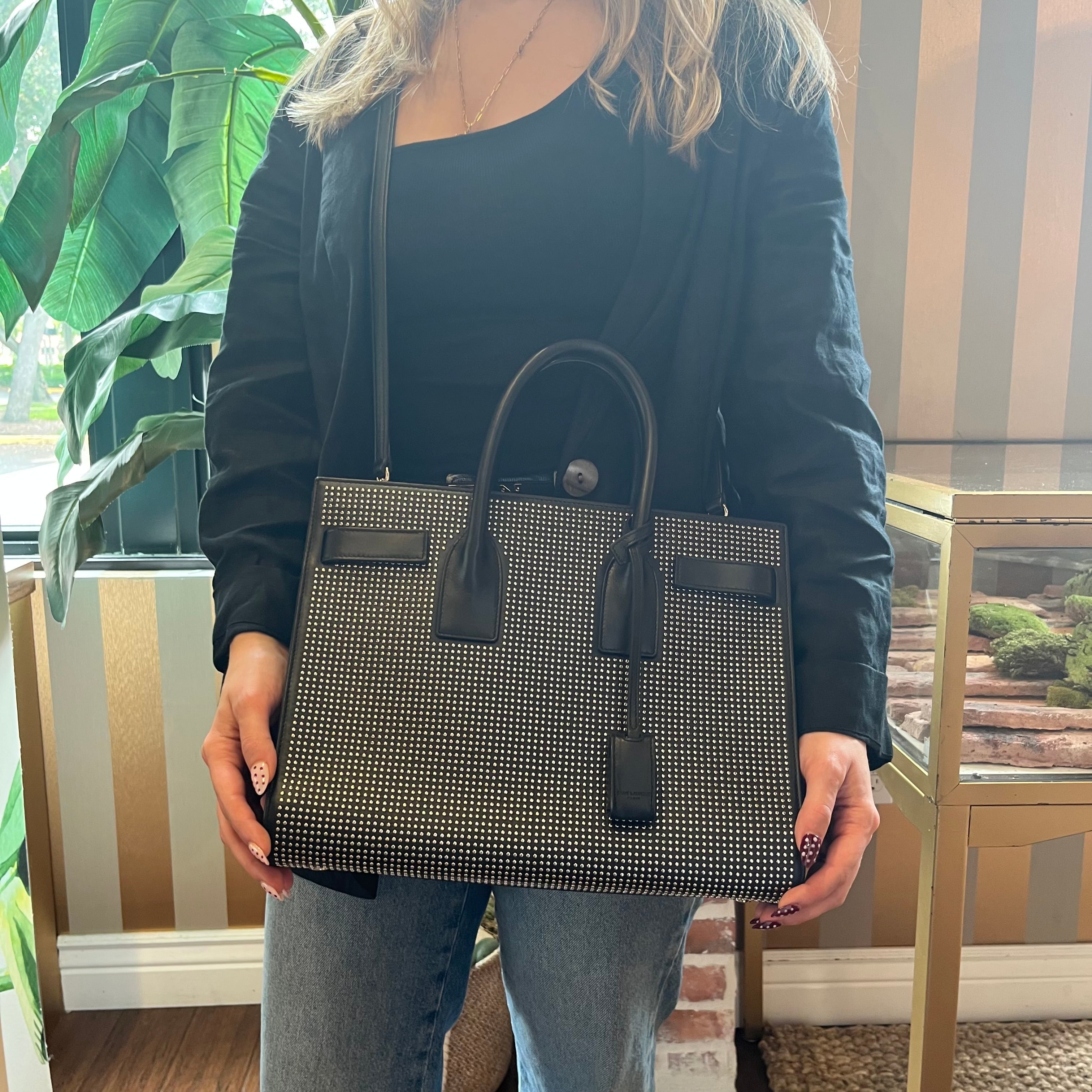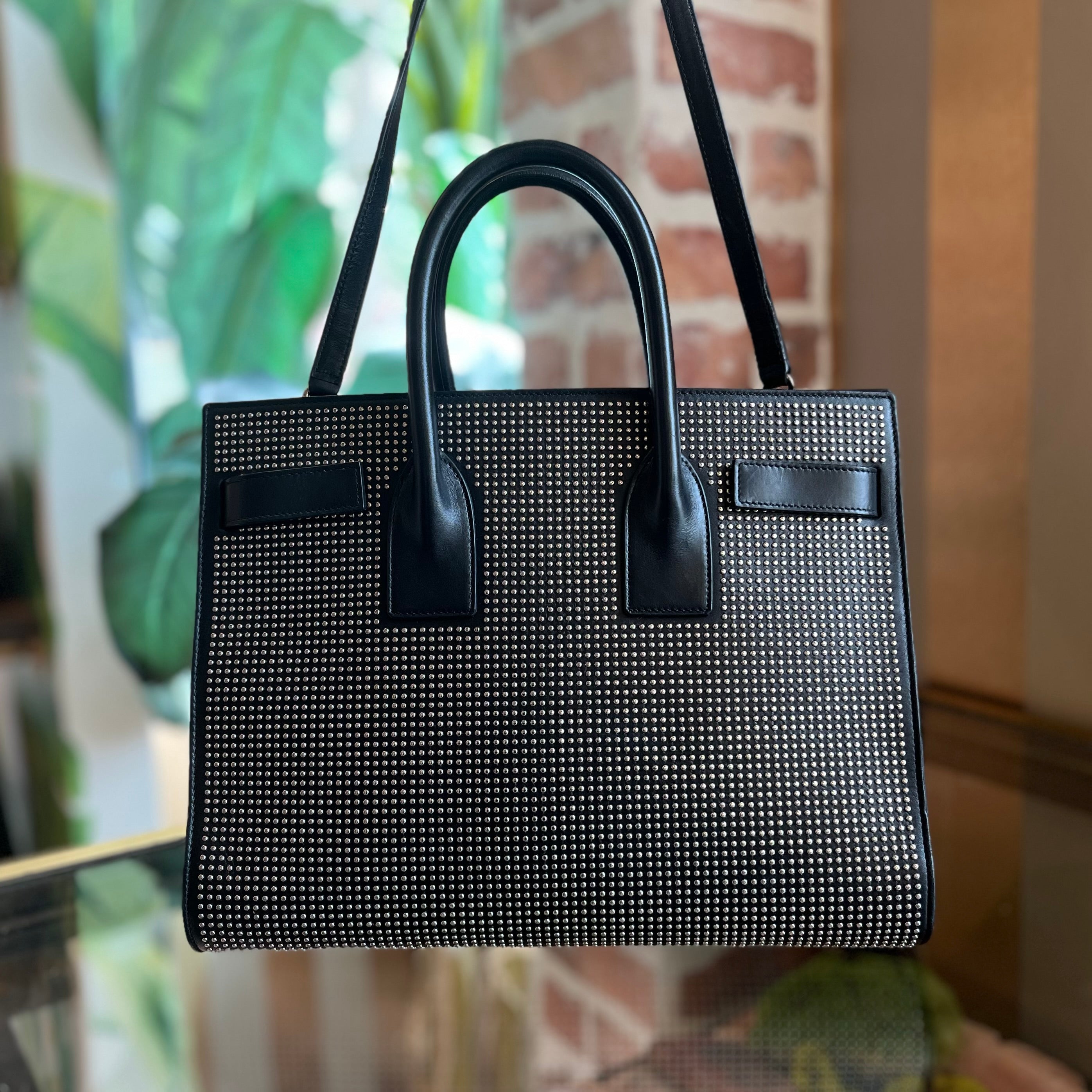 SAINT LAURENT Sac de Jour Small Black Studded Leather Tote Bag