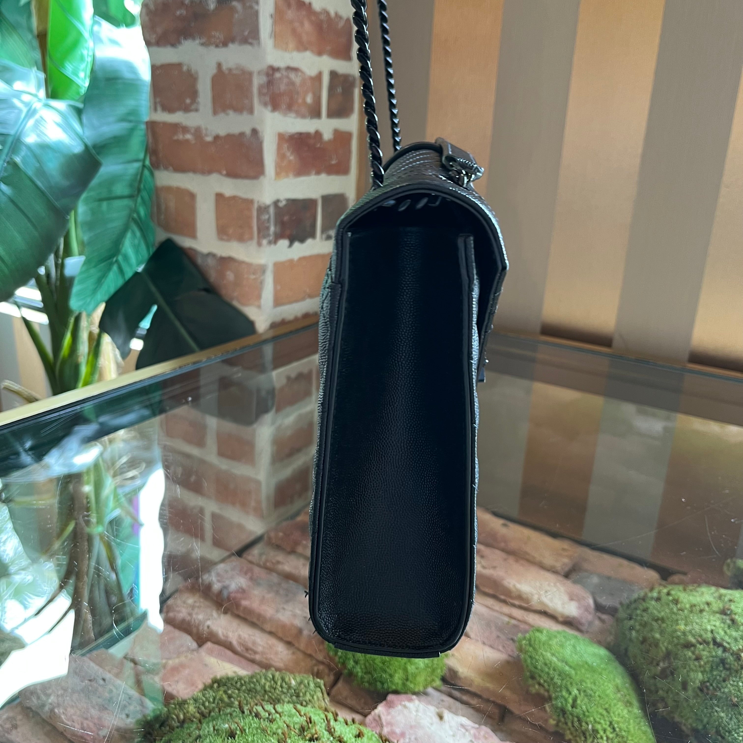 SAINT LAURENT Large Black On Black Triquilt Shoulder Bag