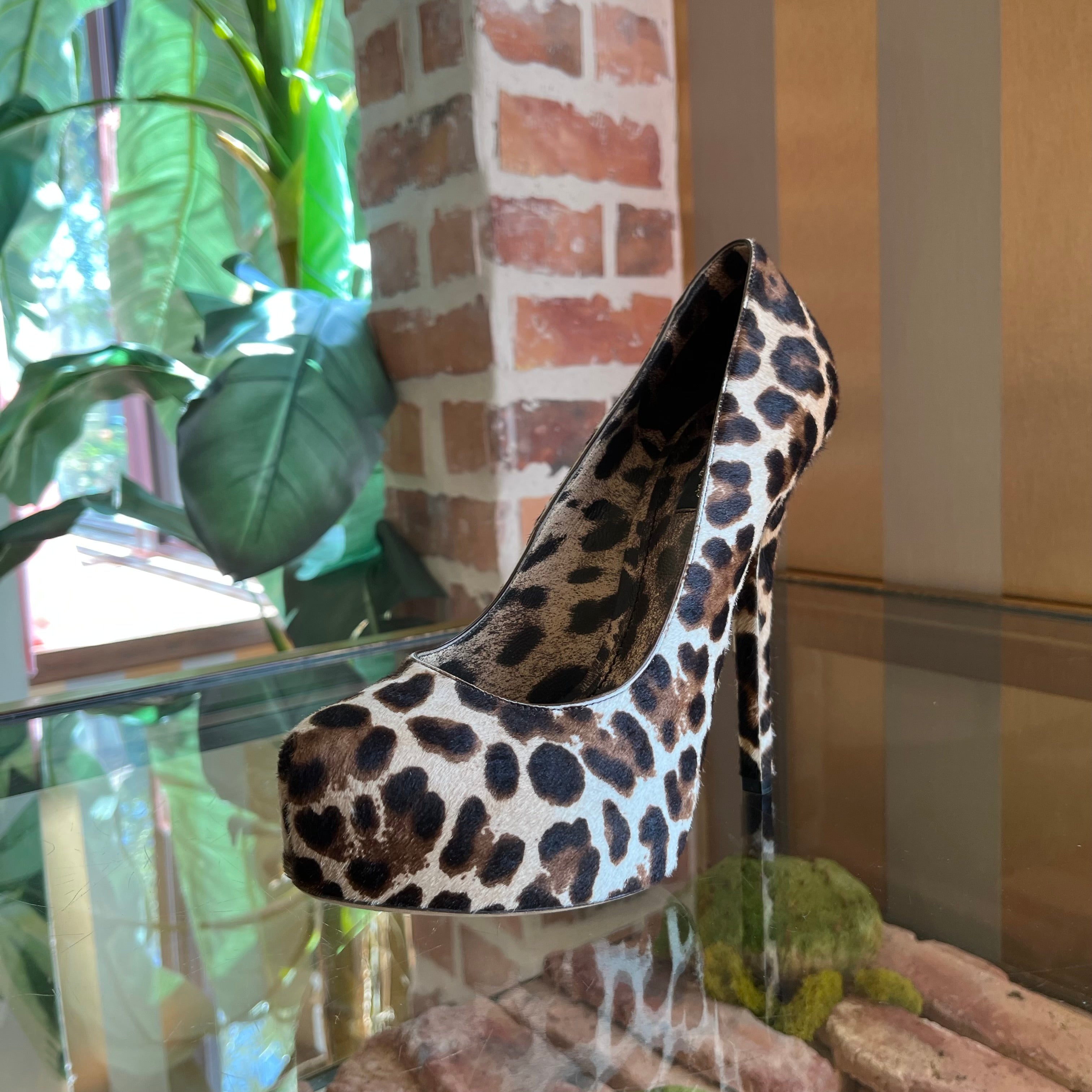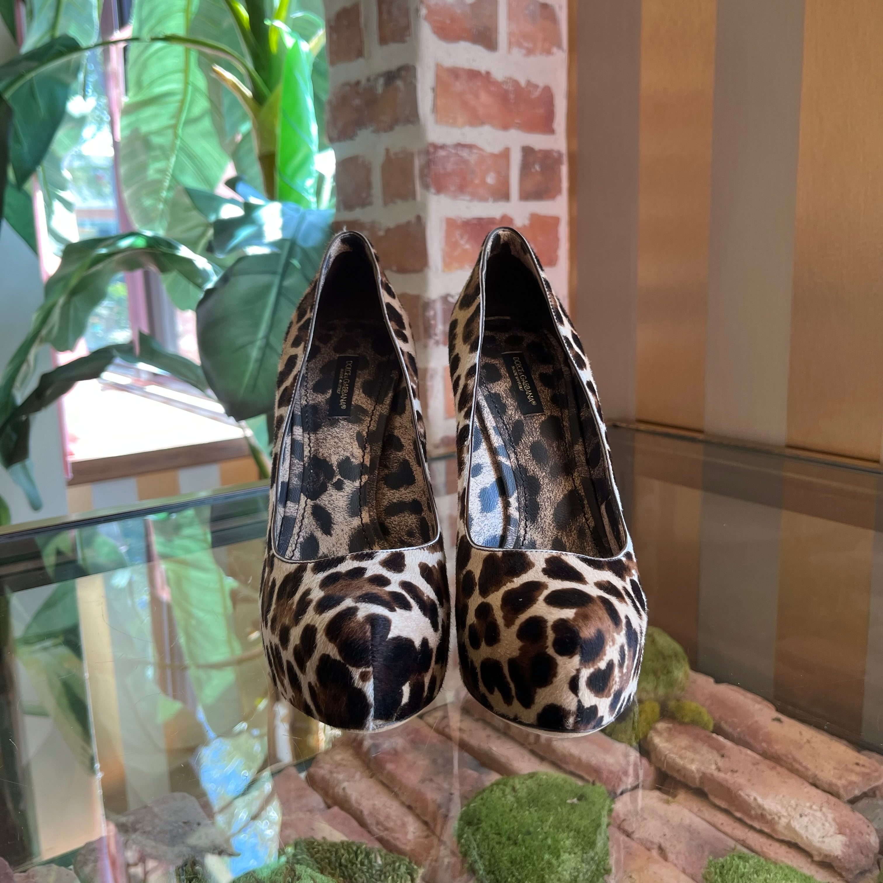 DOLCE&GABBANA Leopard Pony Hair Platform Pumps SZ38.5(8.5US) TS3921