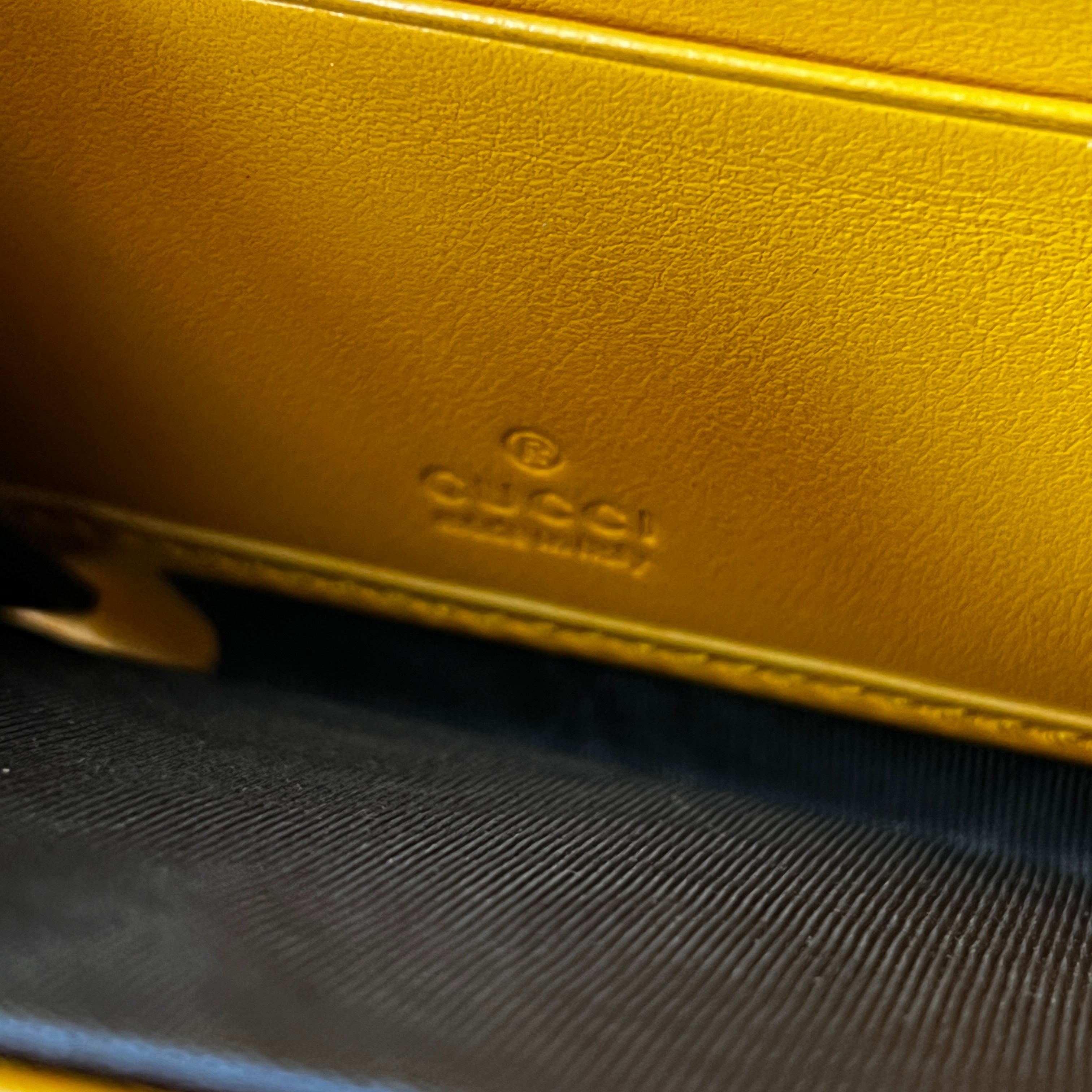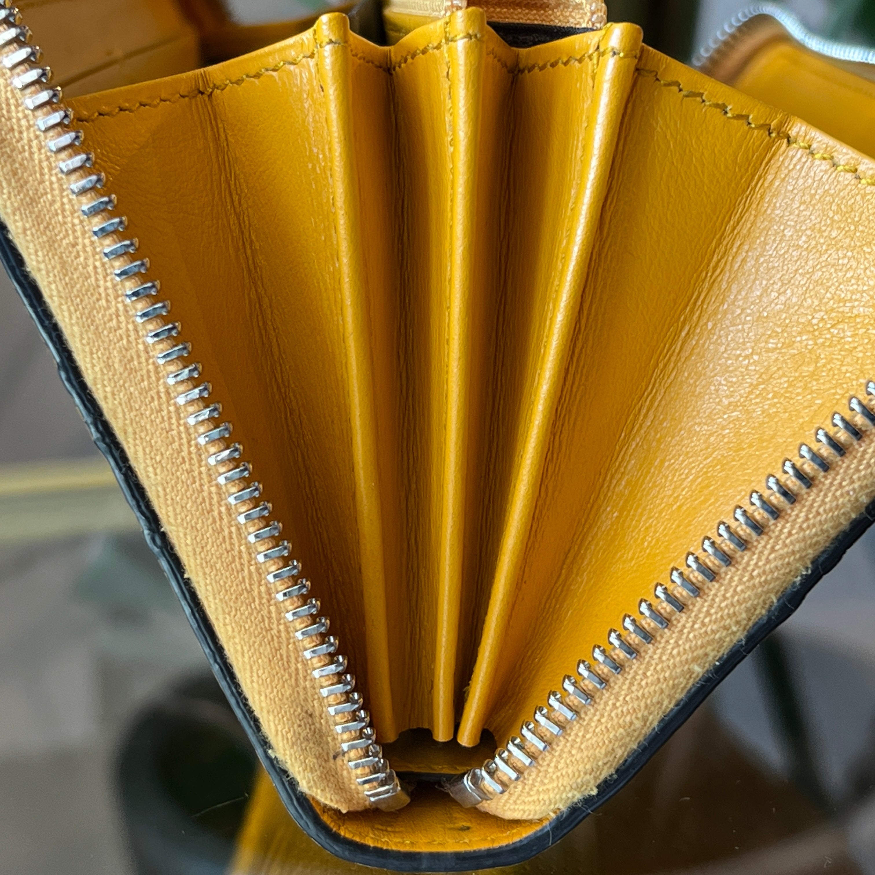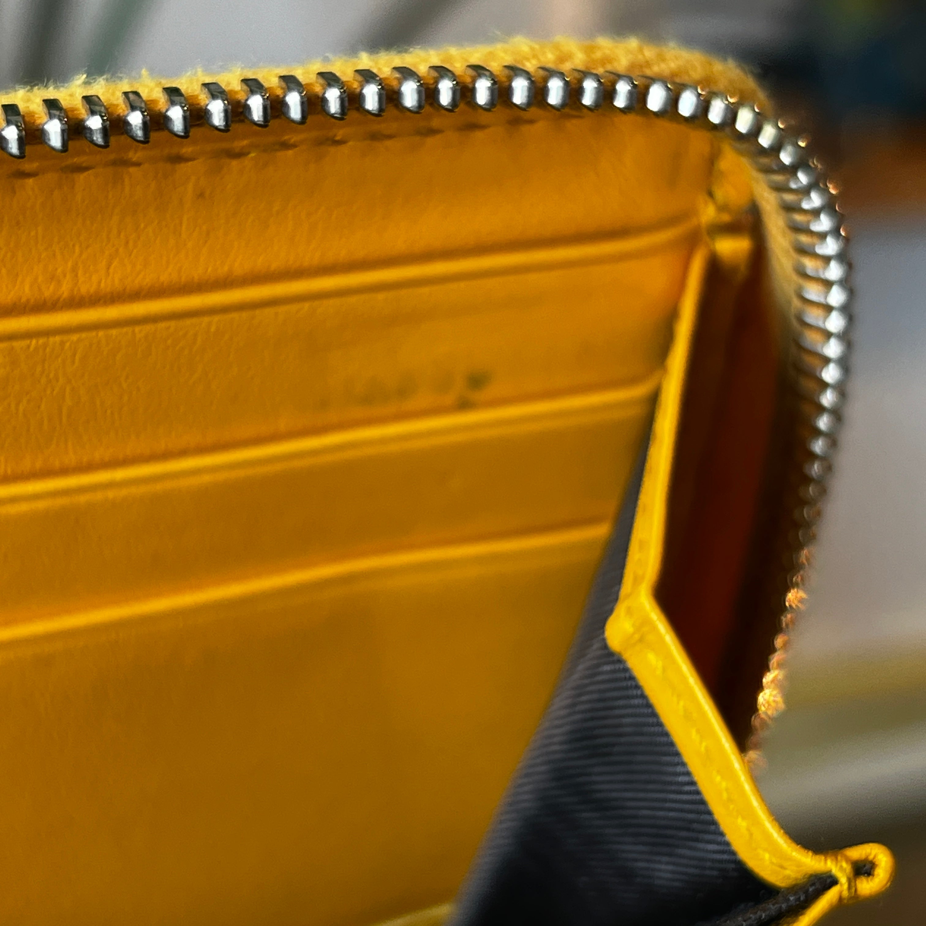 Indulge in luxury with the GUCCI GG Yellow Embossed Leather Zip Around Wallet. Made with the finest leather and adorned with the iconic GG logo, this wallet exudes sophistication and exclusivity. Its zip around design ensures your belongings are secure while adding a touch of glamour to your everyday essentials. Elevate your style with this must-have accessory. Very good condition.