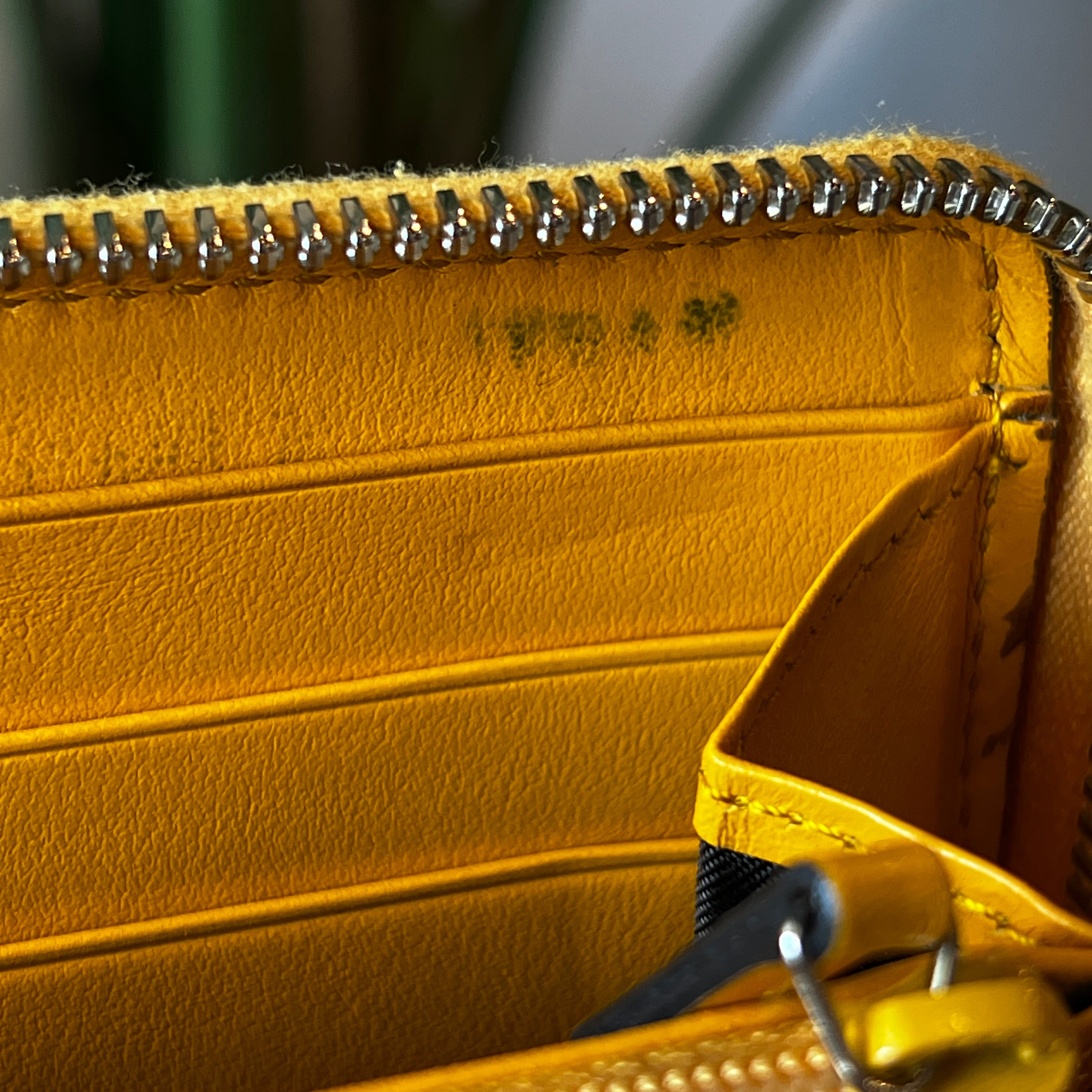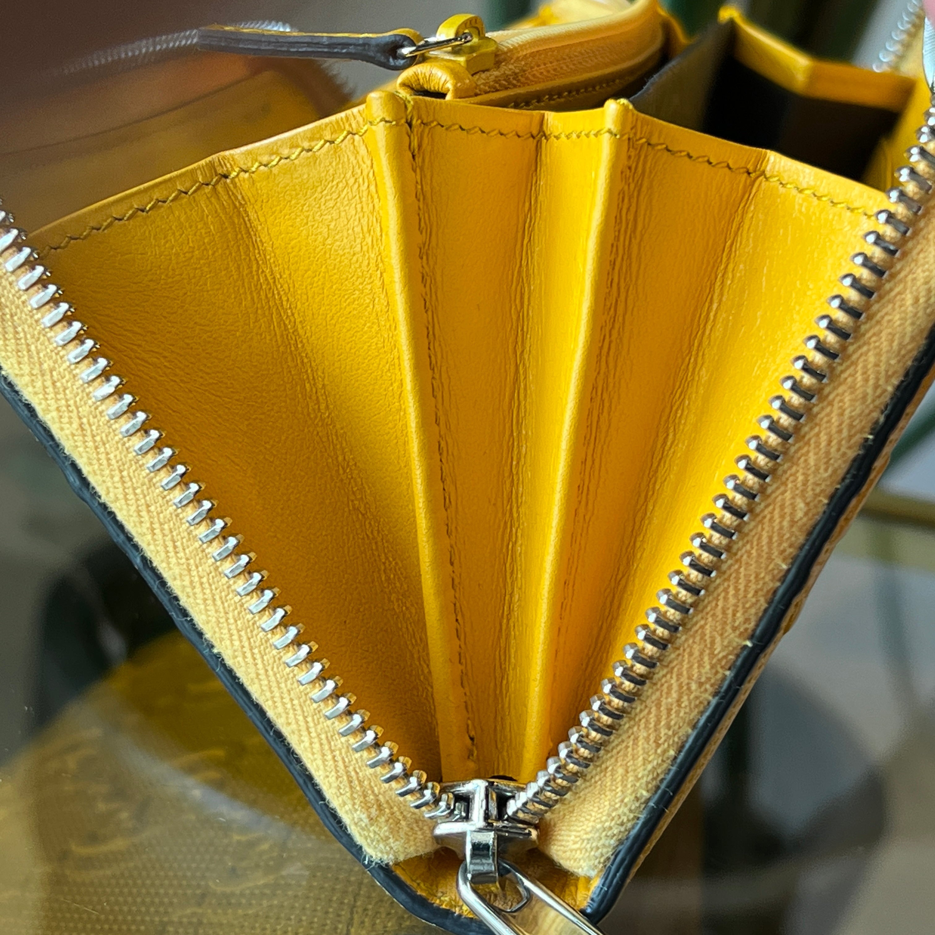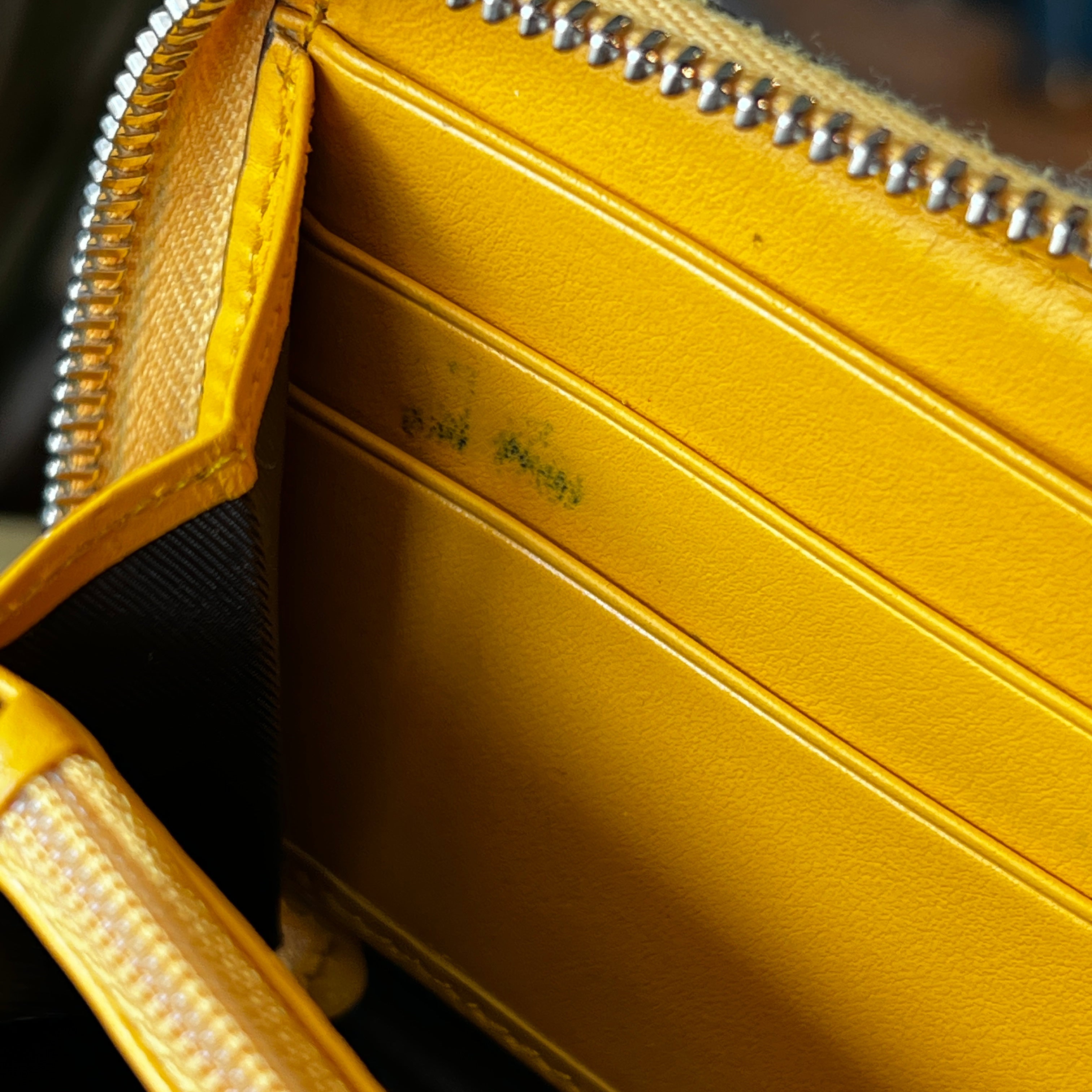 Indulge in luxury with the GUCCI GG Yellow Embossed Leather Zip Around Wallet. Made with the finest leather and adorned with the iconic GG logo, this wallet exudes sophistication and exclusivity. Its zip around design ensures your belongings are secure while adding a touch of glamour to your everyday essentials. Elevate your style with this must-have accessory. Very good condition.