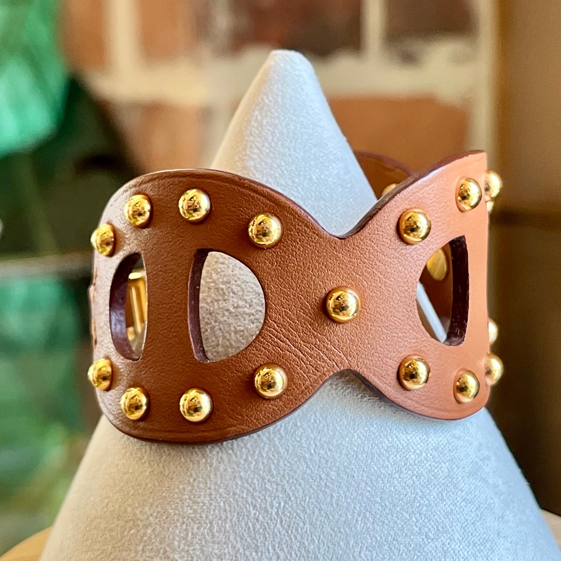 A masterclass in artisanal whimsy, this bracelet reimagines Hermès' iconic "Chaine d'Ancre" link in buttery Swift calfskin for tactile contrast. The polished palladium hardware and minimalist silhouette offer understated elegance, while the supple leather ensures cloud-like comfort—perfect for those who wear their luxury whispered. B+ Very Good Condition
