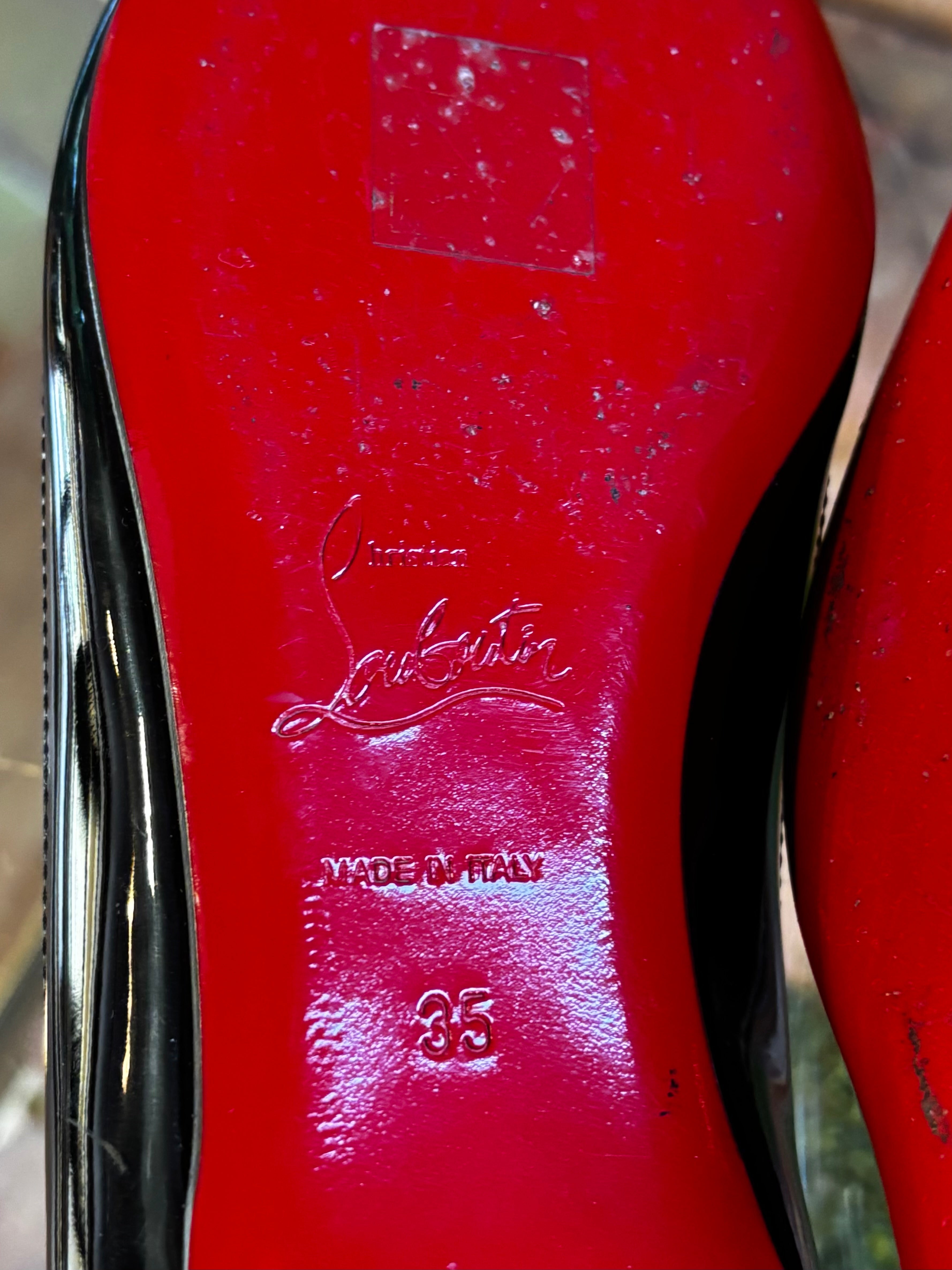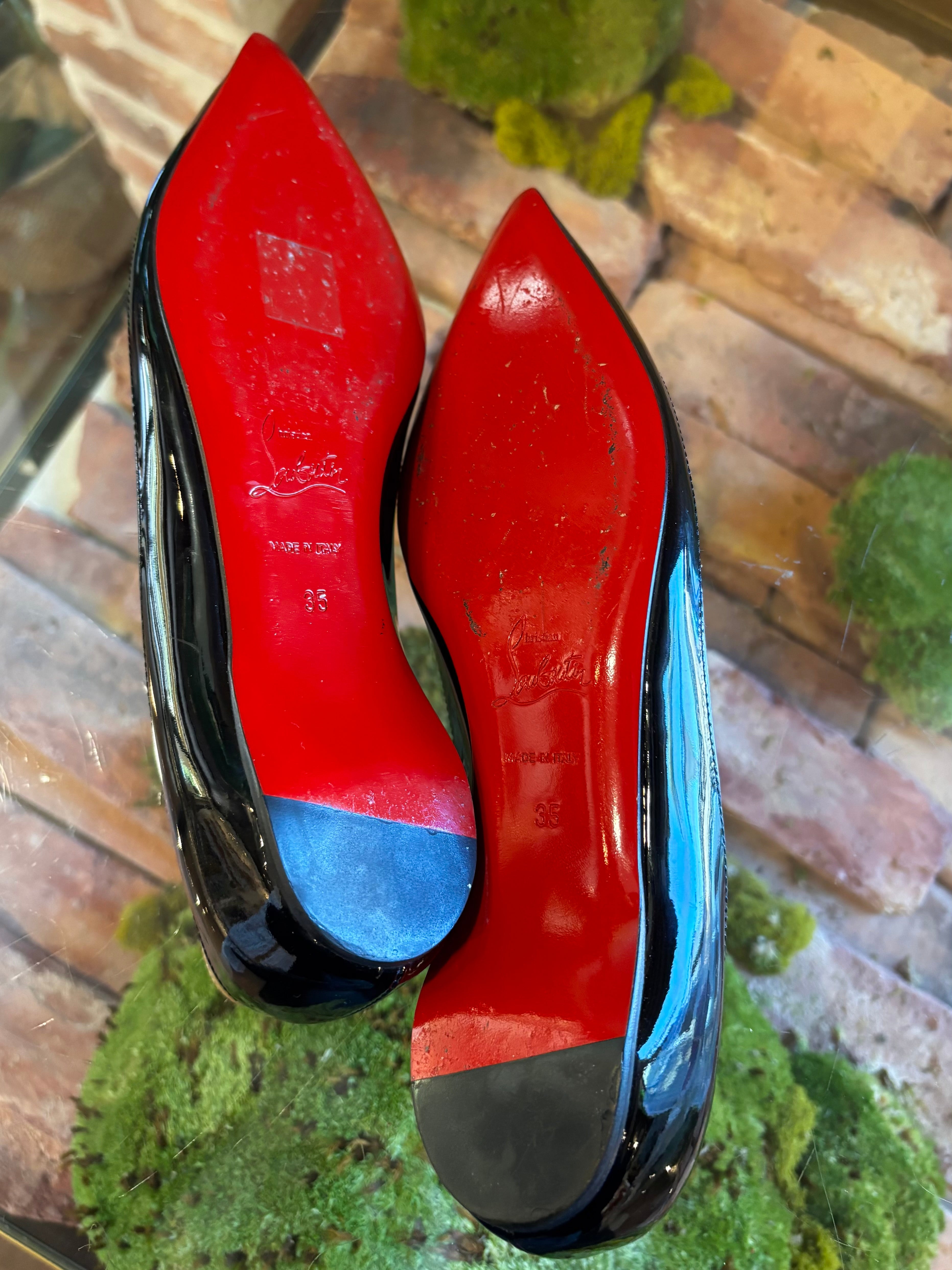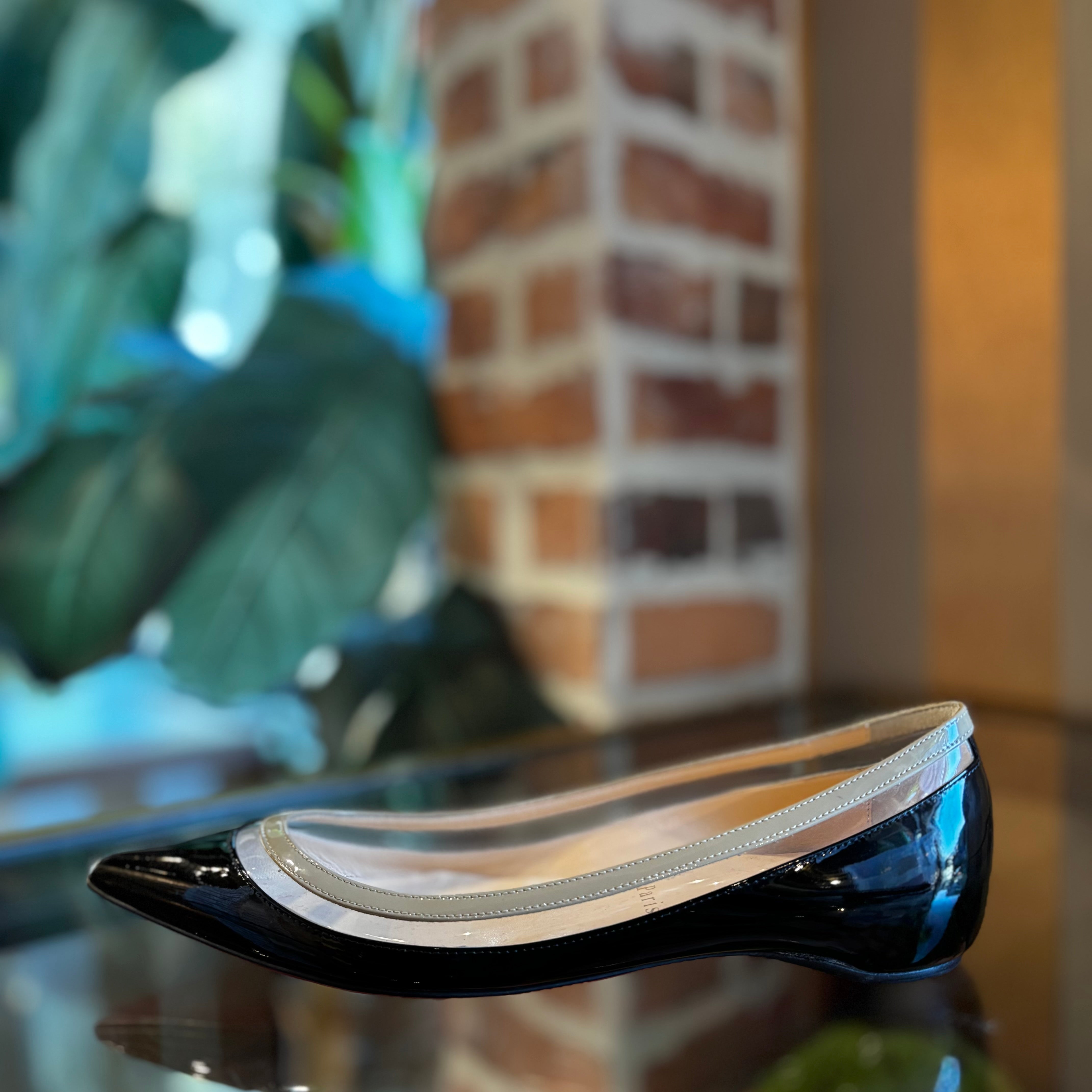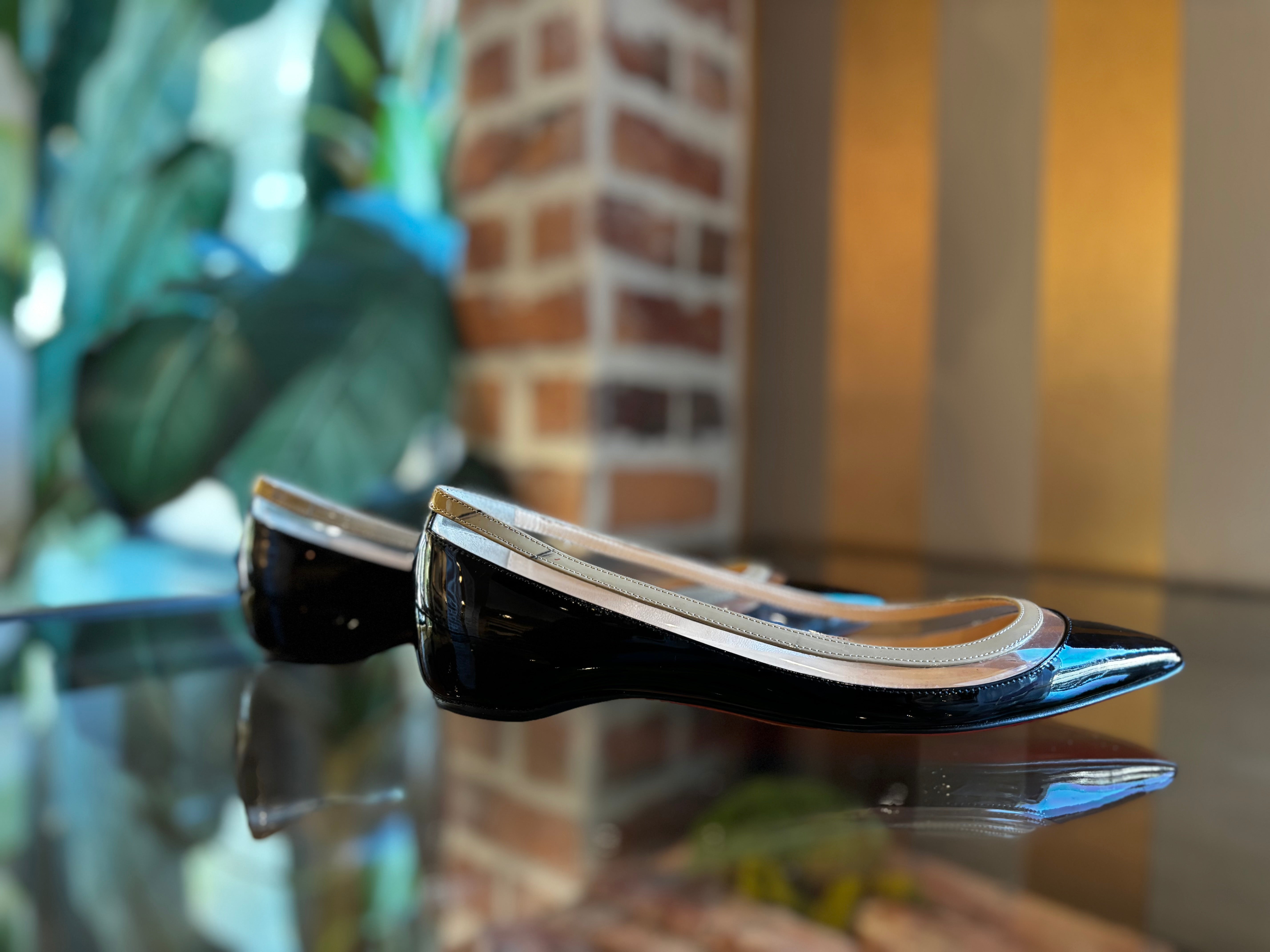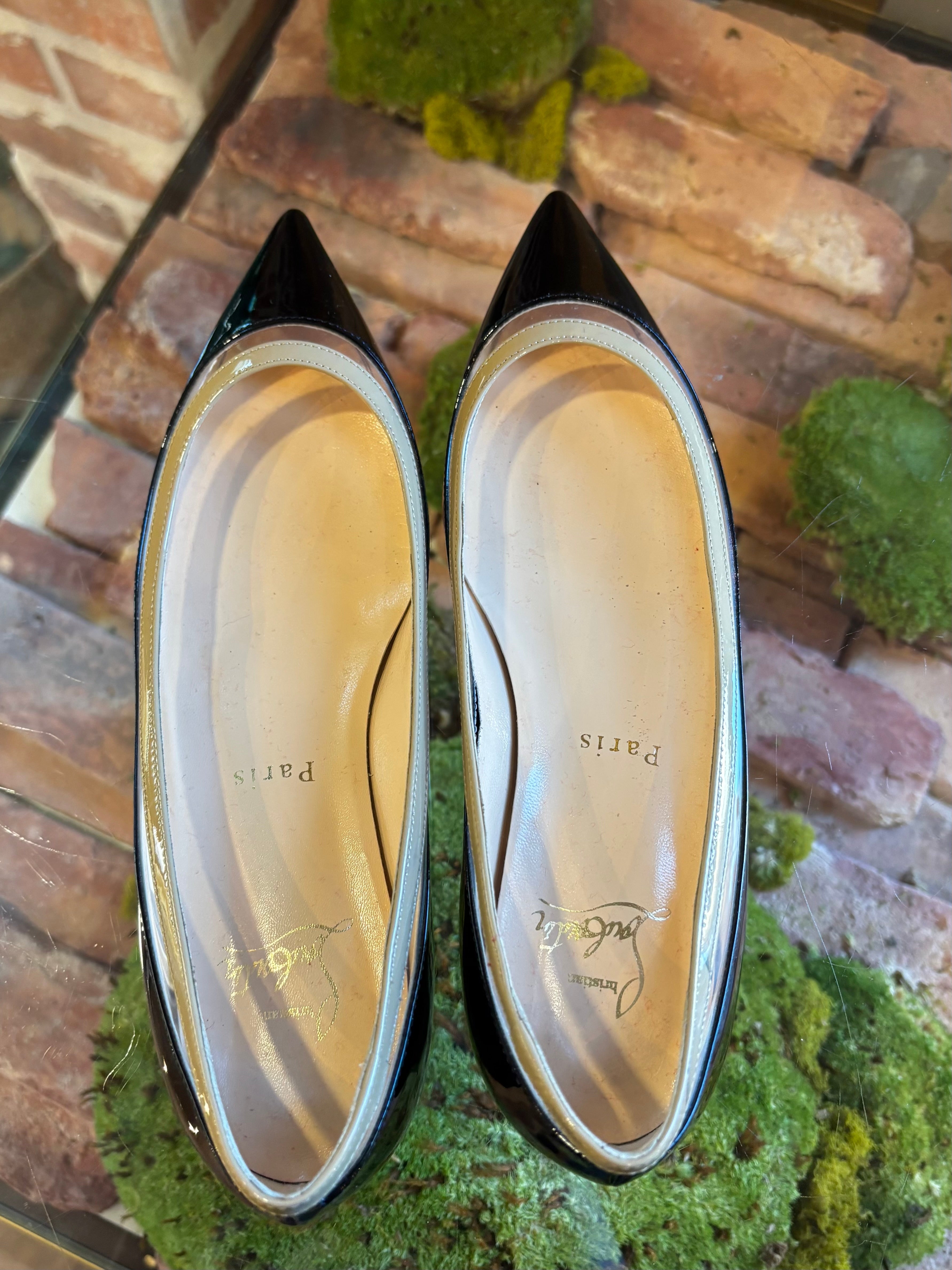 CHRISTIAN LOUBOUTIN Black Patent Leather Pointed Flats