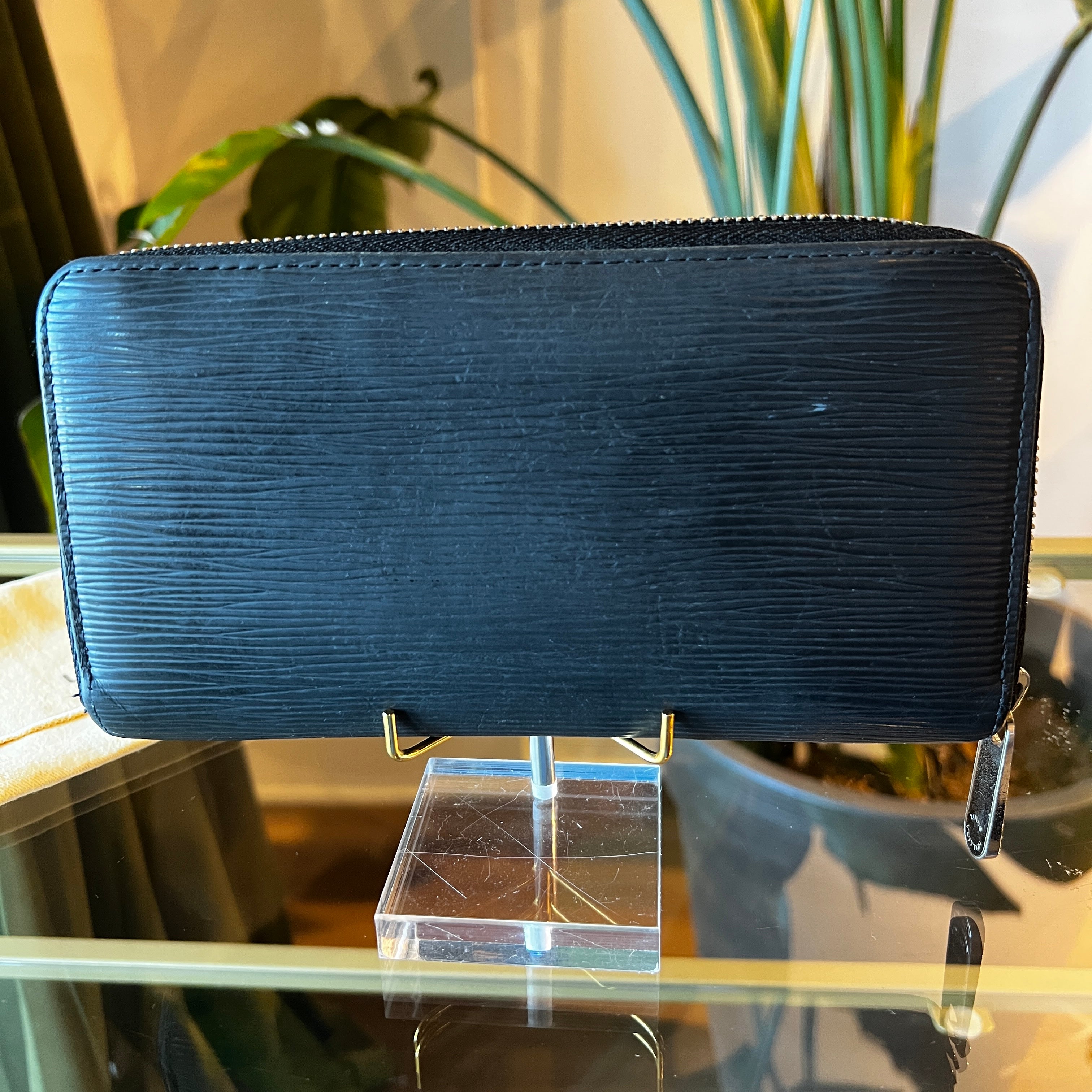 Elevate your everyday essentials with the Louis Vuitton Black Epi Leather Zippy Wallet. Crafted from iconic Epi leather, this wallet offers durability and a refined texture. Its sleek design includes a secure zip-around closure and multiple compartments, providing organized storage for cards, cash, and coins. A timeless accessory that blends practicality with sophisticated style, perfect for those who appreciate luxury in every detail. Very good condition.