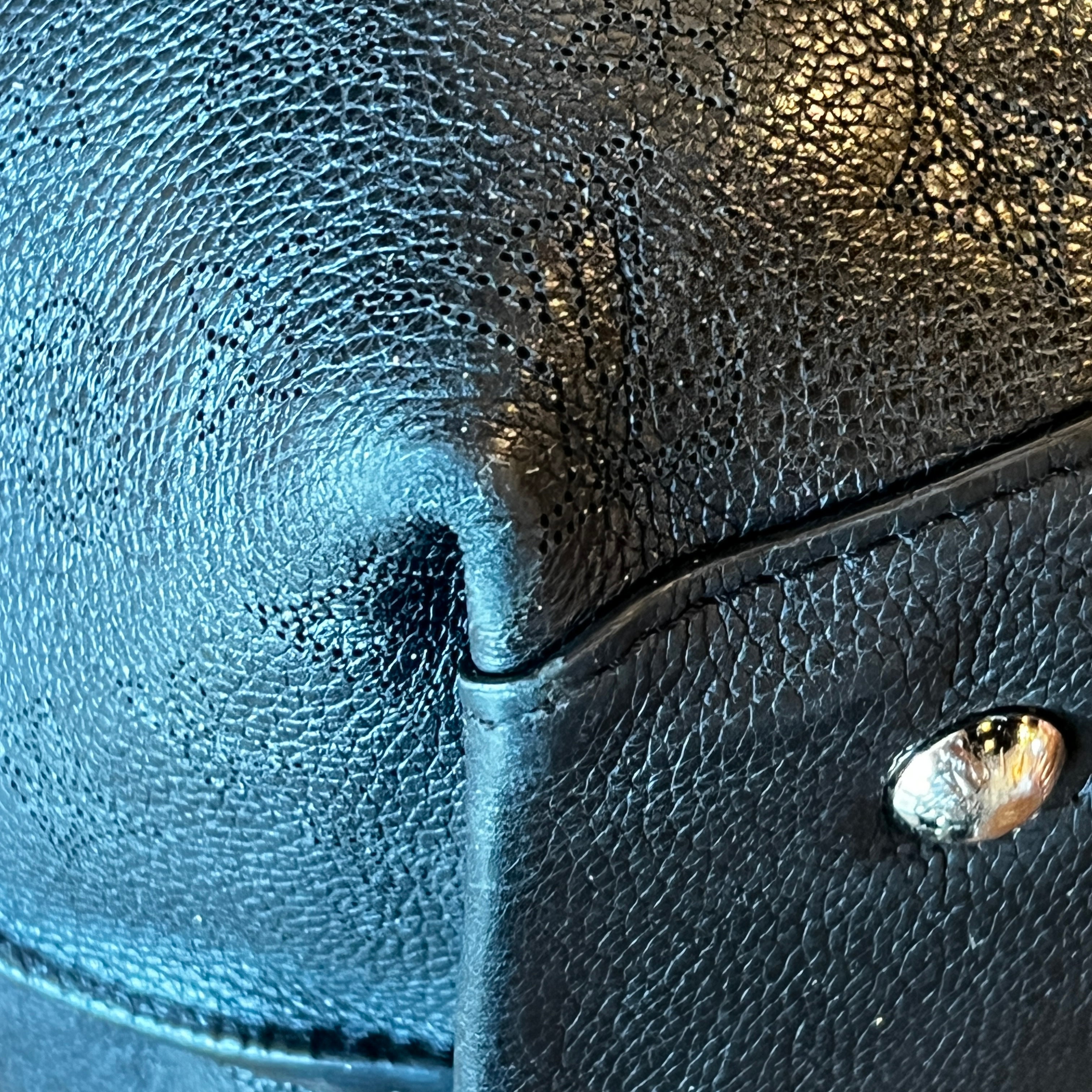 Elevate your ensemble with the LOUIS VUITTON Black Mahina Hobo Shoulder Bag, featuring premium grained leather with signature perforated detailing. Its spacious, curved silhouette offers refined practicality, while the adjustable shoulder strap ensures comfort for all-day wear. This timeless accessory seamlessly blends elegance with everyday functionality, making it a distinguished addition to your collection. Very good condition.
