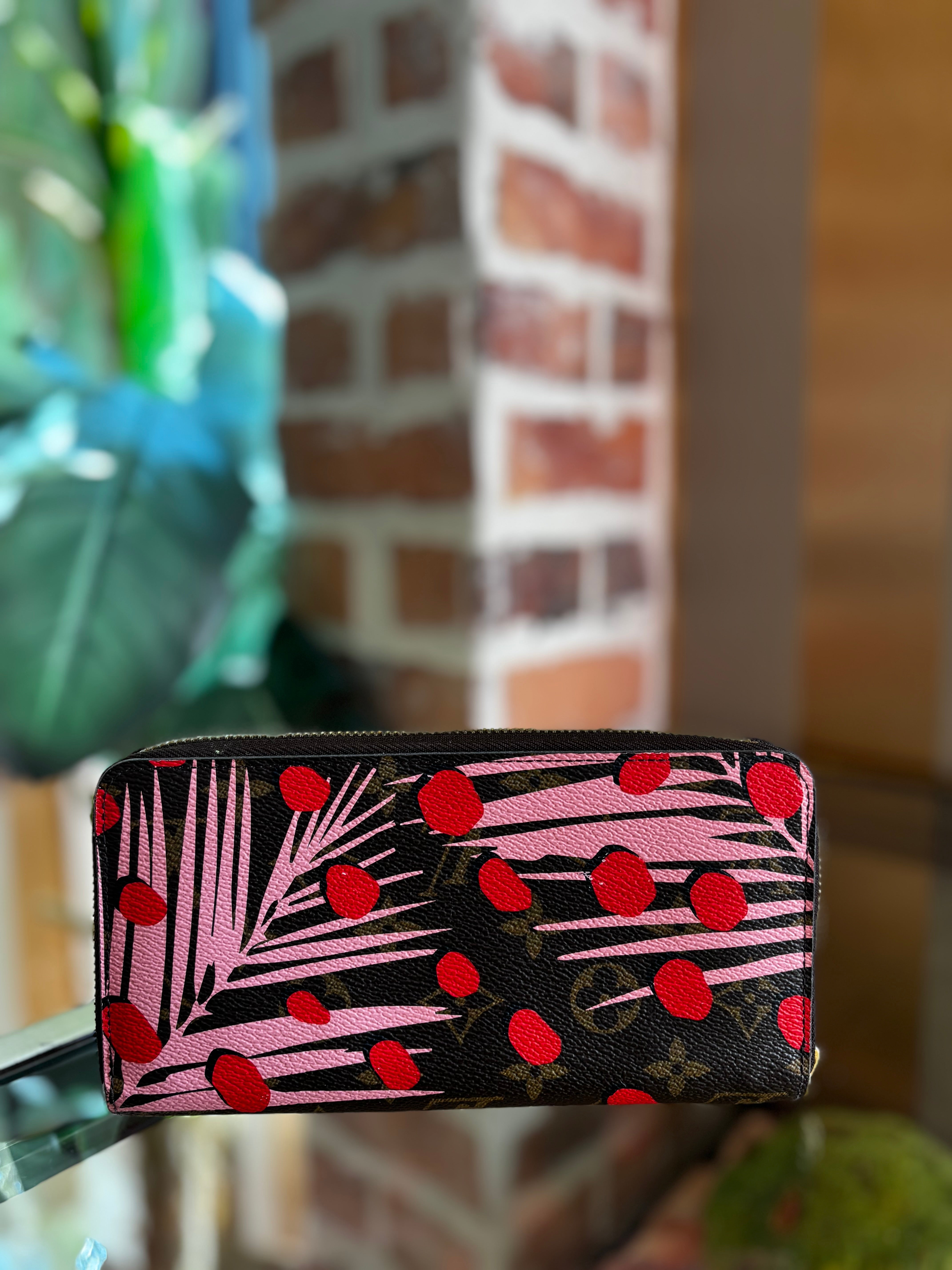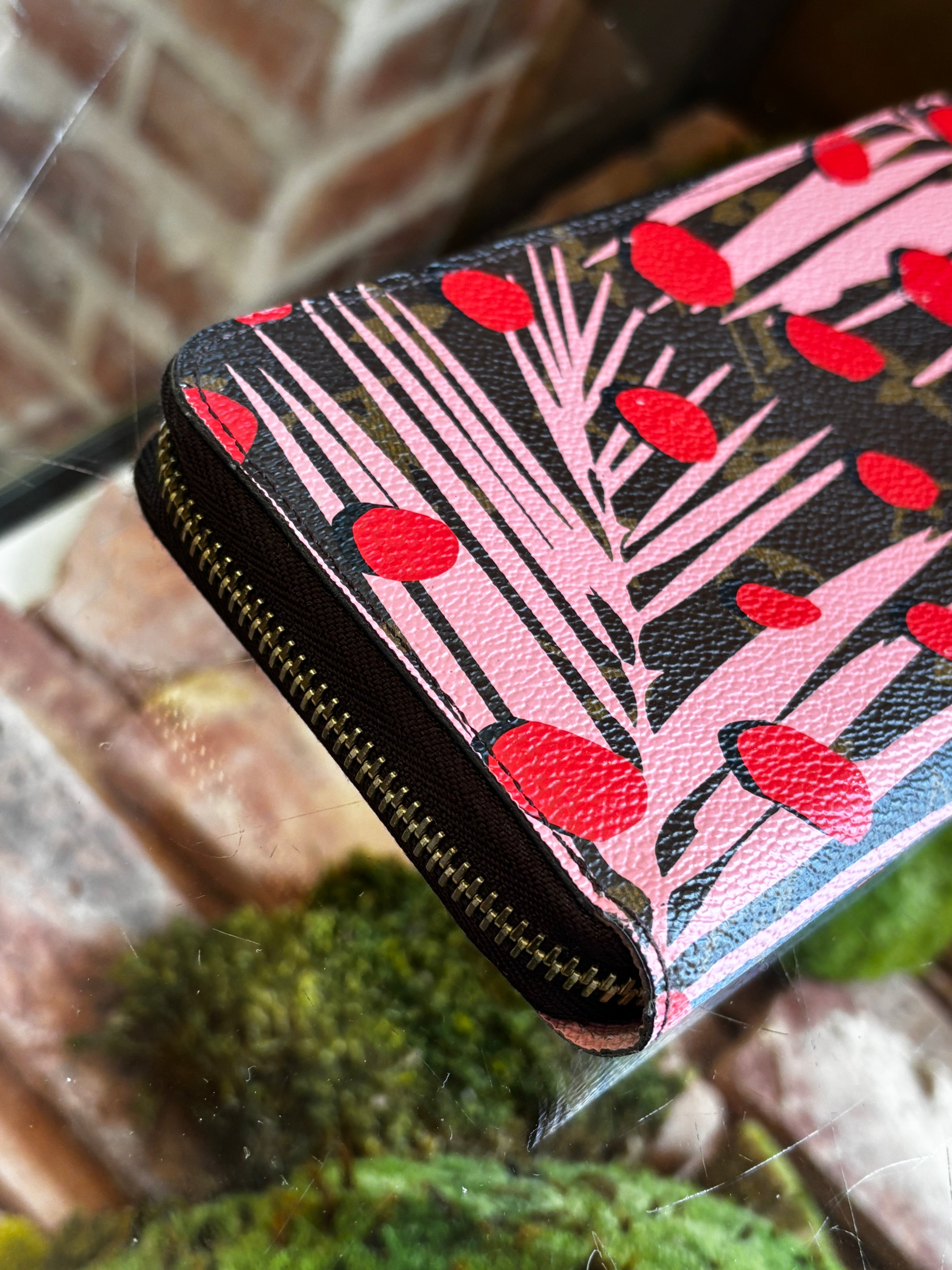 Indulge in luxury with the LOUIS VUITTON Monogram Jungle Dots Zippy Wallet. Adorned with the iconic monogram print and playful jungle dots, this wallet exudes sophistication and exclusivity. Features include multiple card slots, a zippered coin pocket, and a spacious interior for all your essentials. Elevate your style with this elegant and timeless piece. Overall in Very Good Condition. B+