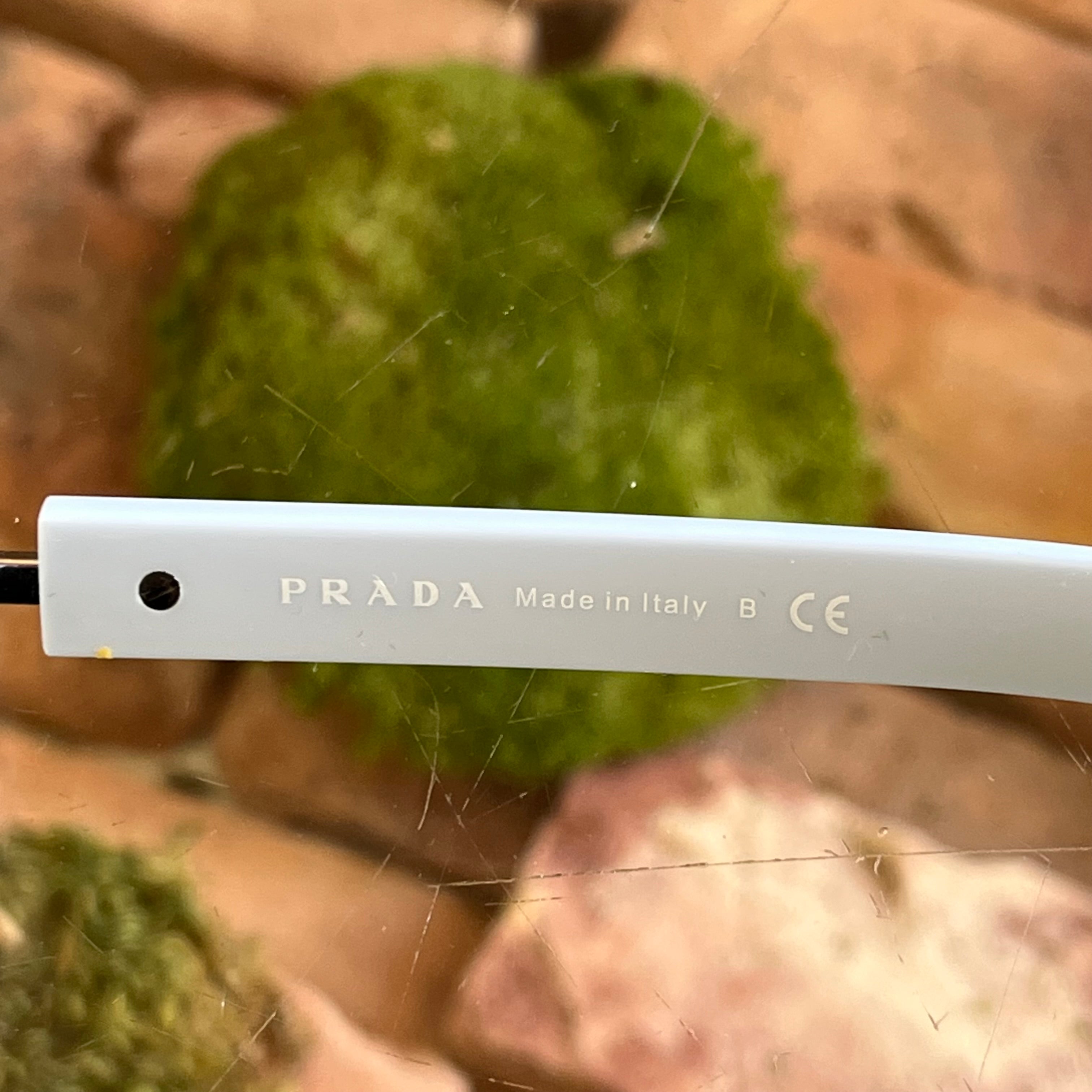 Elevate your style with the luxurious PRADA SPR10X Blue Sunglasses. With their sleek design and premium materials, these sunglasses exude sophistication and exclusivity. Let the vibrant blue lenses and iconic PRADA logo elevate any look while providing superior UV protection. Add a touch of high-end fashion to your wardrobe. Very good condition.