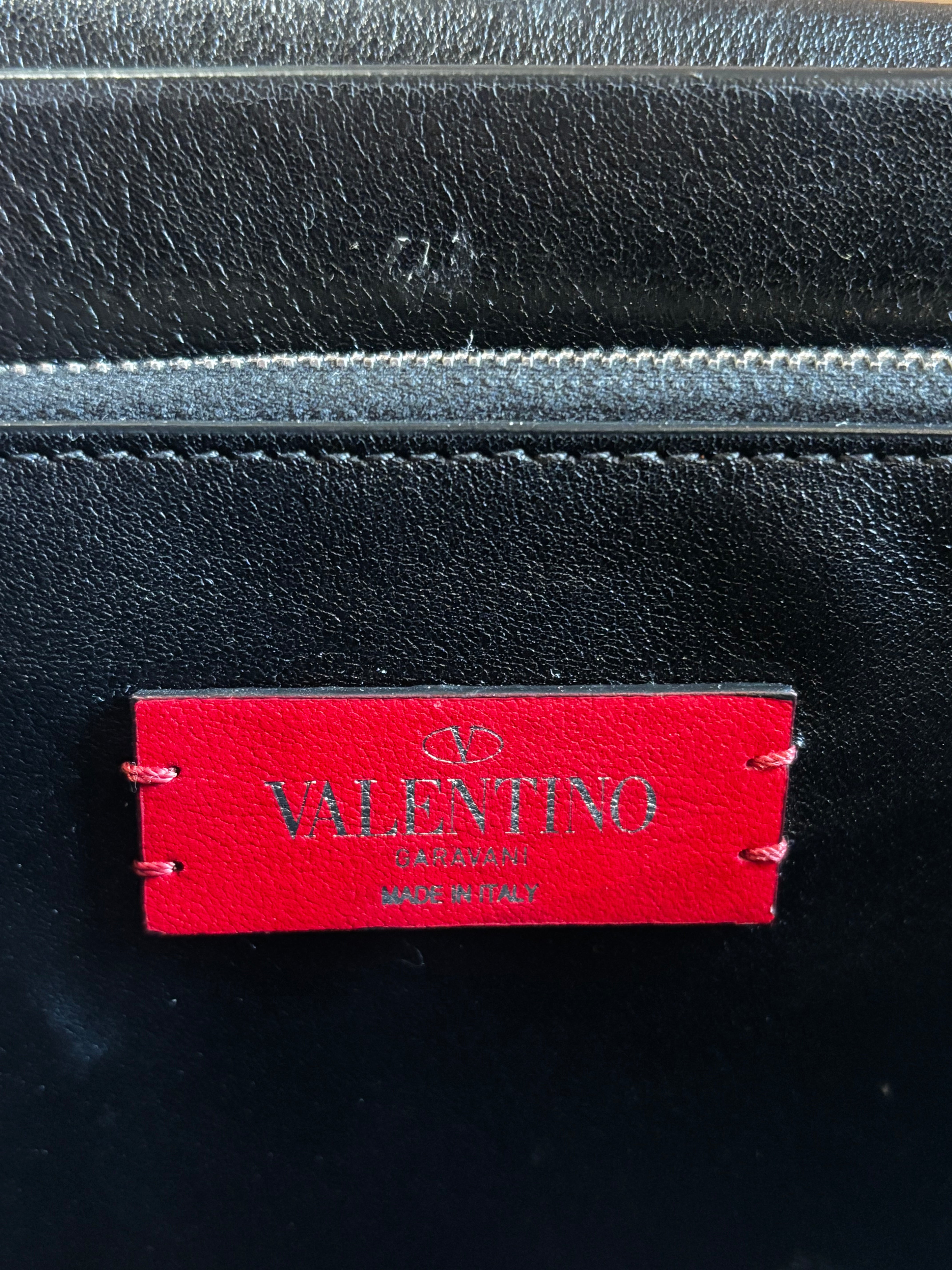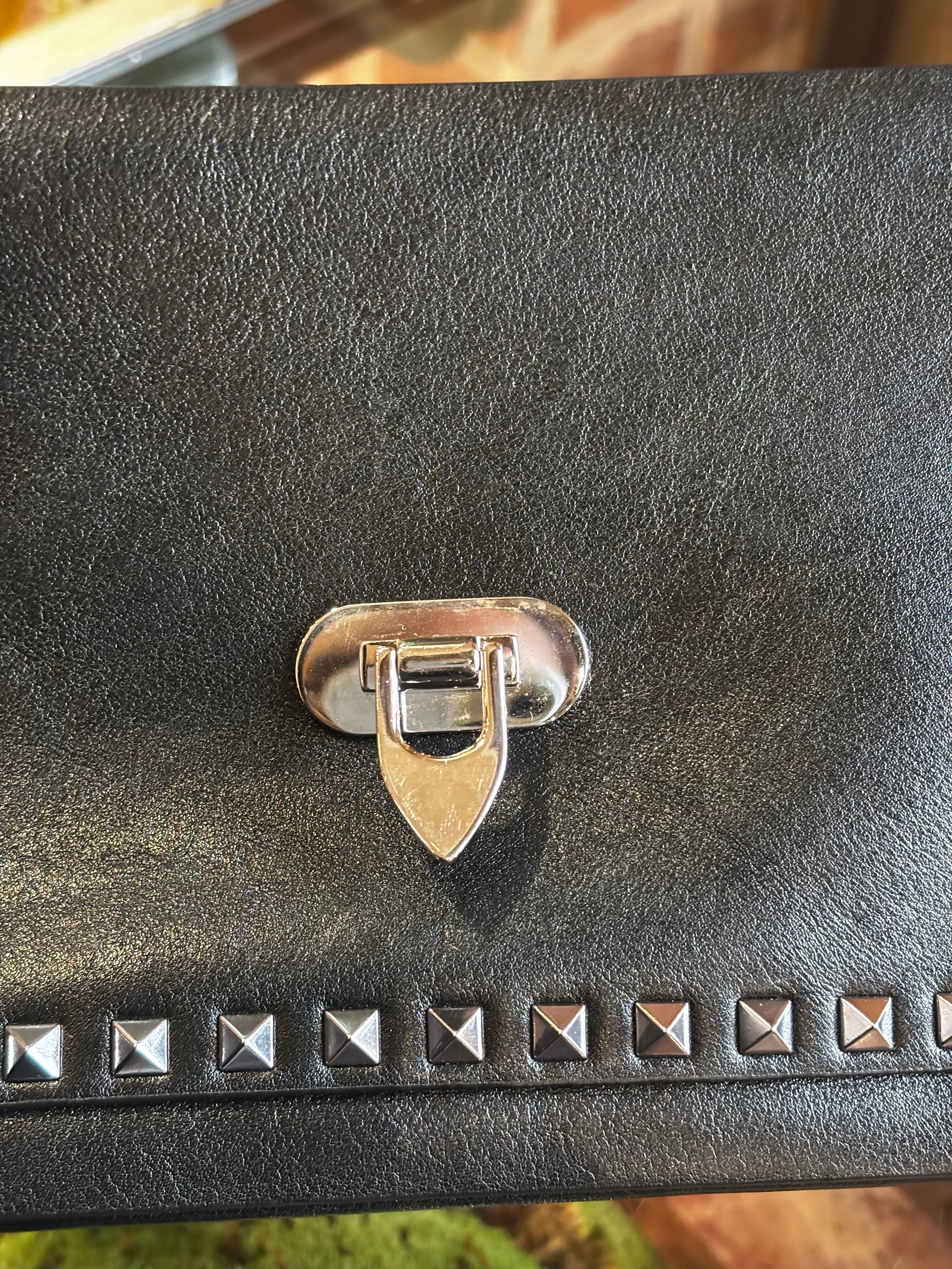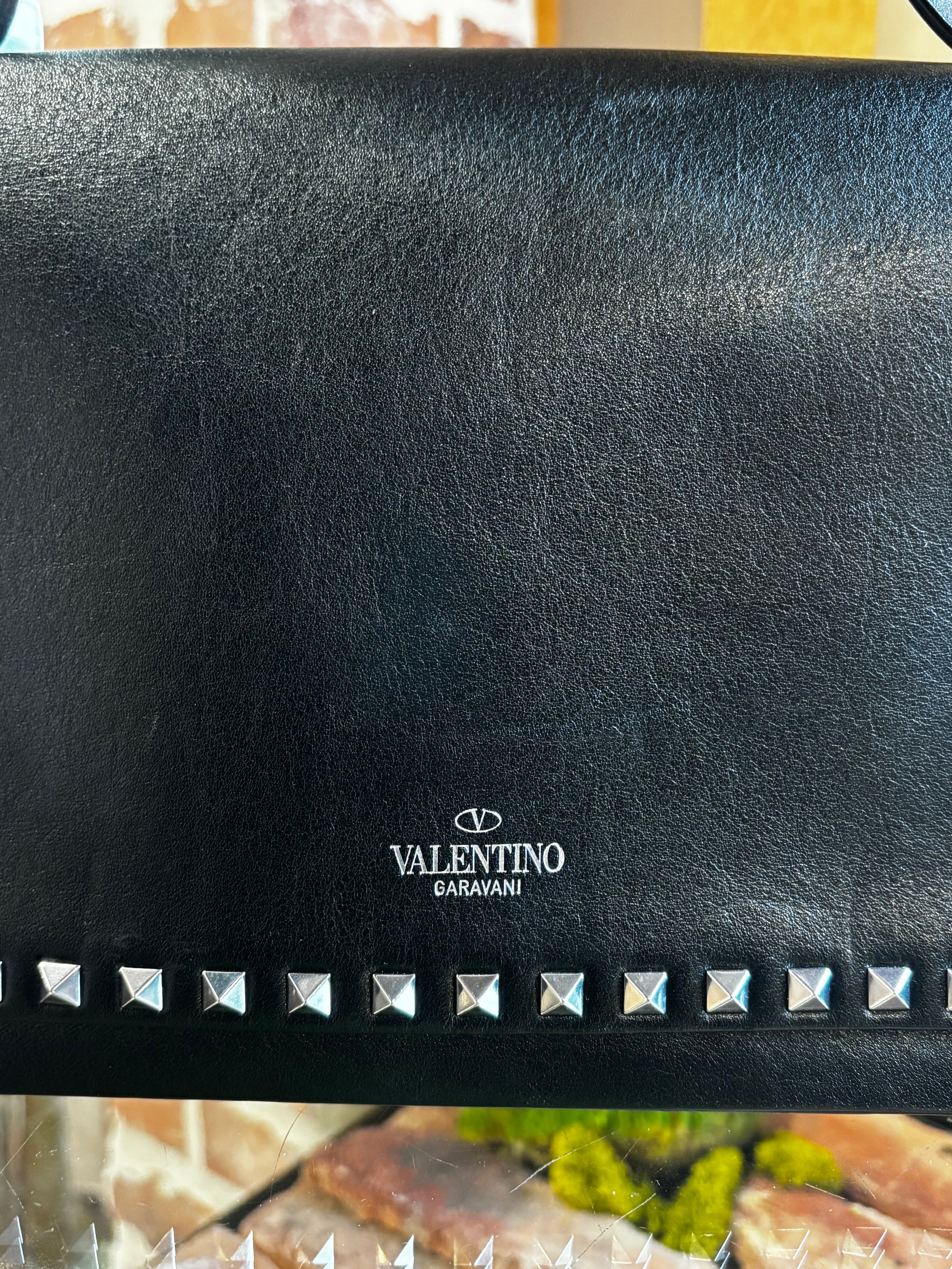 VALENTINO Black Vitello Rockstud Flap Shoulder Bag