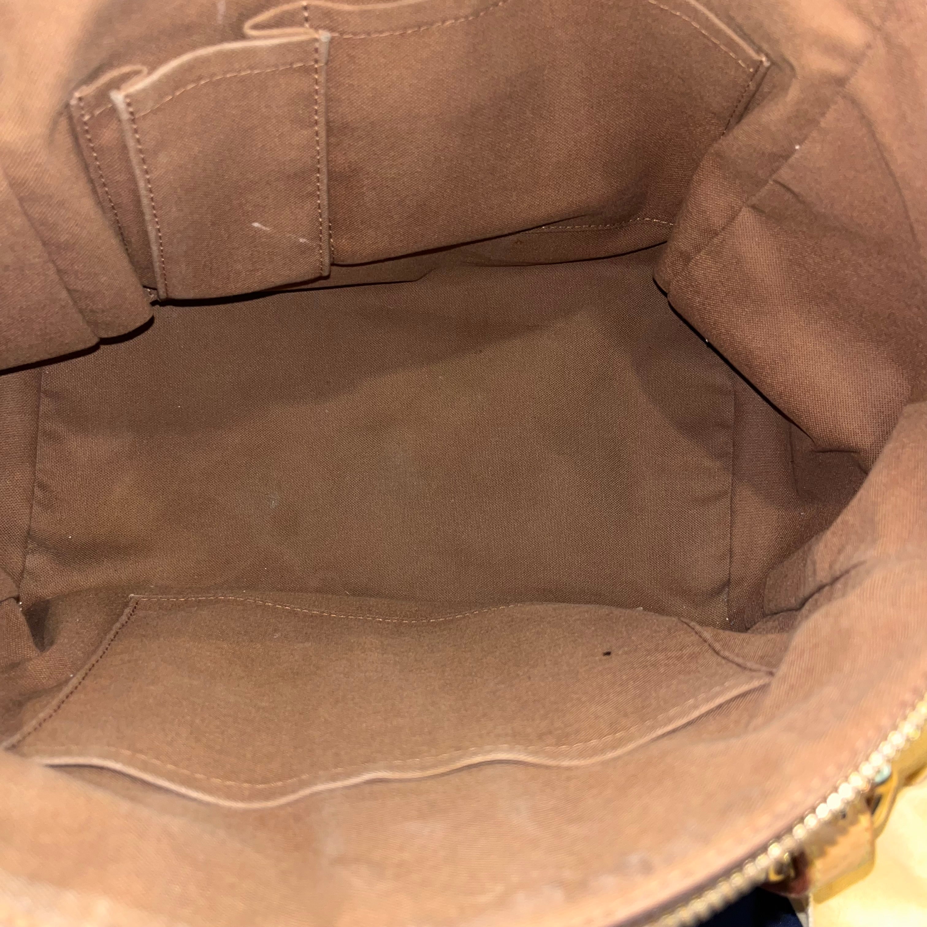 - Handle/Vachetta Leather: The vachetta leather has developed an even honey patina with signs of previous use such as hardware marks, markings, dryness, soiling, softening, darkening, scuffing, scratches, rubbing, water/oil marks and creasing.