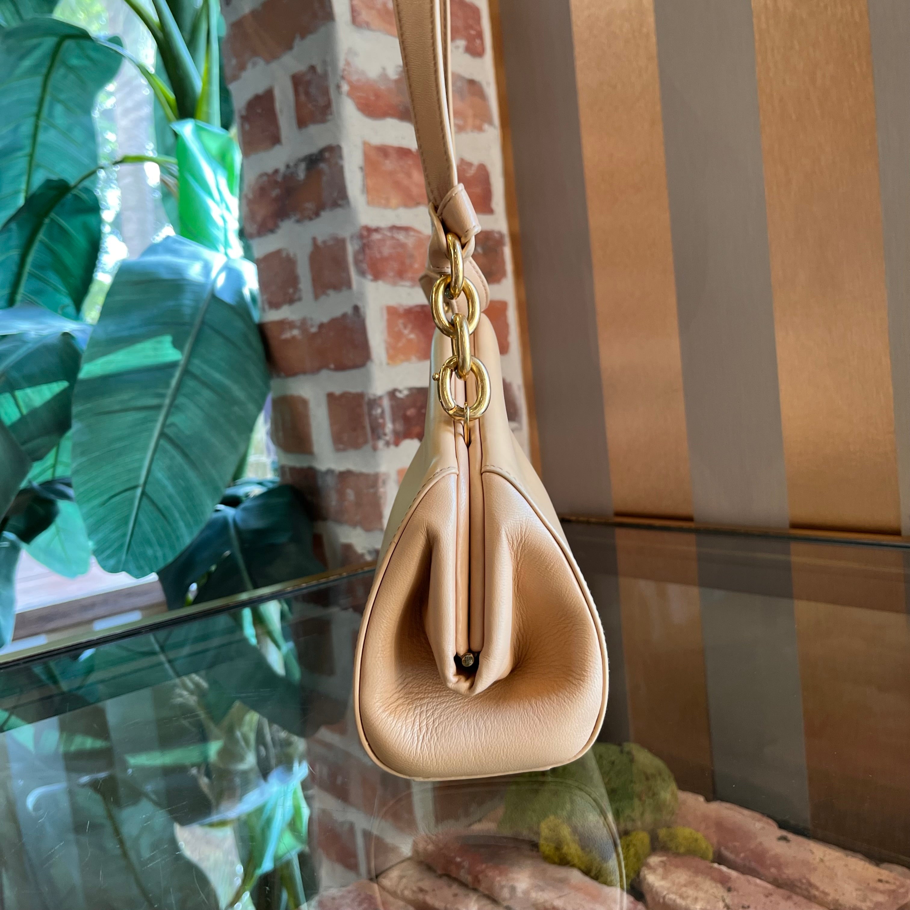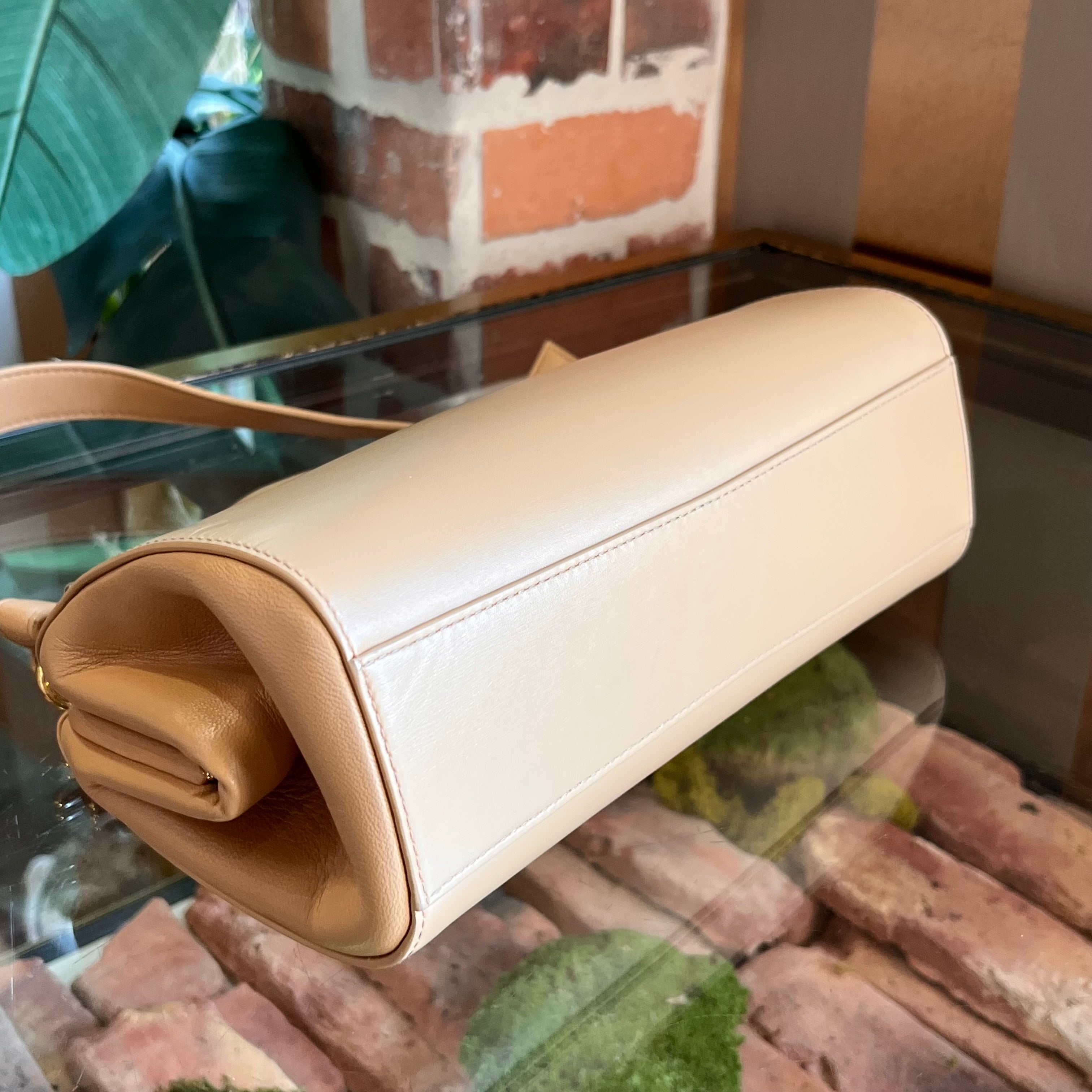 • Interior: The interior is vibrant and beautifully preserved, showing only light indentations and subtle hardware marks from the strap and closure—a testament to its careful use and excellent maintenance.