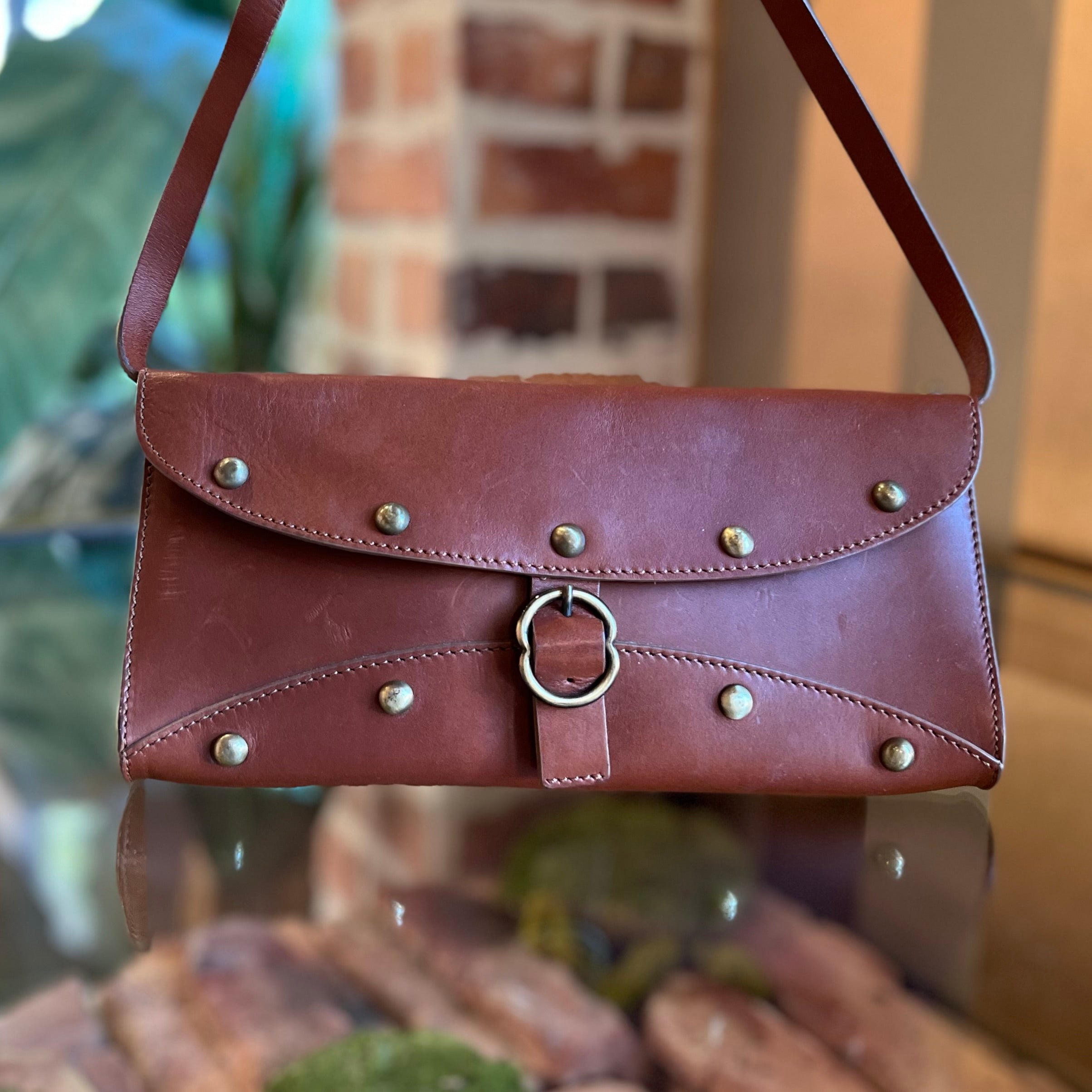 CELINE Brown Leather Studded Vintage Clutch