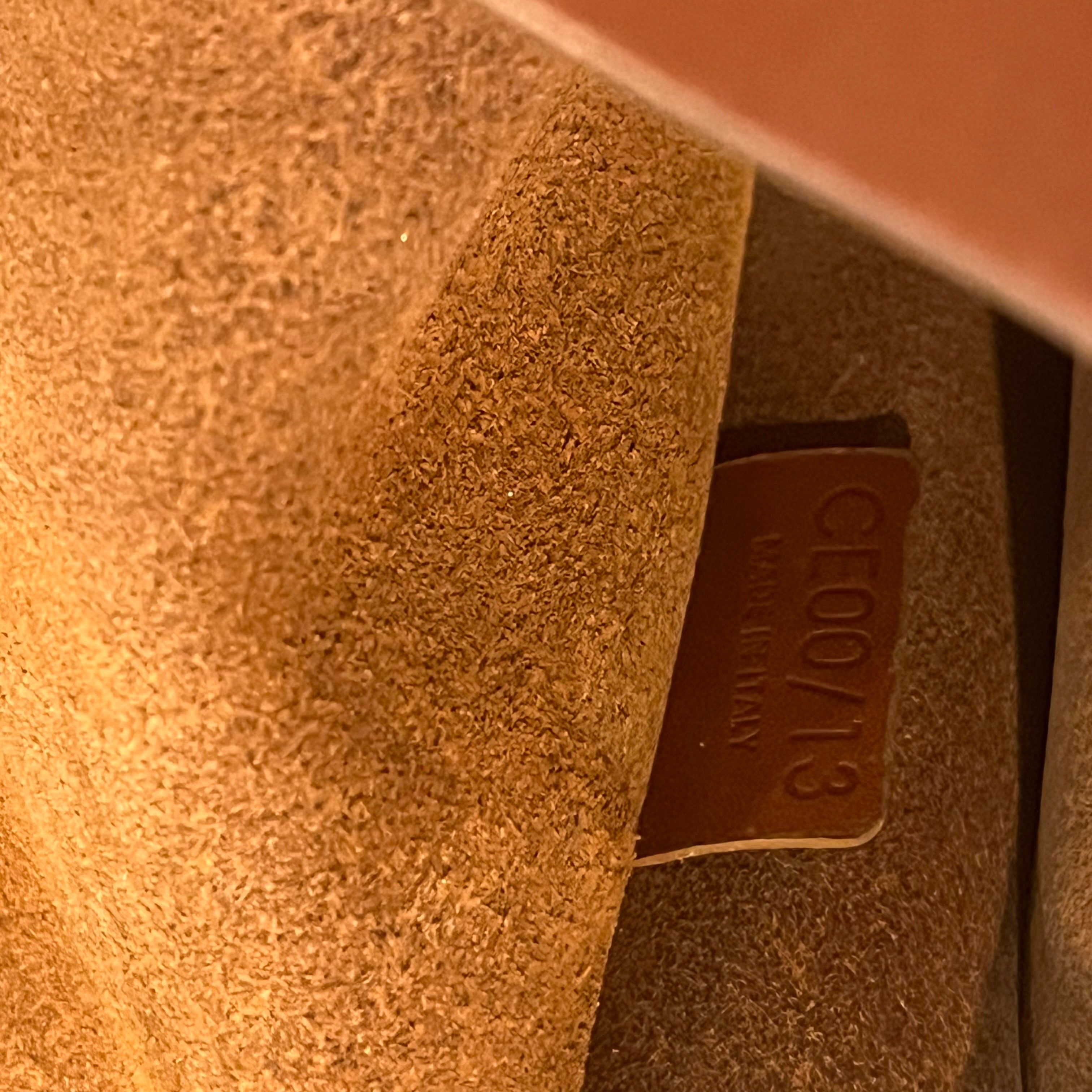 - Interior: The leather lining features some markings and rubbing, which may be inherent to the material or a result of handling.